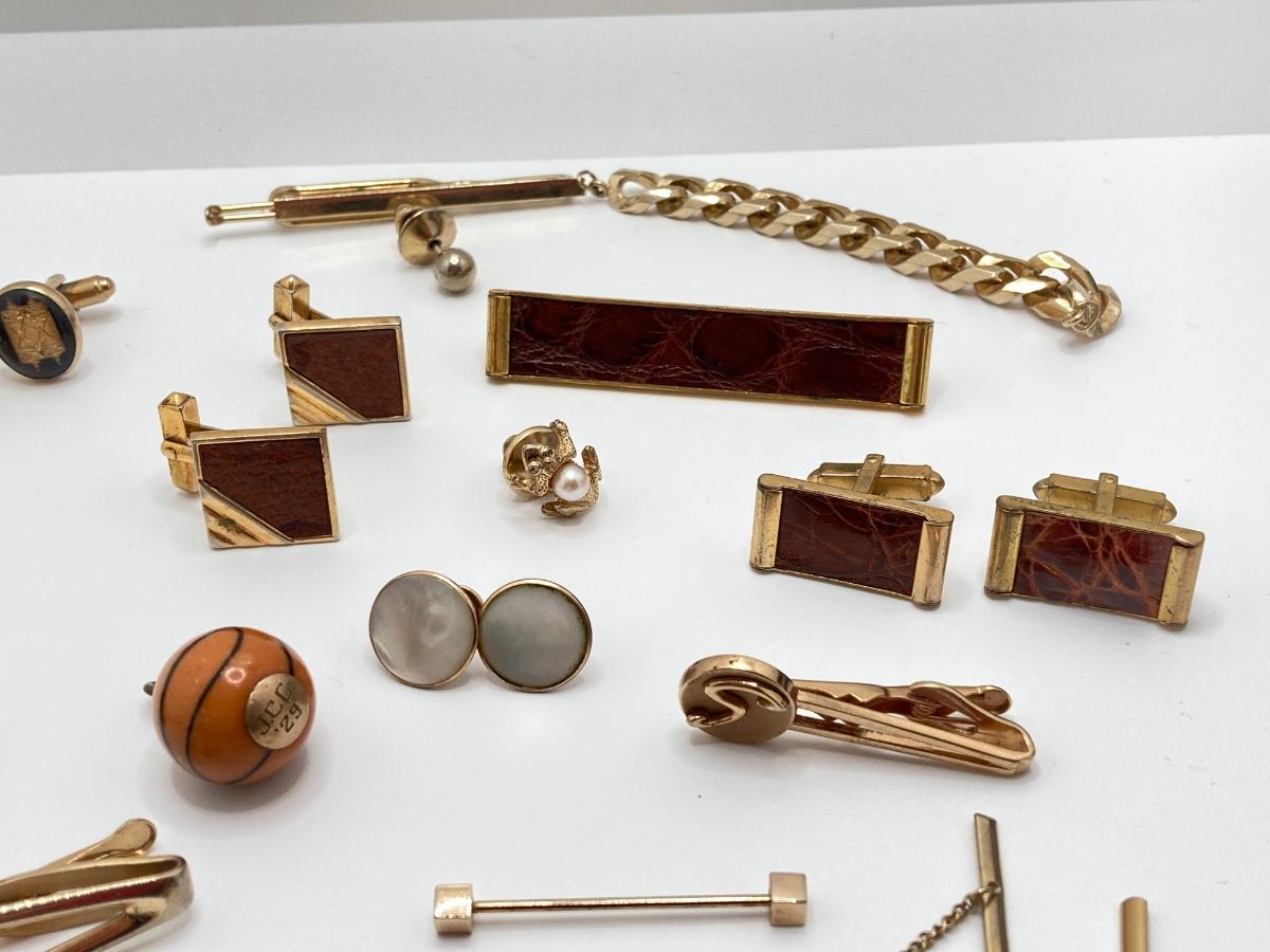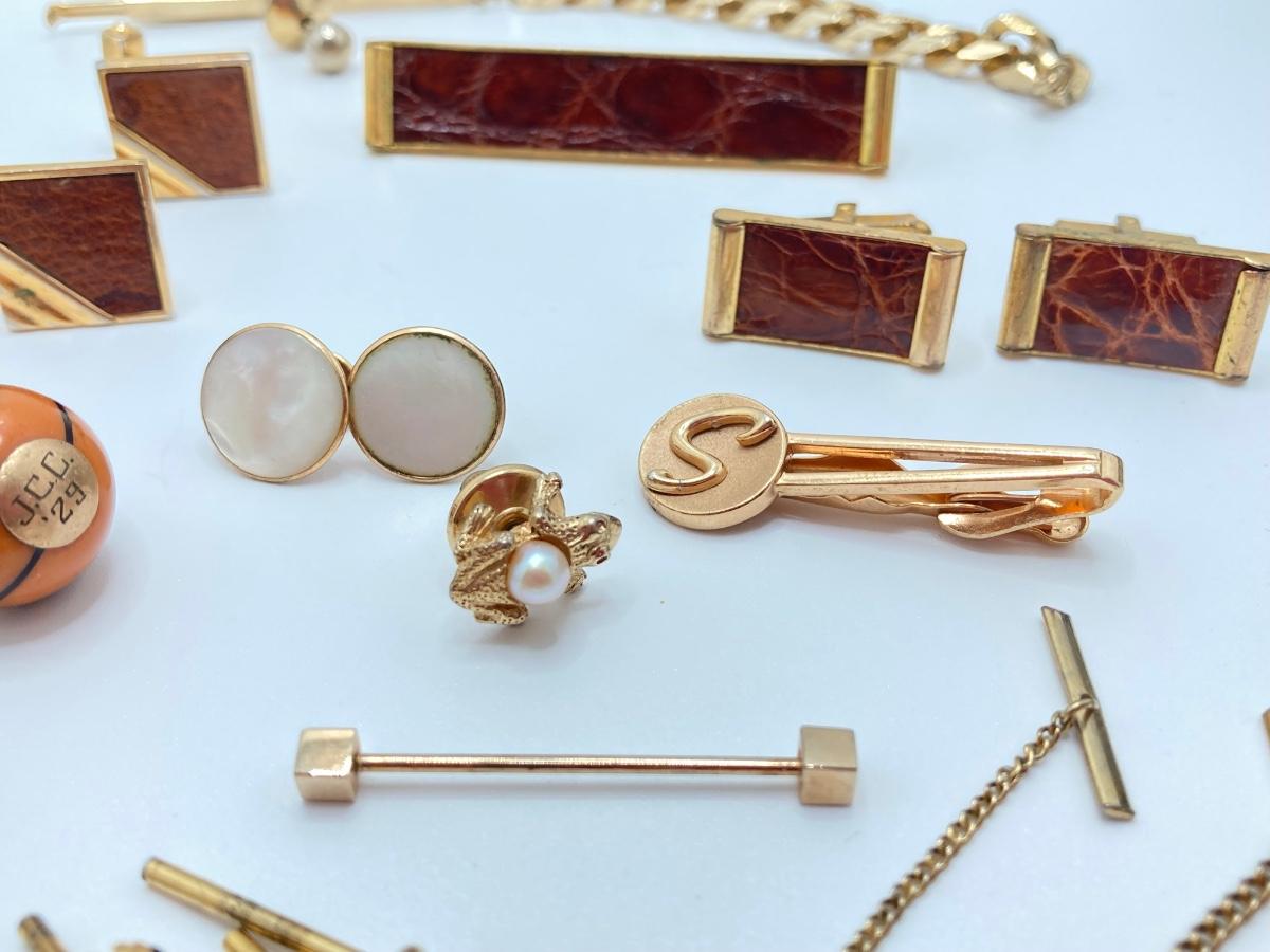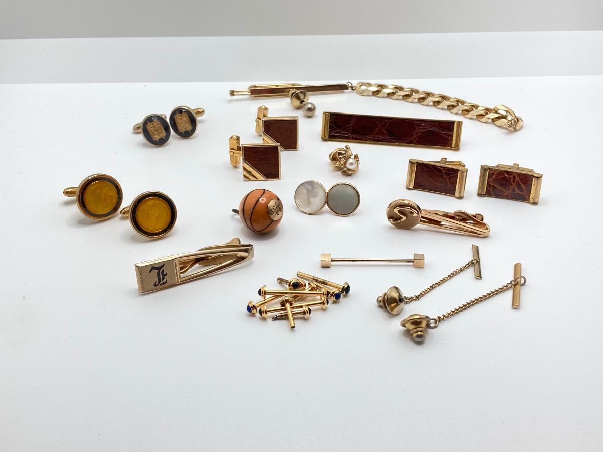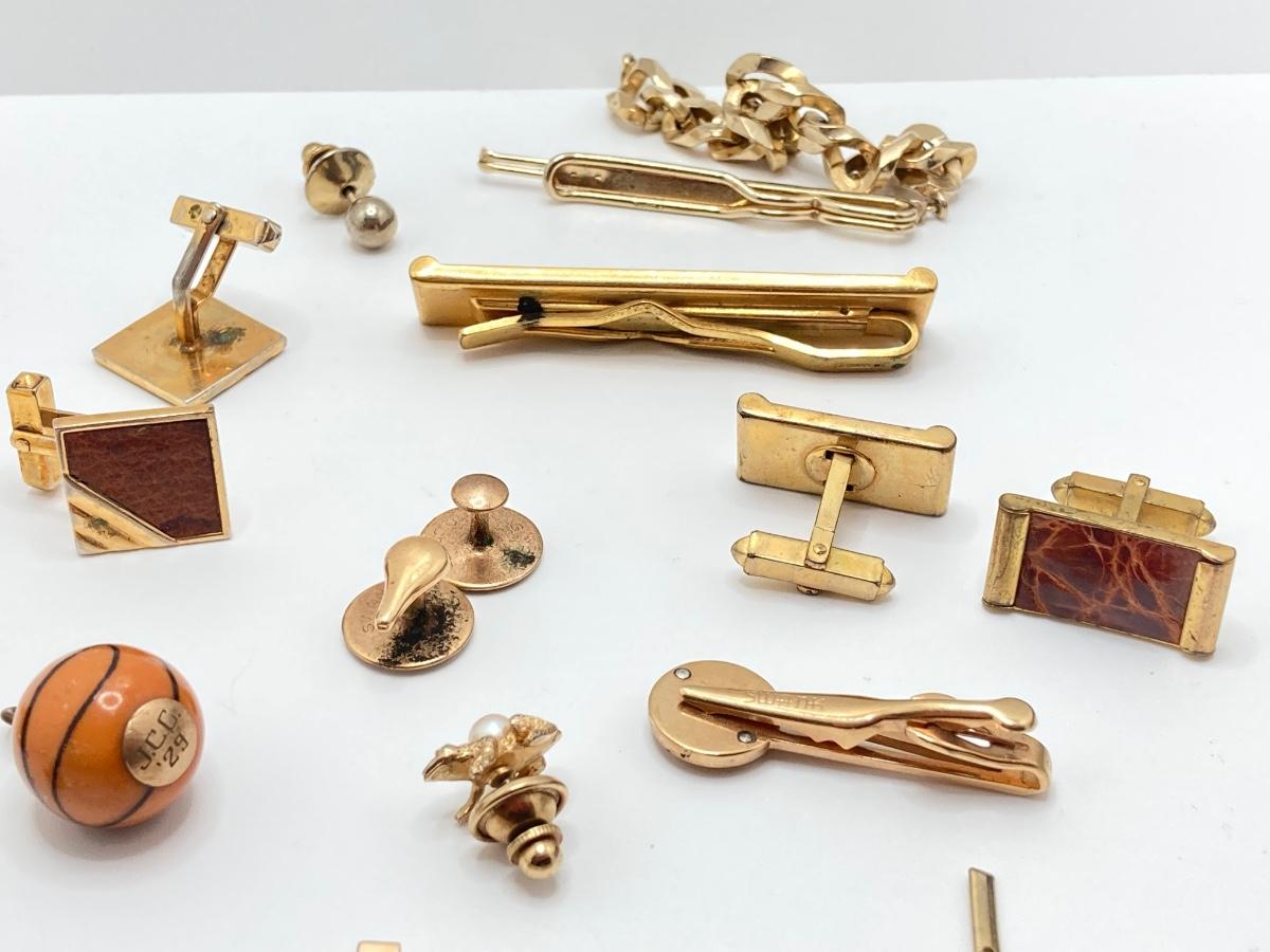LOT 260: Swank Gold Tone Tie Bar, Cuff Links and More