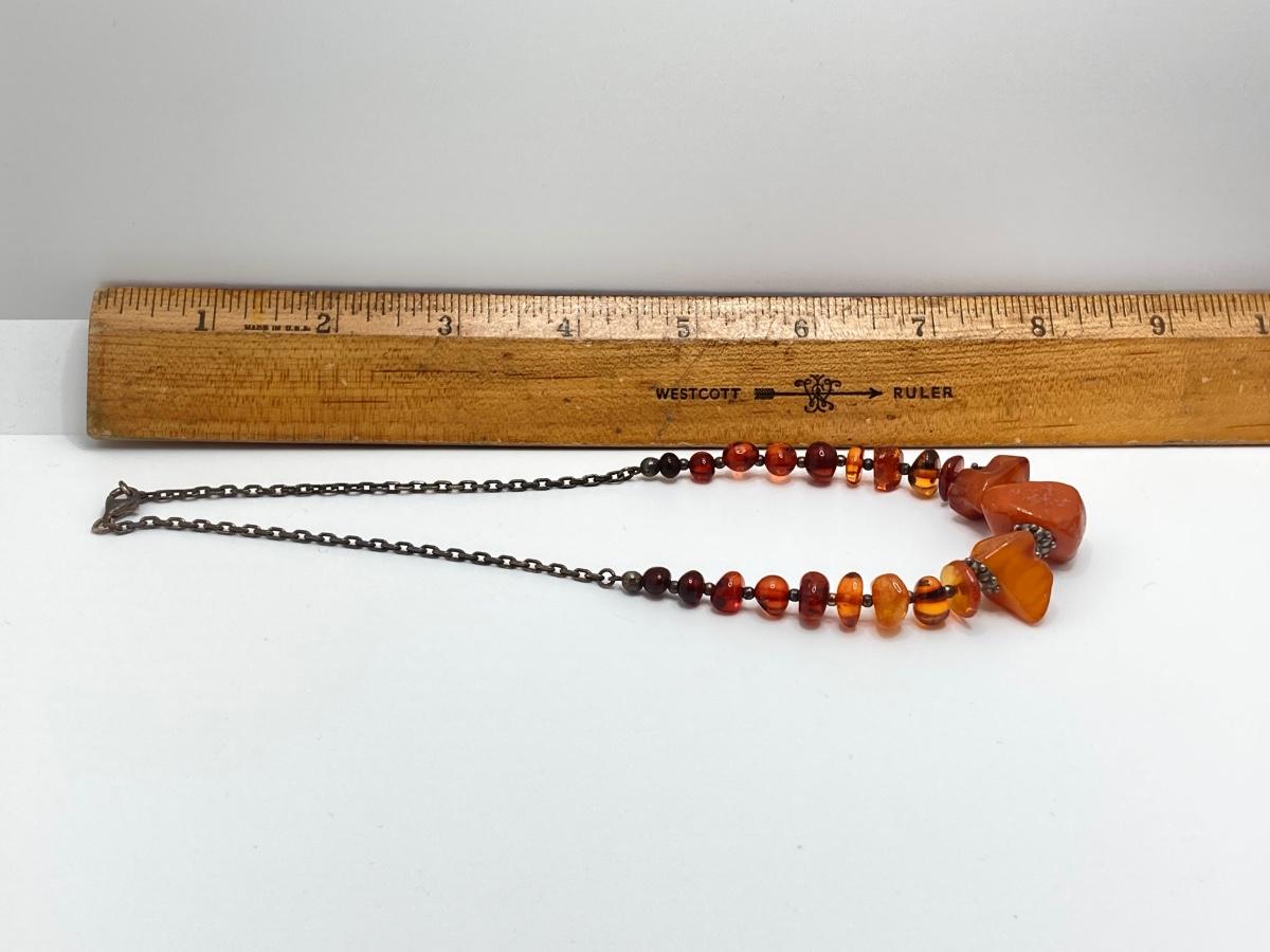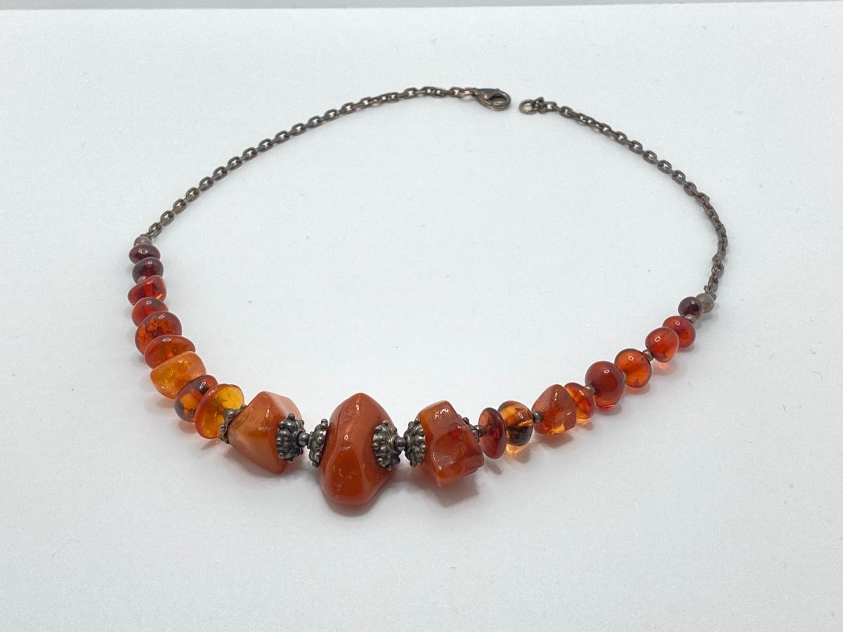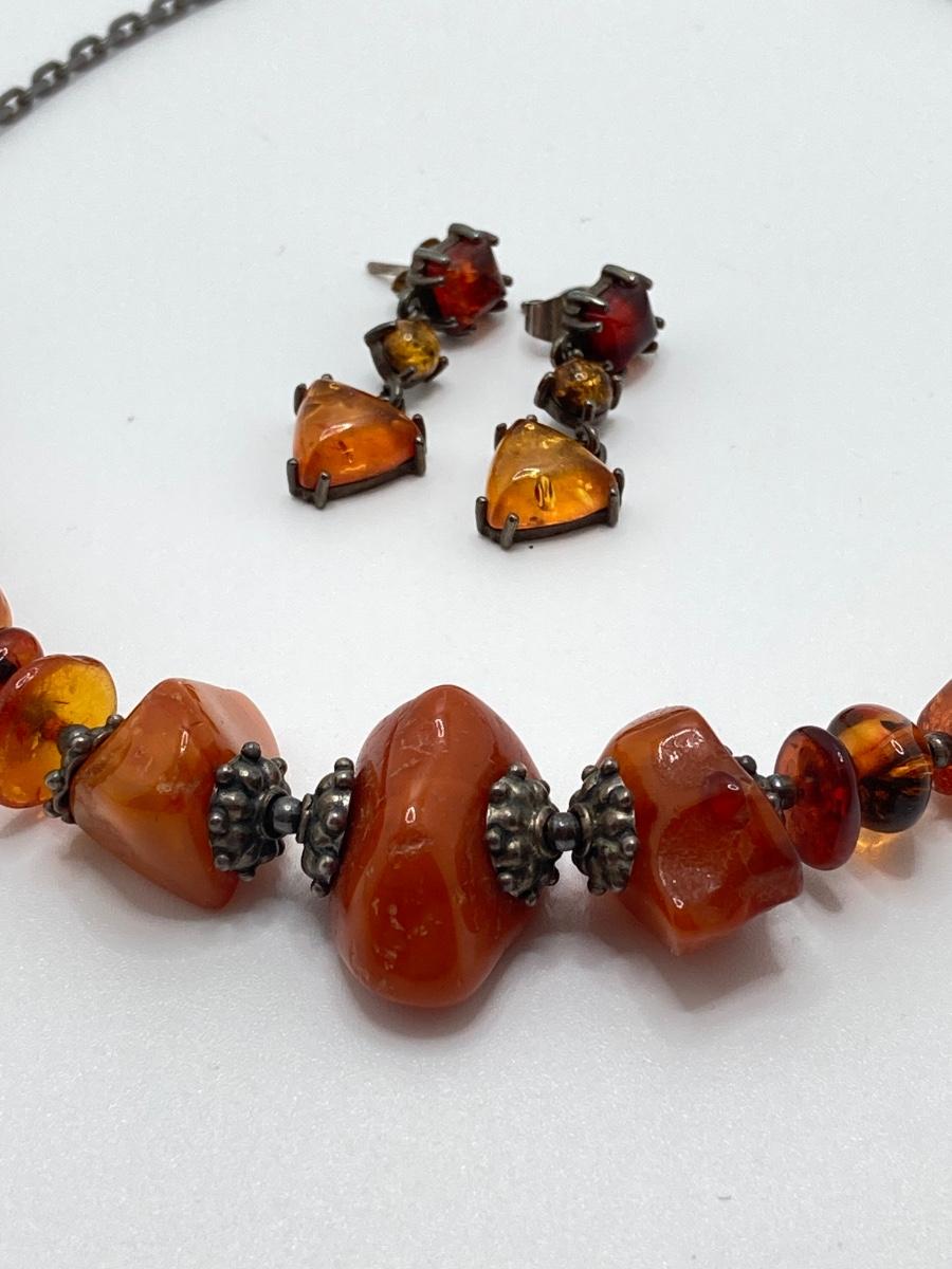 LOT 261: Sterling Amber Necklace, Earring and Pendant