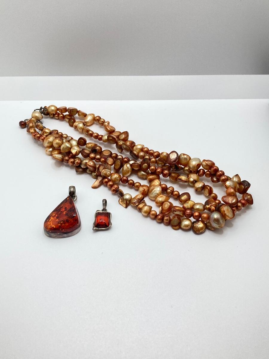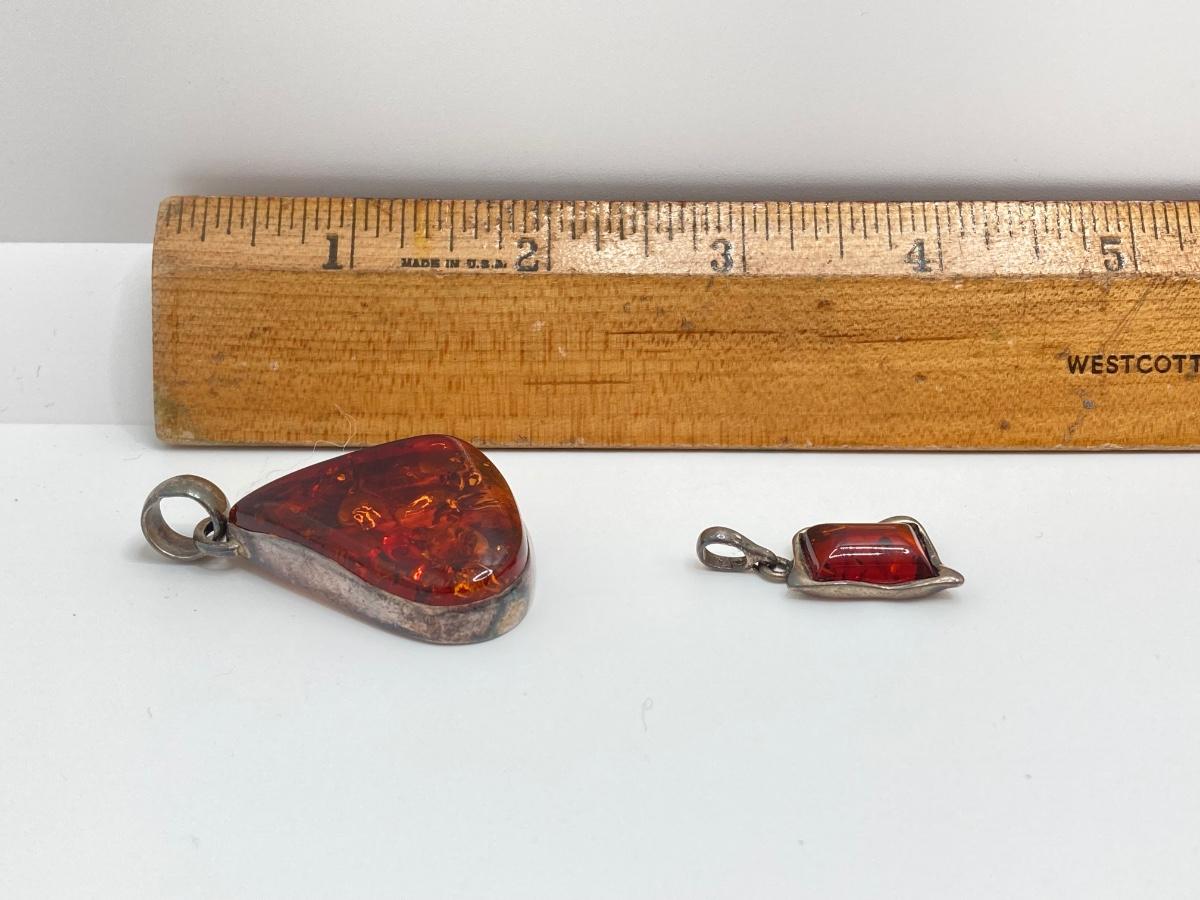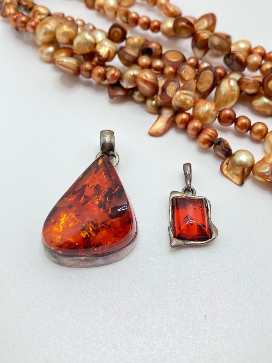 LOT 263: Sterling Amber Pendants with Beaded Necklace