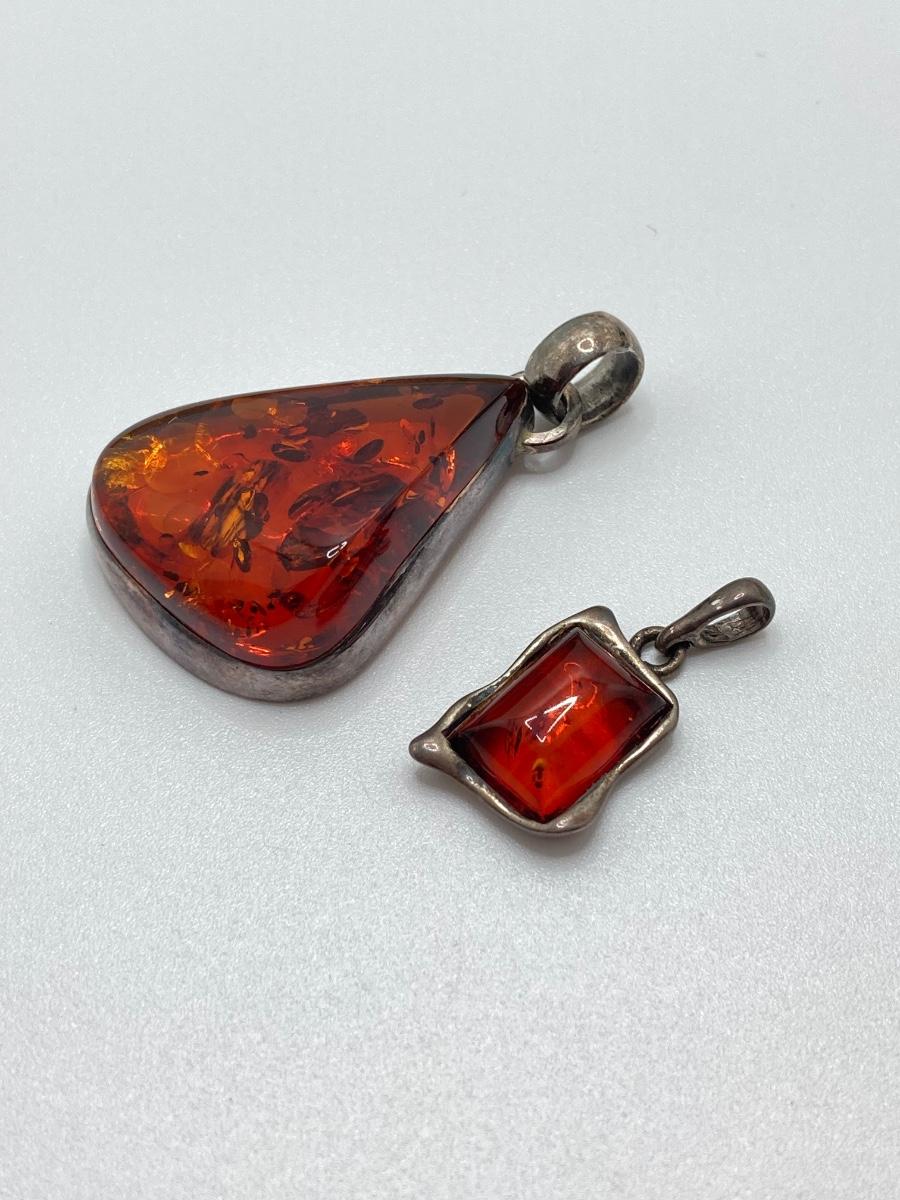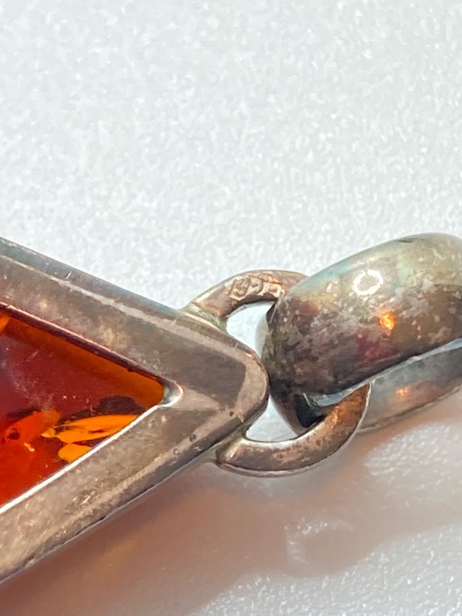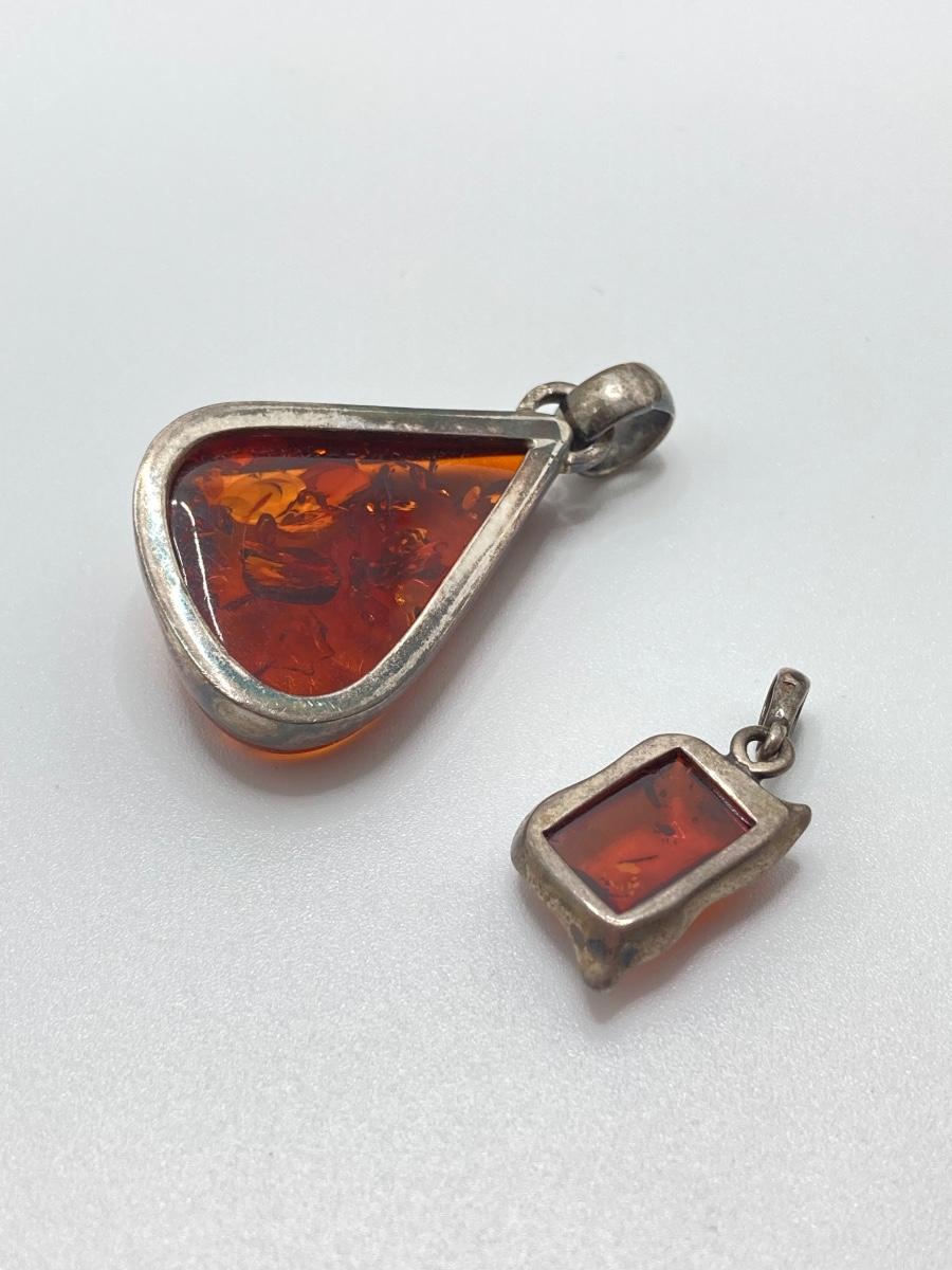LOT 263: Sterling Amber Pendants with Beaded Necklace