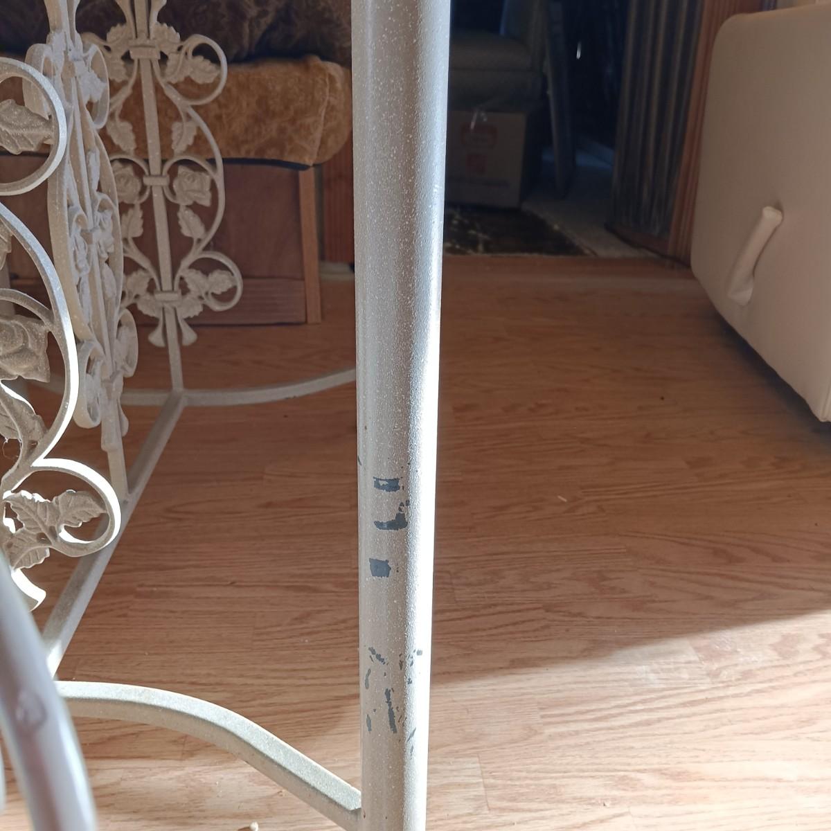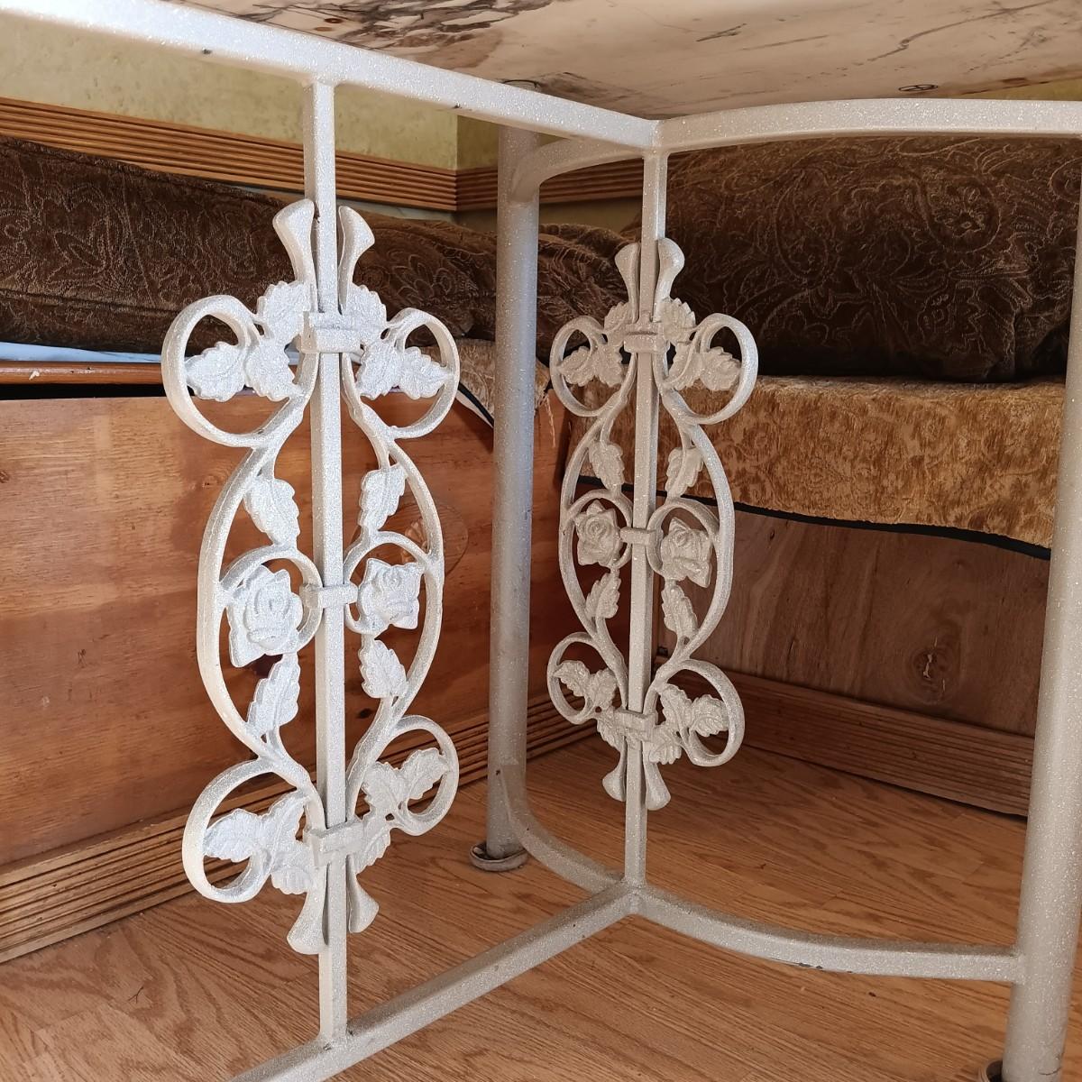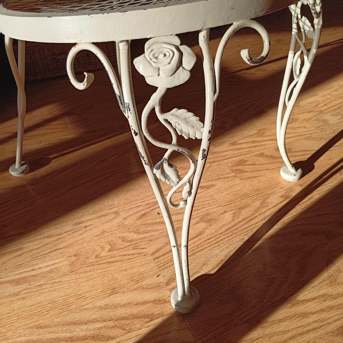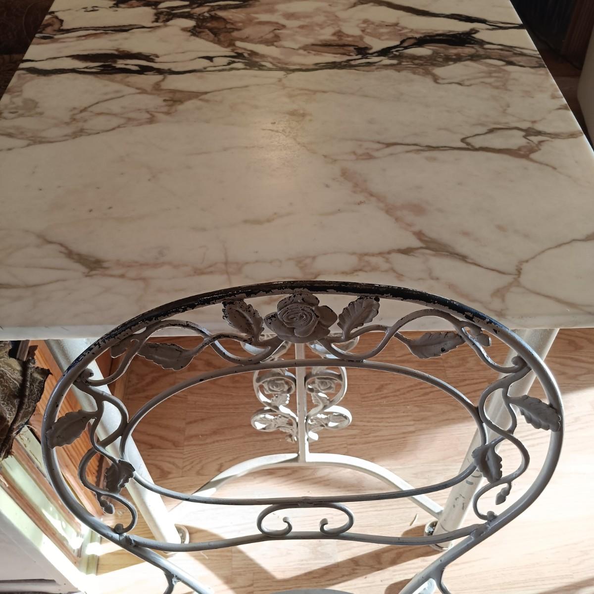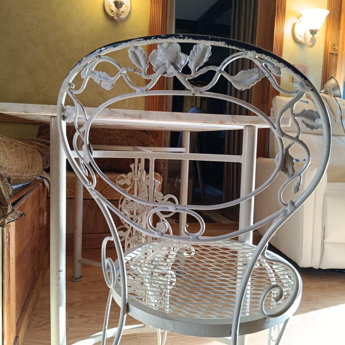 LOT 272: Marble Top Wrought-Iron Table with Two Chairs