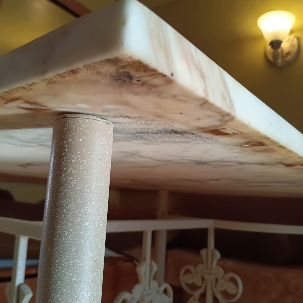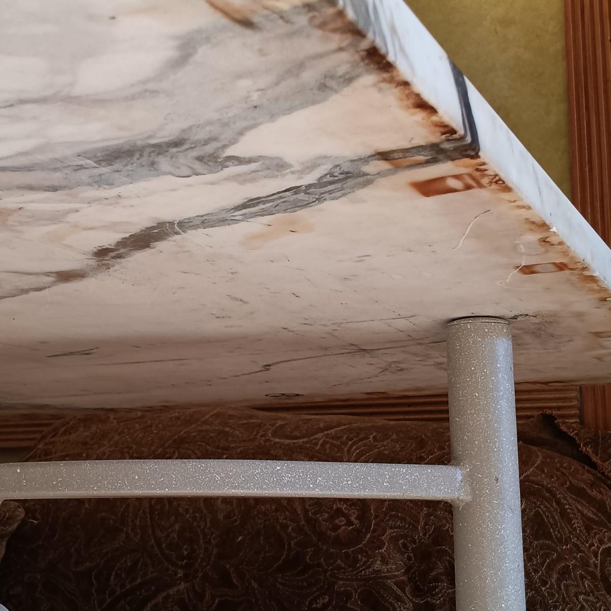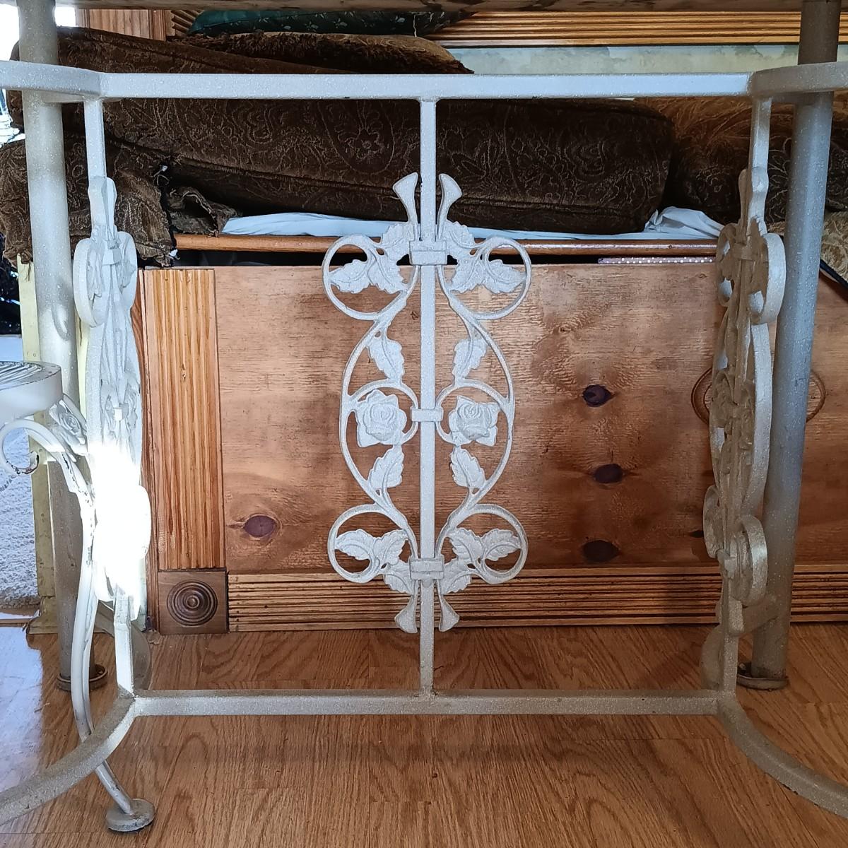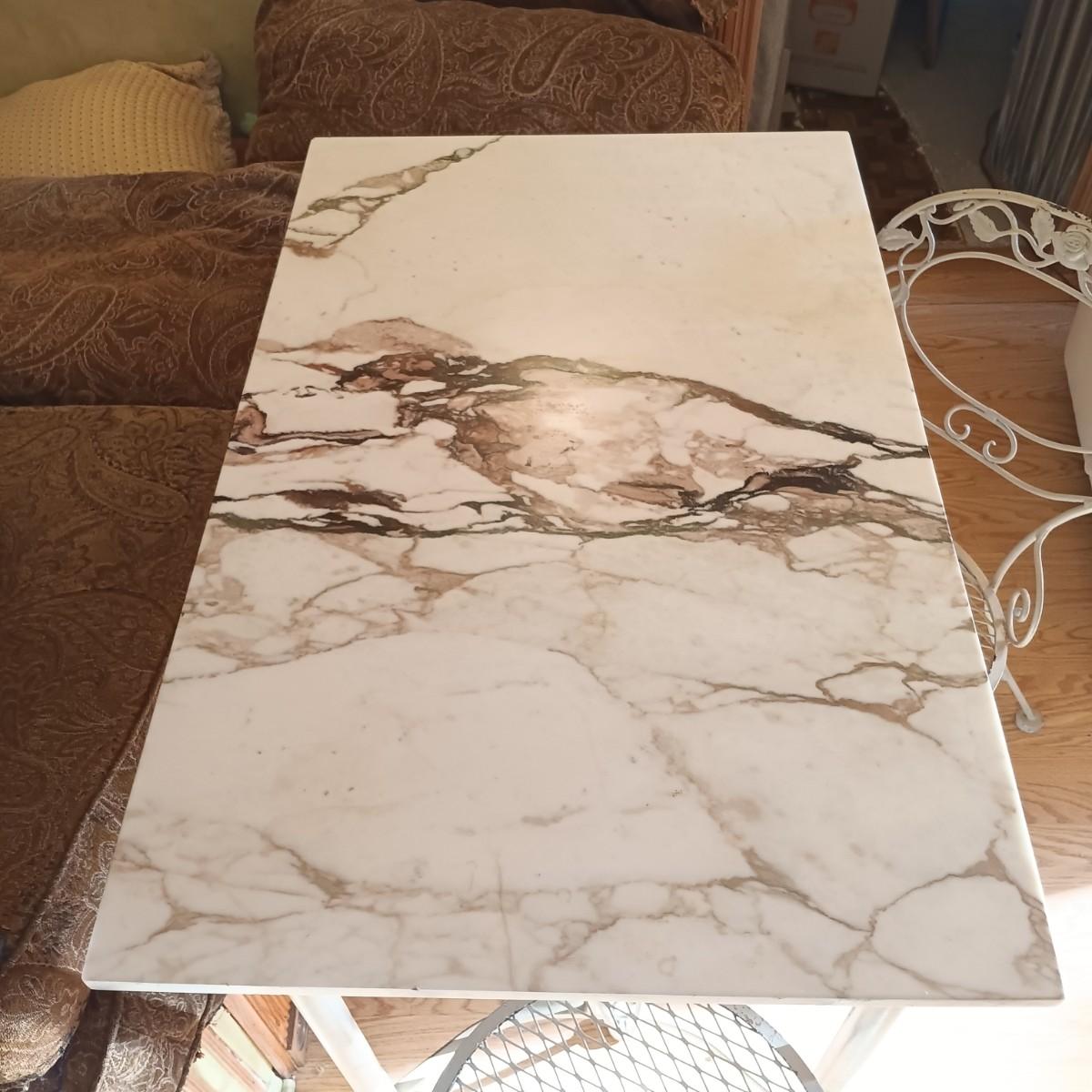 LOT 272: Marble Top Wrought-Iron Table with Two Chairs