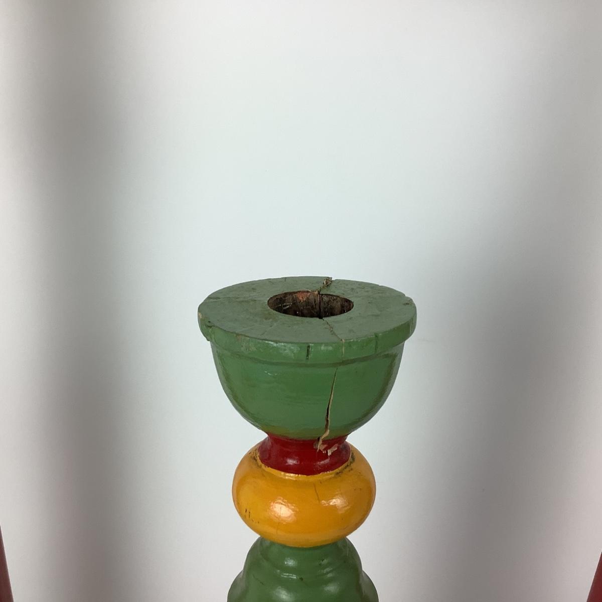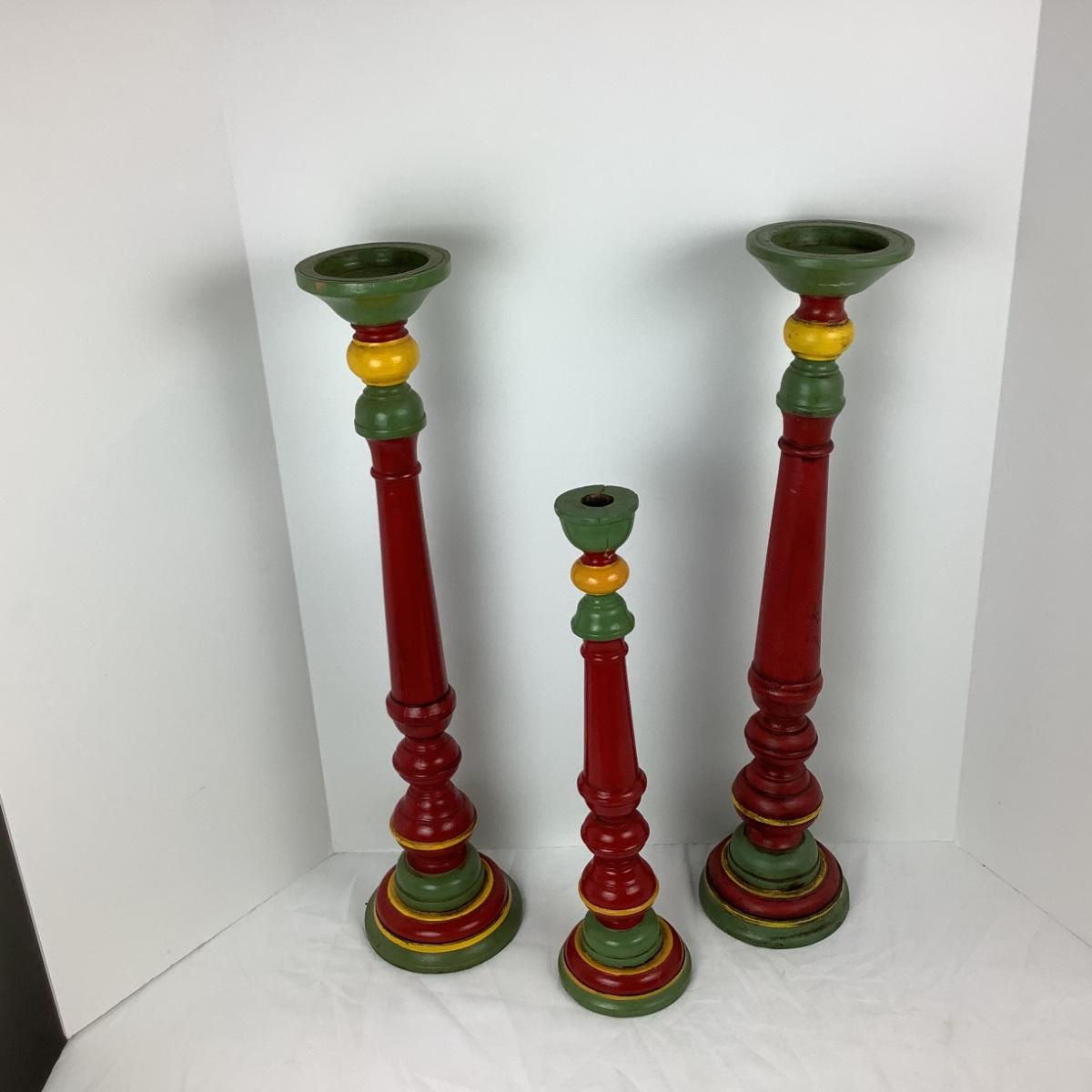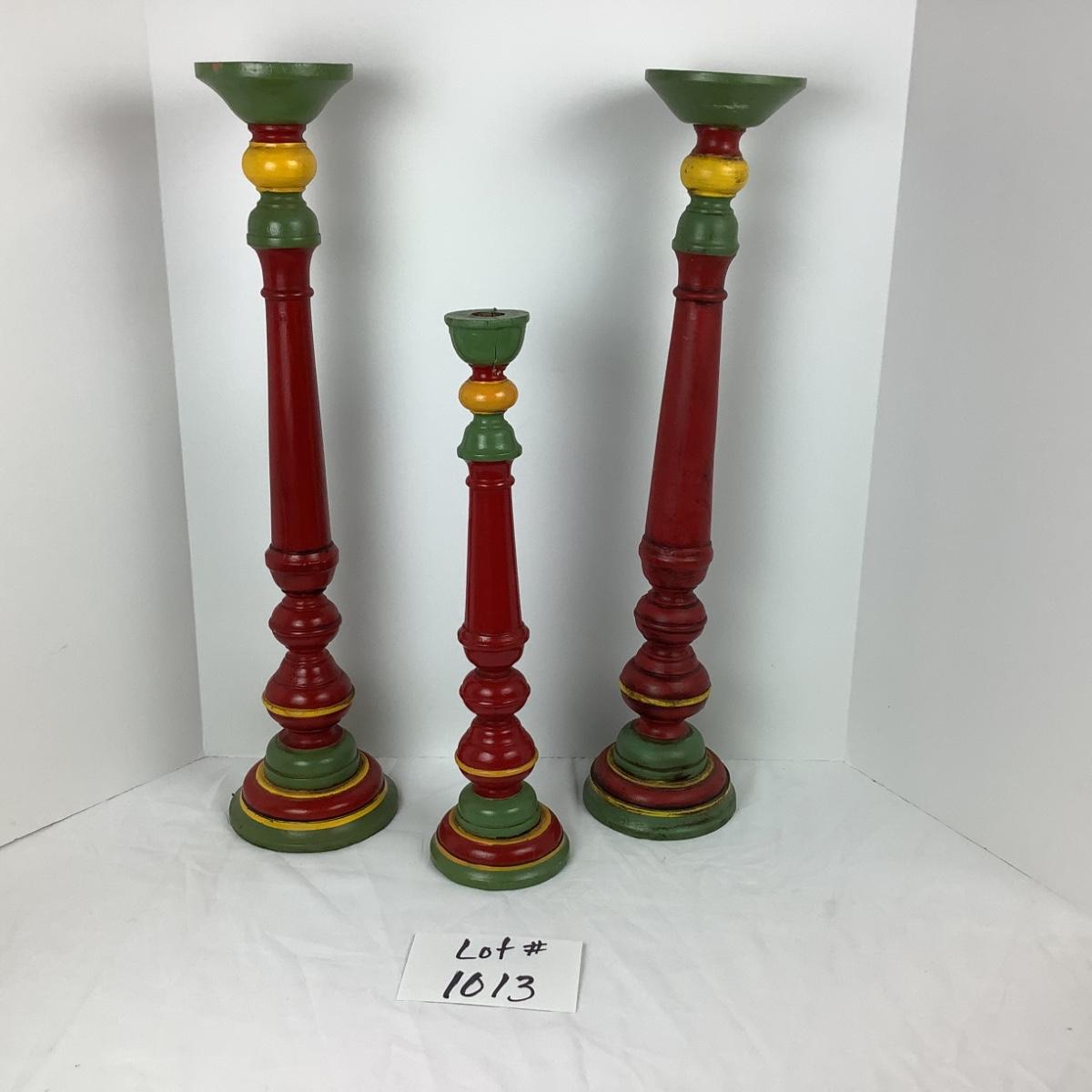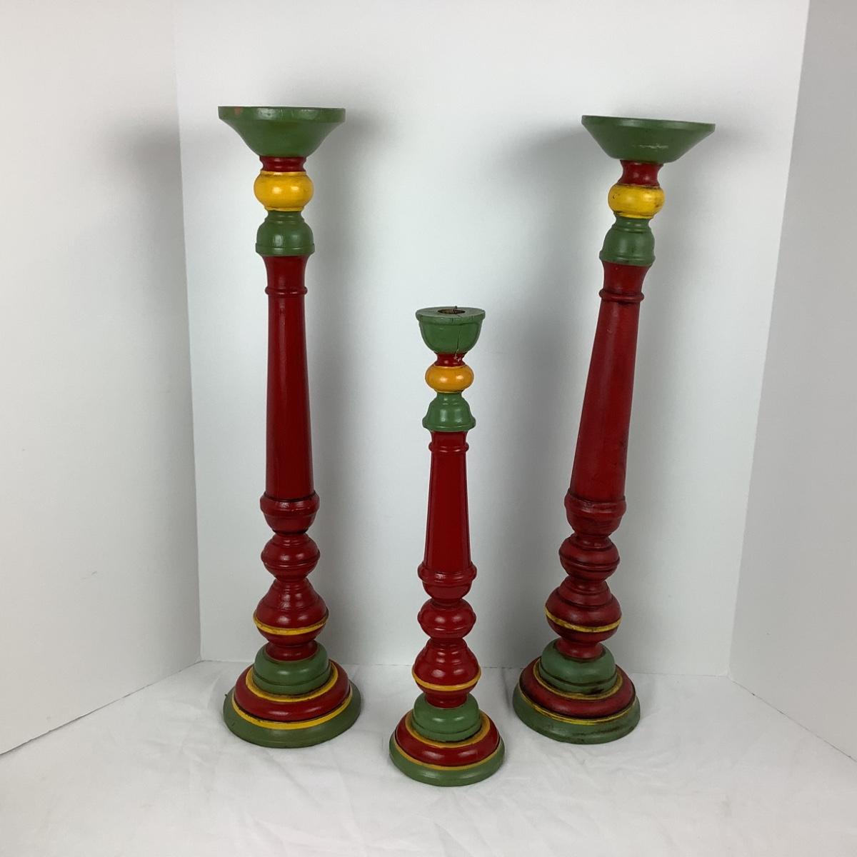 Lot # 1013  Three Vintage Mahogany Hand-carved/Hand-painted Oversized Candlestick