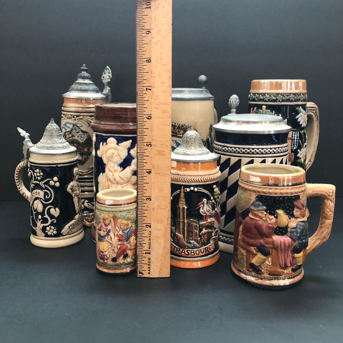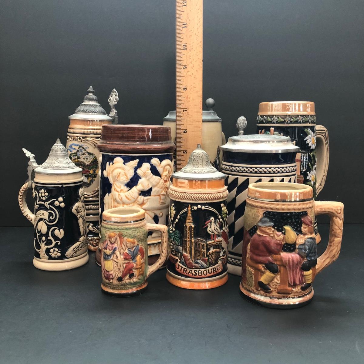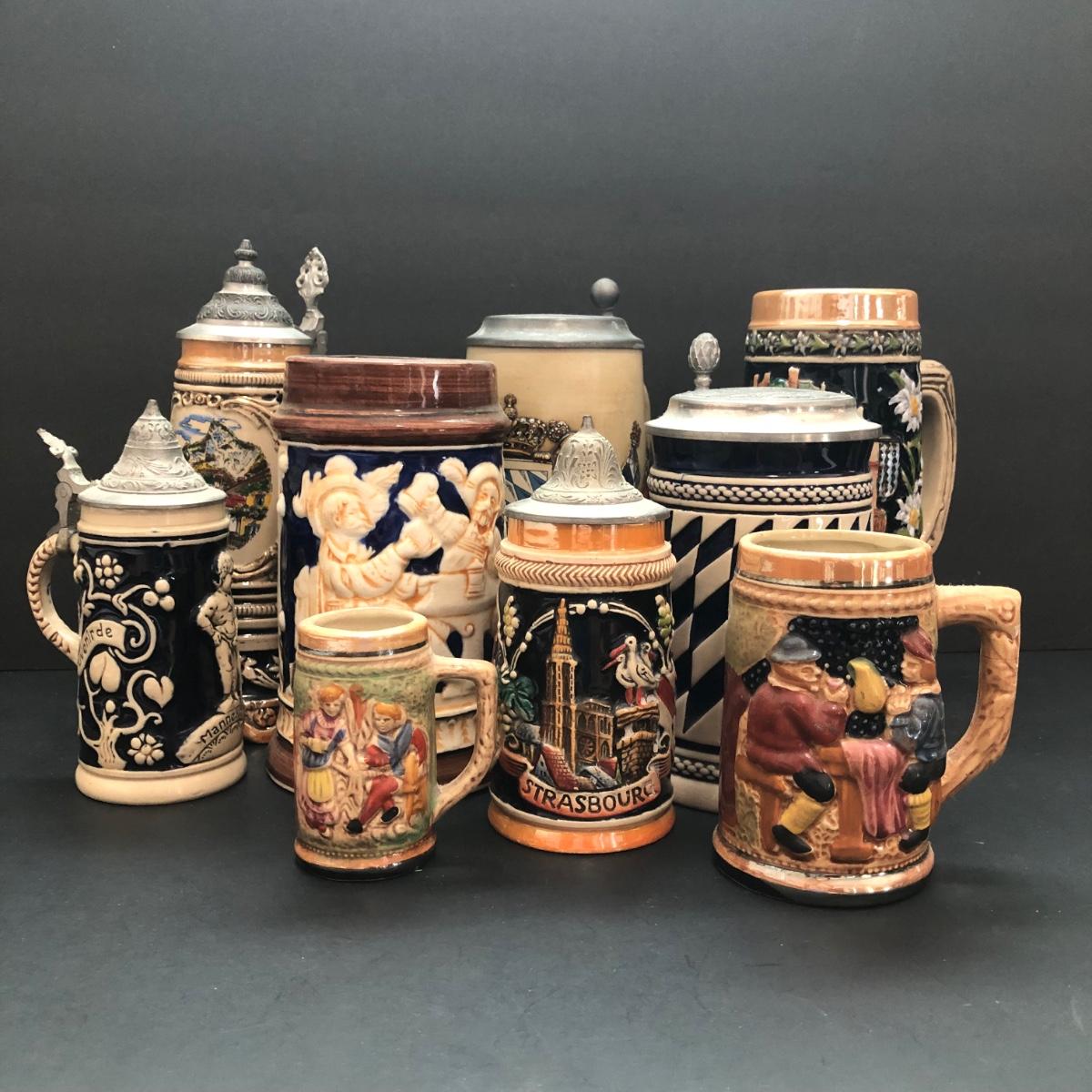 LOT 5U: Vintage Beer Steins - DN&FI Oktoberfest, Mapsa Horbrauhaus Musical Stein, Bayern, Strasbourg, Luxembourg & More