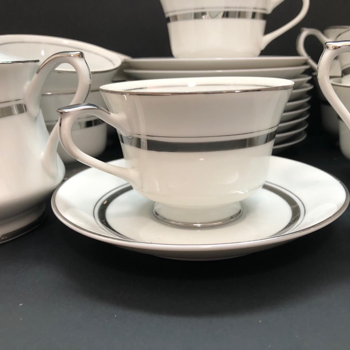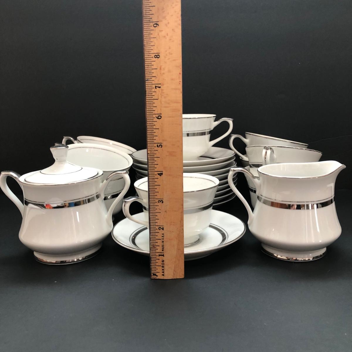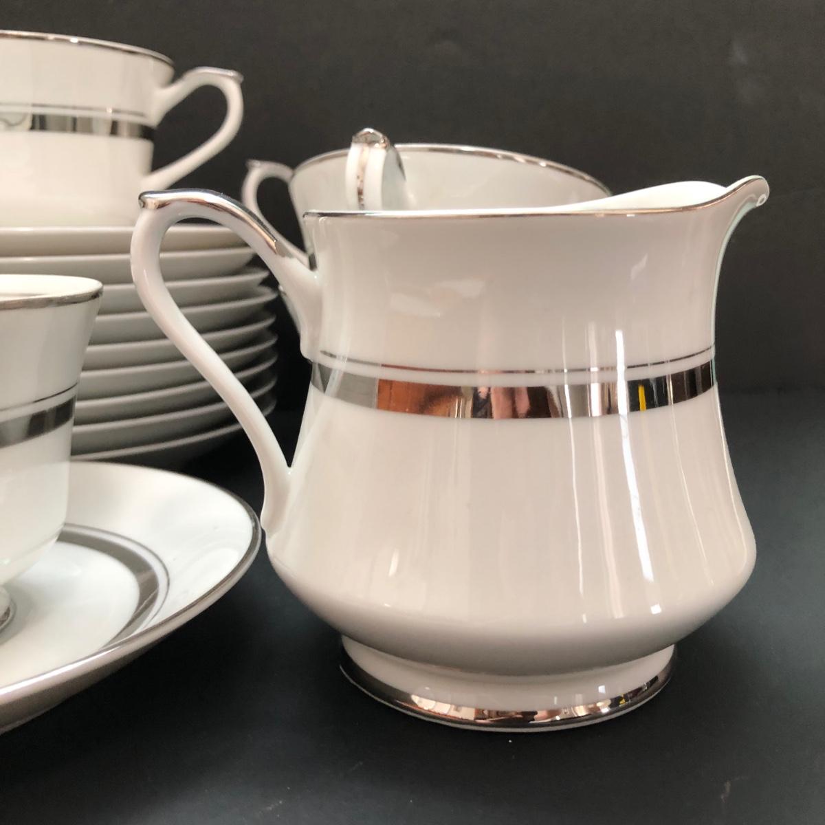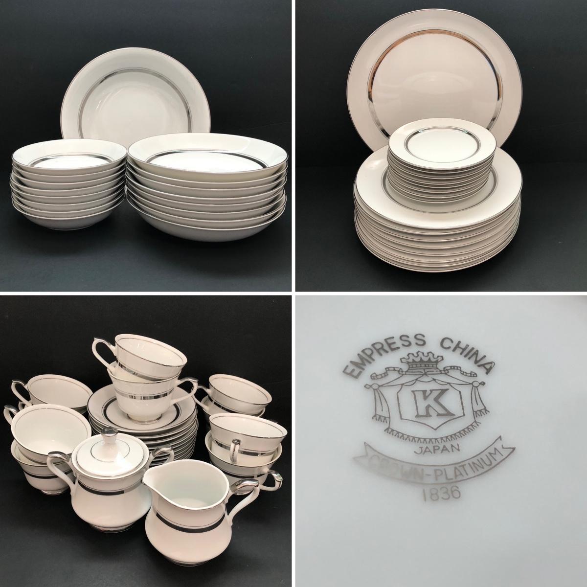 LOT 6U: Set of Crown Platinum Empress China - Plates, Bowls, Teacups, Sugar Bowl & Creamer
