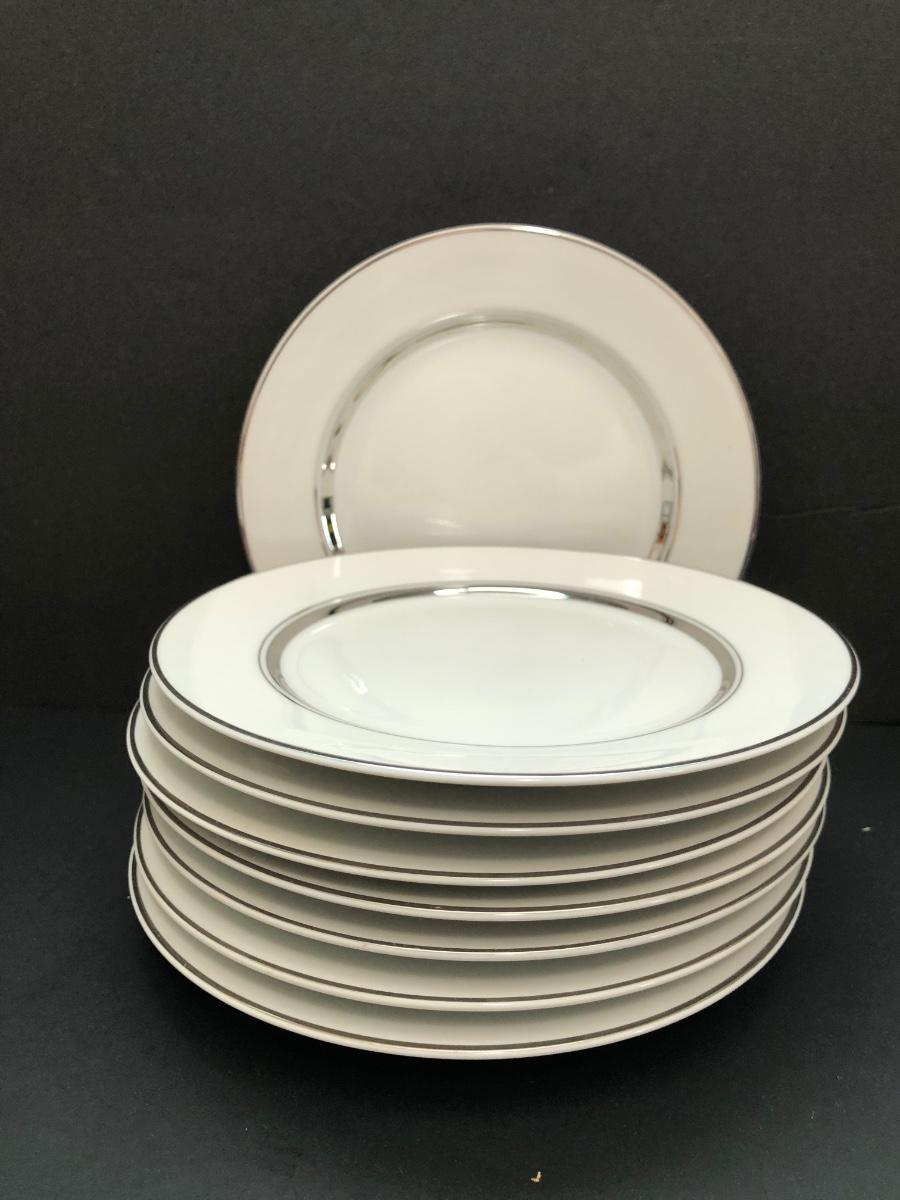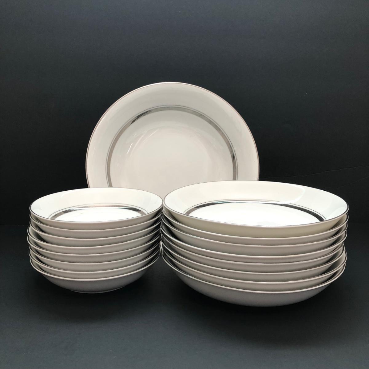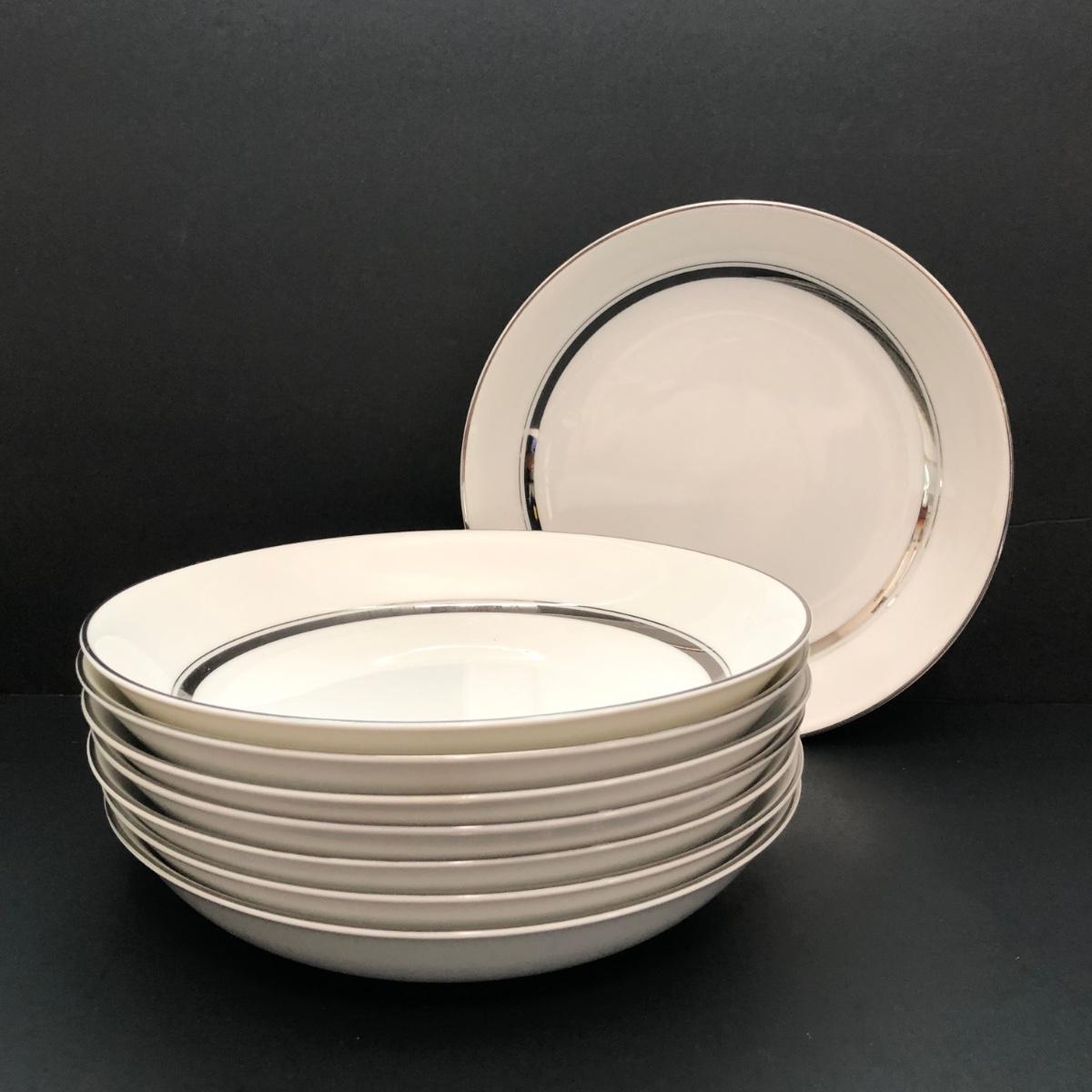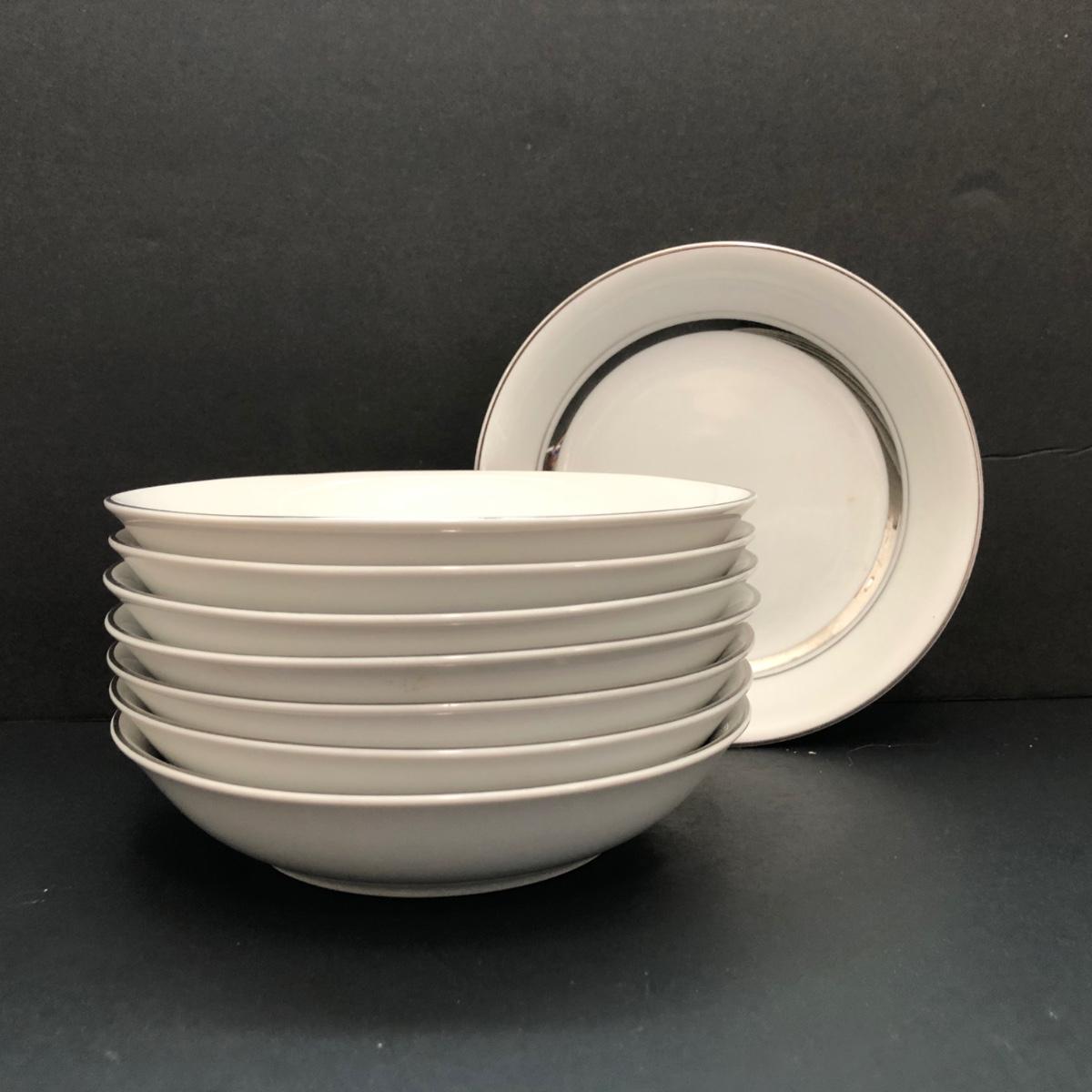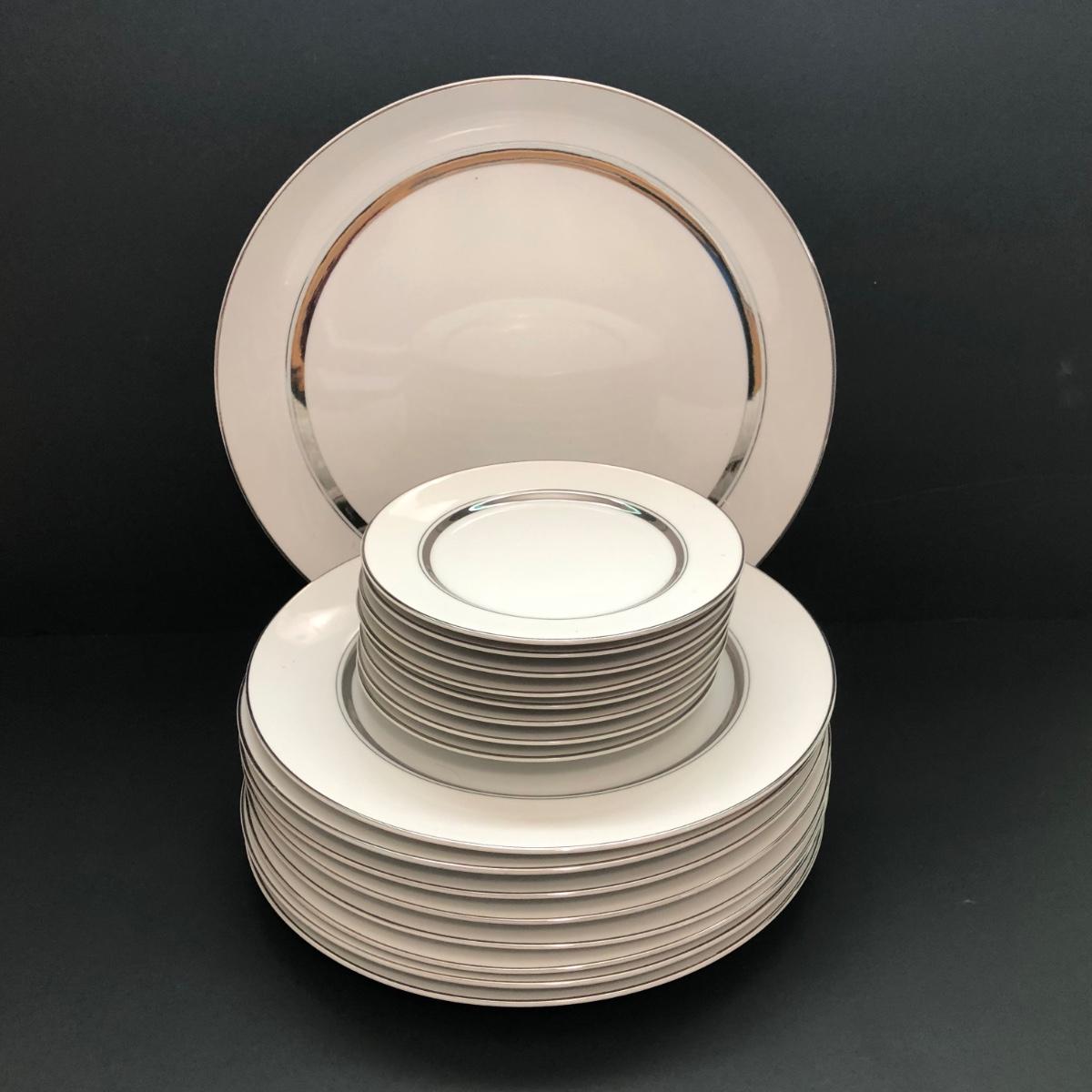 LOT 6U: Set of Crown Platinum Empress China - Plates, Bowls, Teacups, Sugar Bowl & Creamer