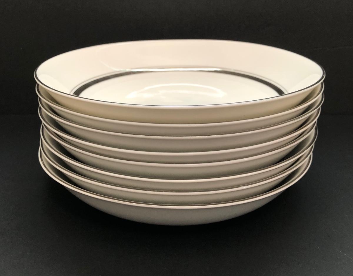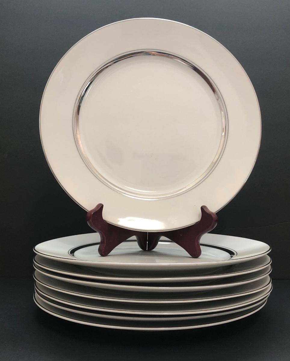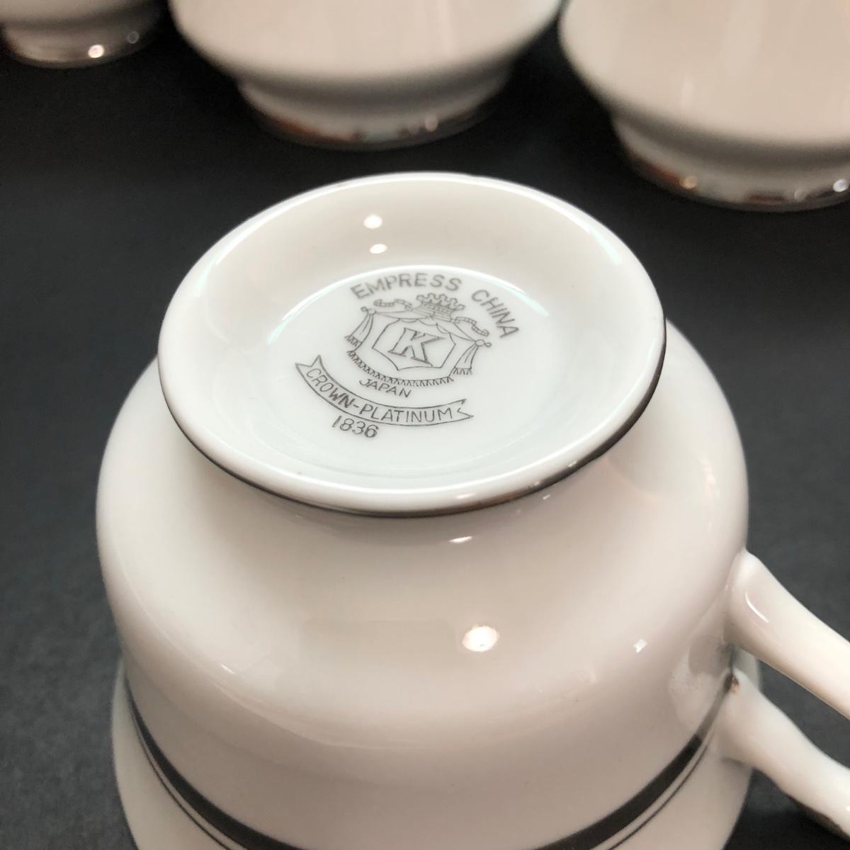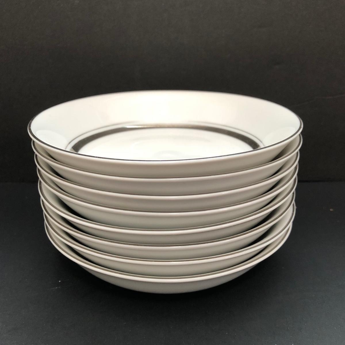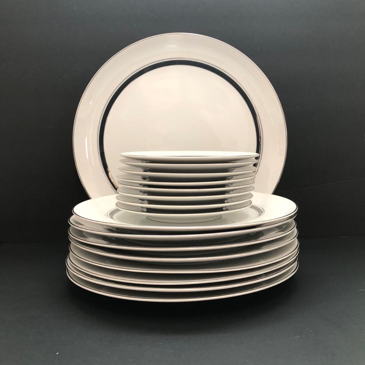 LOT 6U: Set of Crown Platinum Empress China - Plates, Bowls, Teacups, Sugar Bowl & Creamer