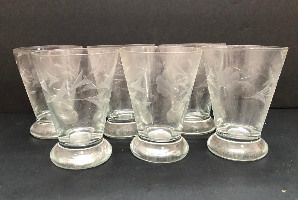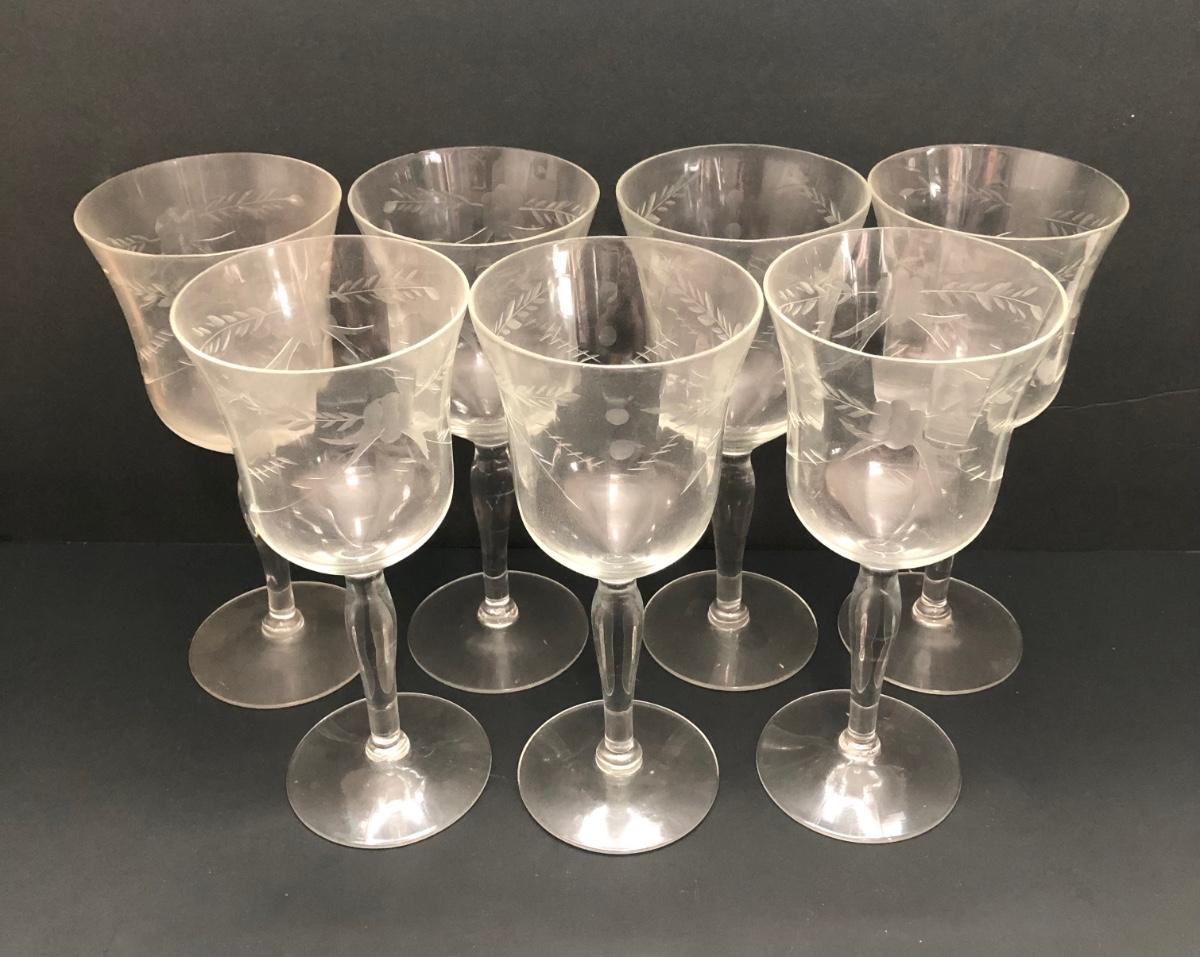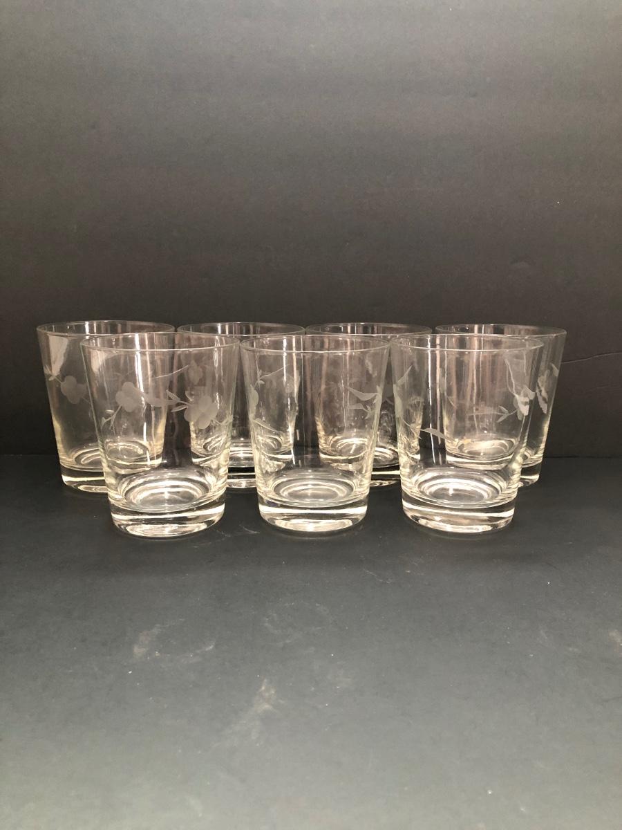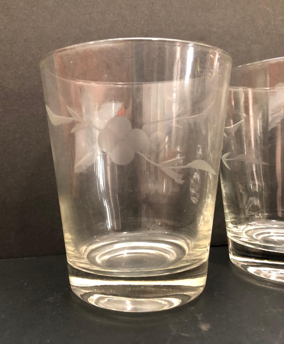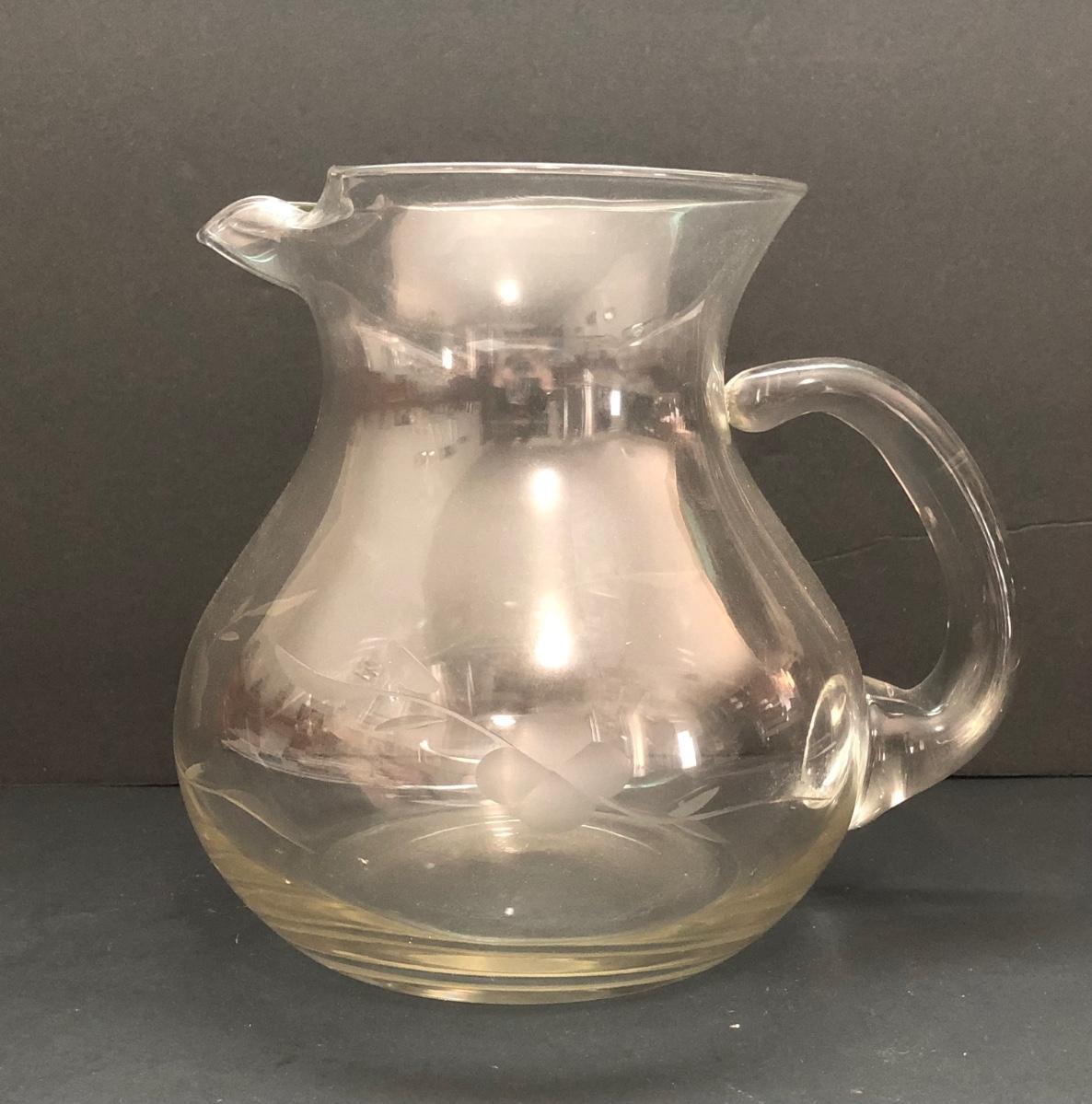 LOT 7U: Collection of Vintage Matching Etched Glass - Stemmed, High and Lowball Glasses, Pitcher