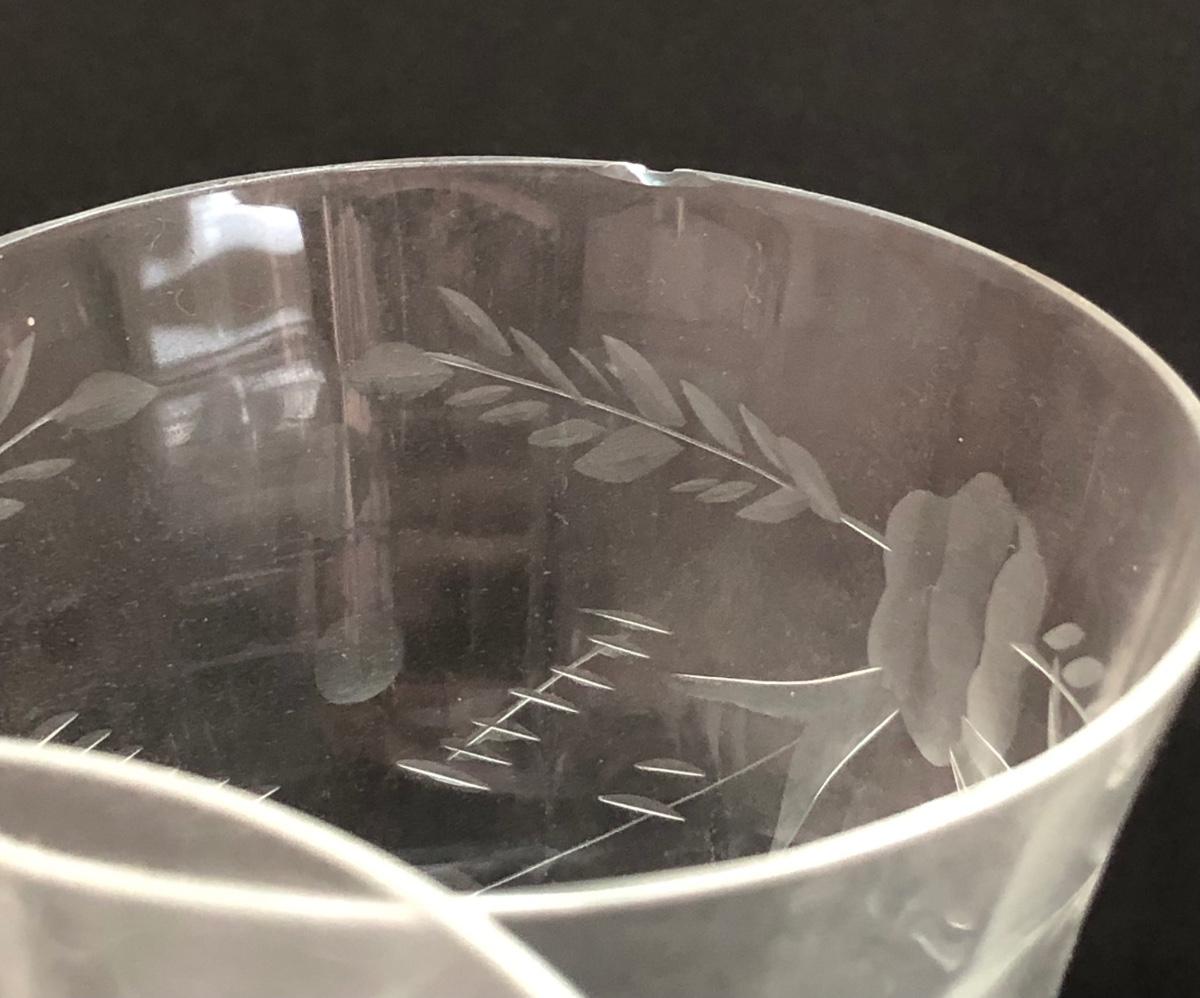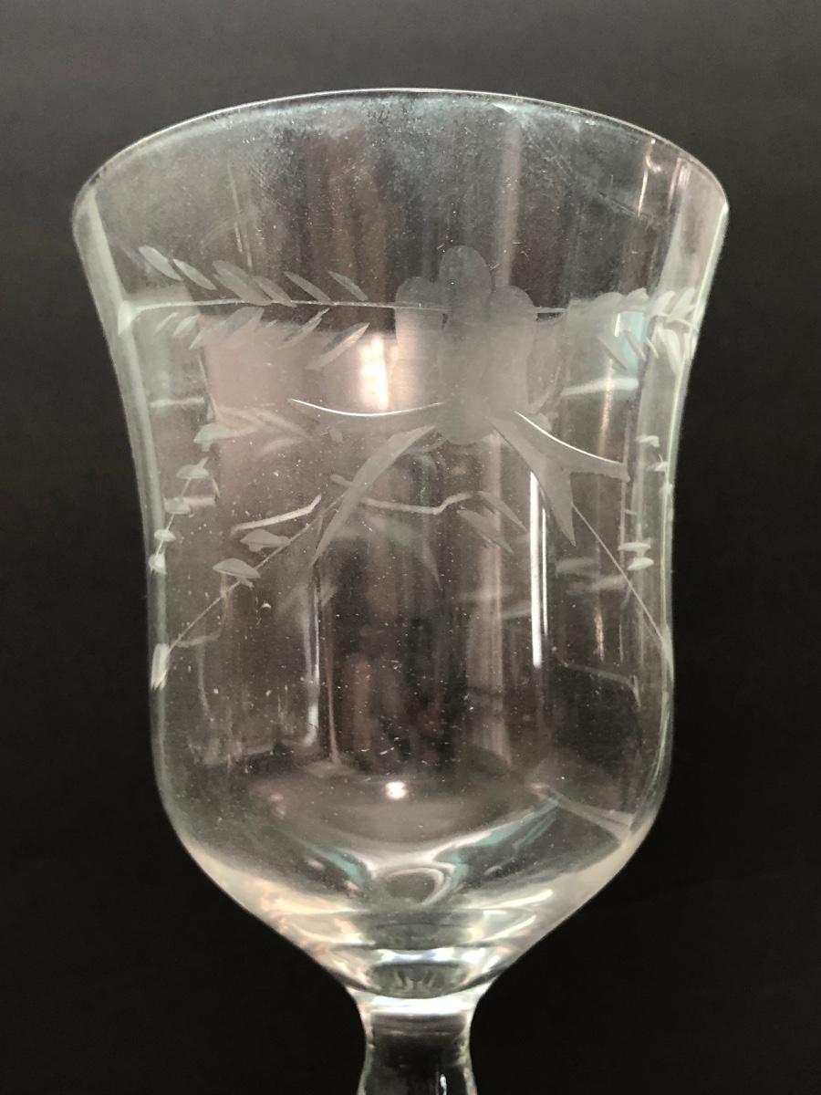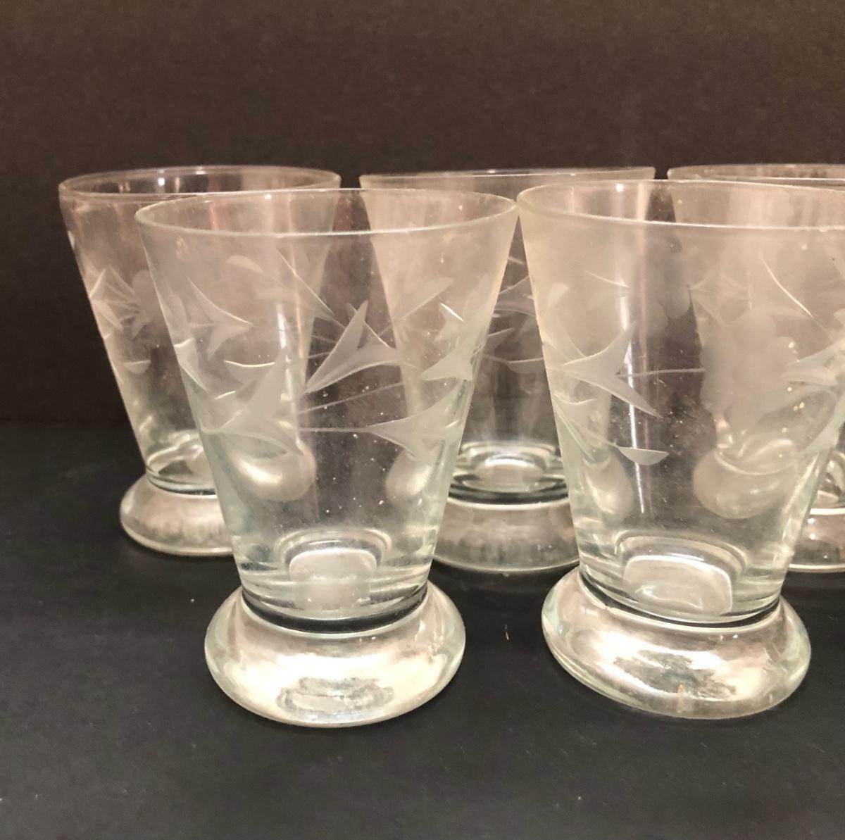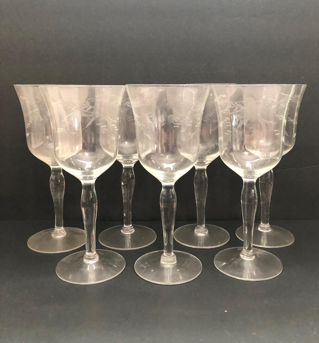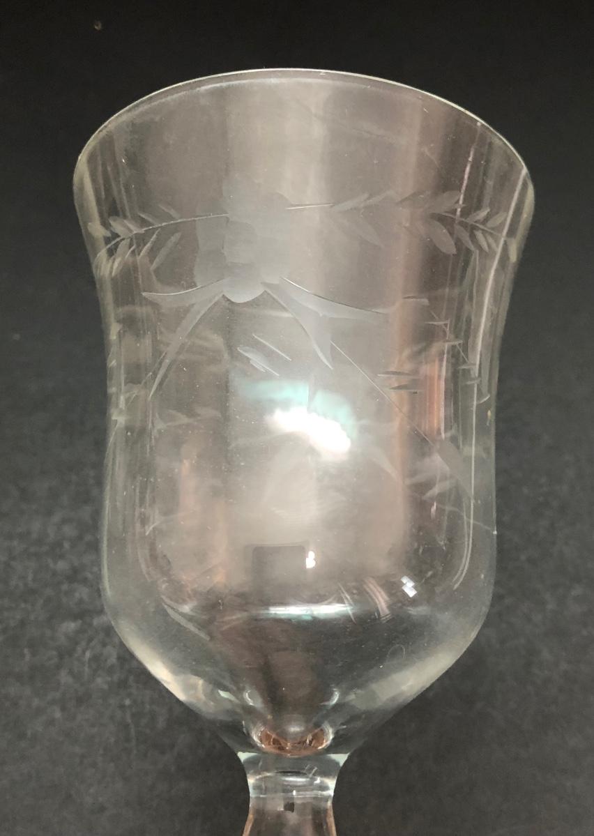LOT 7U: Collection of Vintage Matching Etched Glass - Stemmed, High and Lowball Glasses, Pitcher