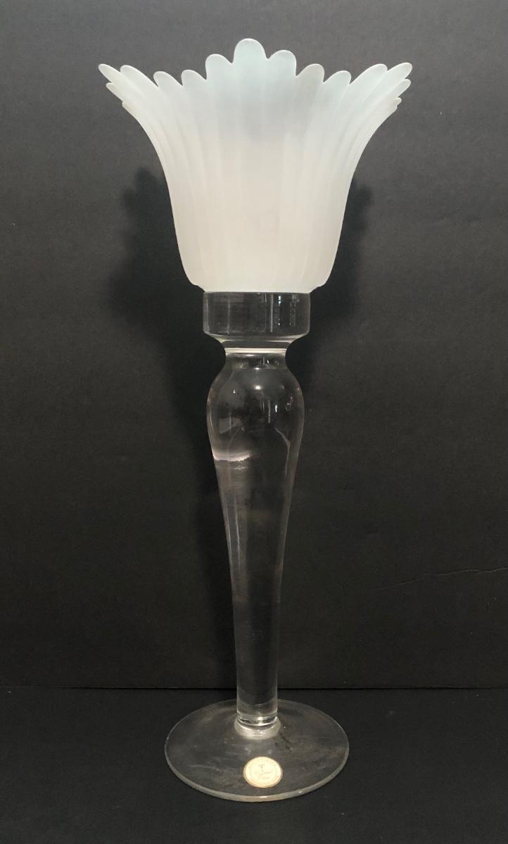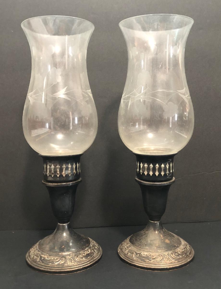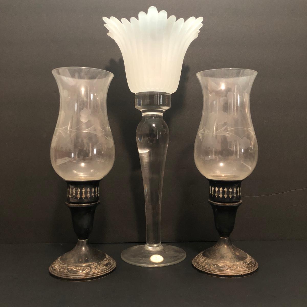 LOT 9U: Vintage Towle Weighted Sterling Silver Candlestick Holders w/ Glass Toppers & Frosted Crystal Tulip Candle Holder
