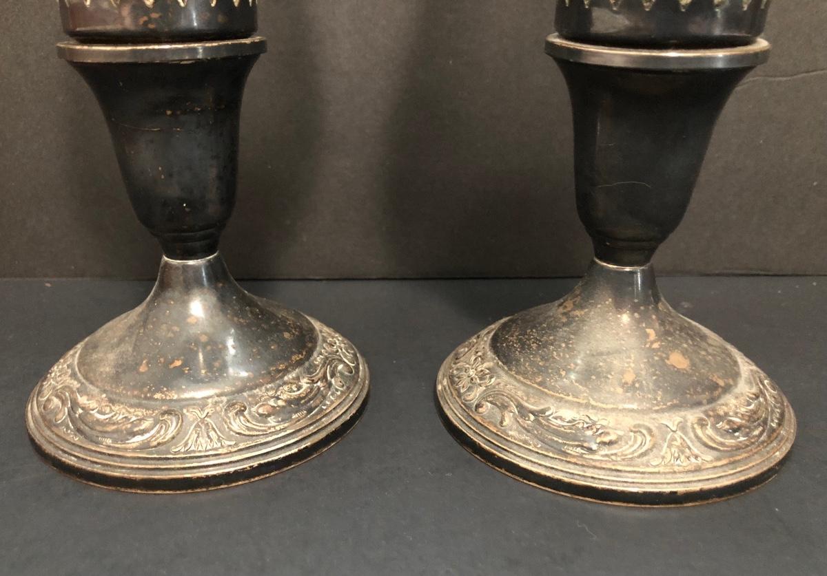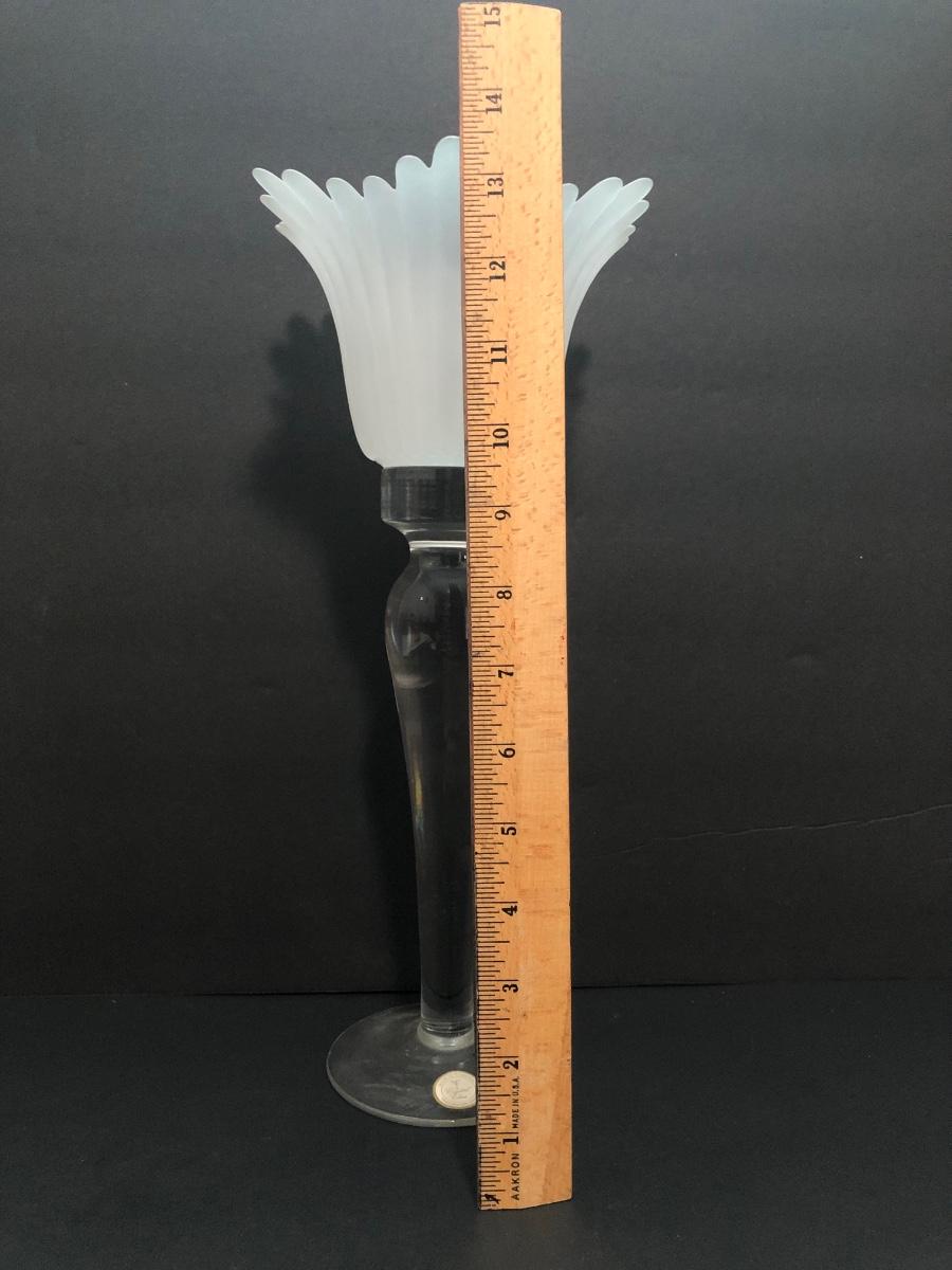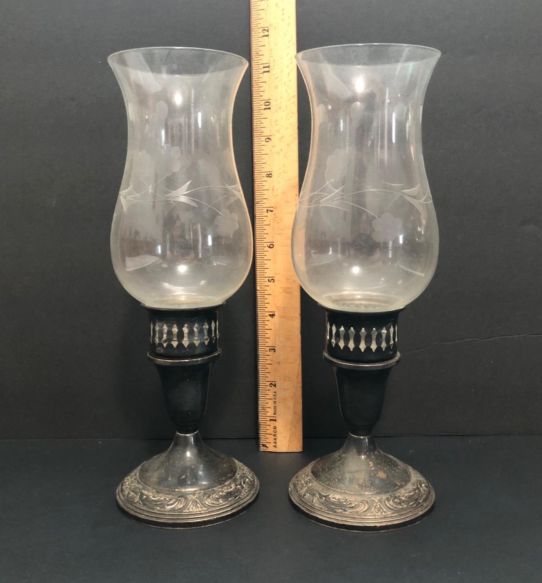 LOT 9U: Vintage Towle Weighted Sterling Silver Candlestick Holders w/ Glass Toppers & Frosted Crystal Tulip Candle Holder