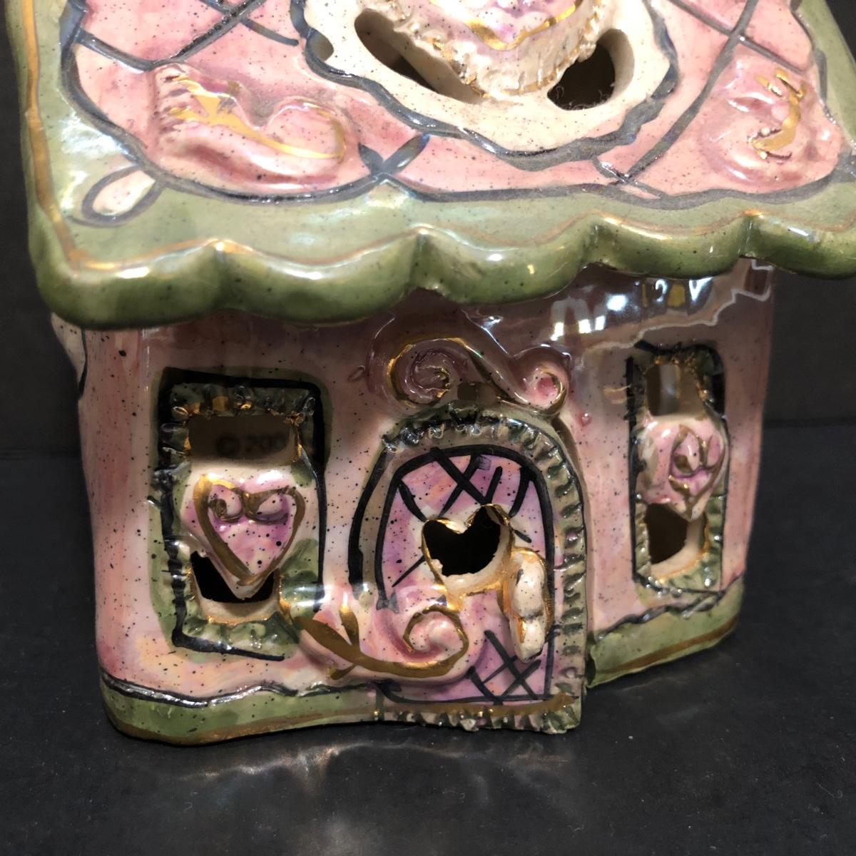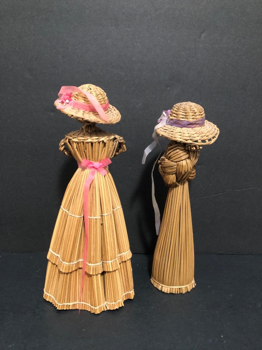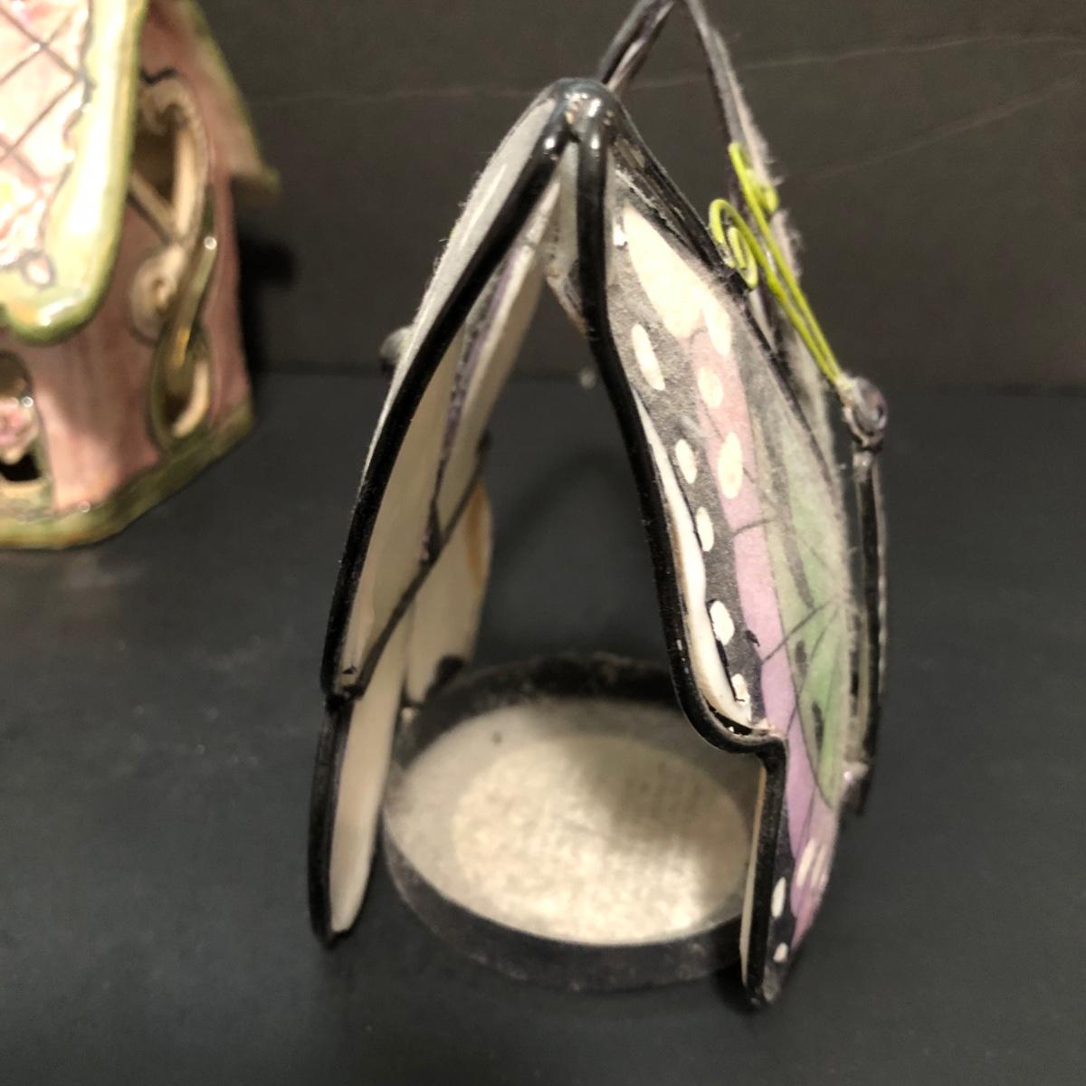 LOT 25U: Vintage Decor Collection - Straw Dolls, Signed Heather Goldminc Love House Sculpture, Pink Depression Glass, Butterfly Votive & More