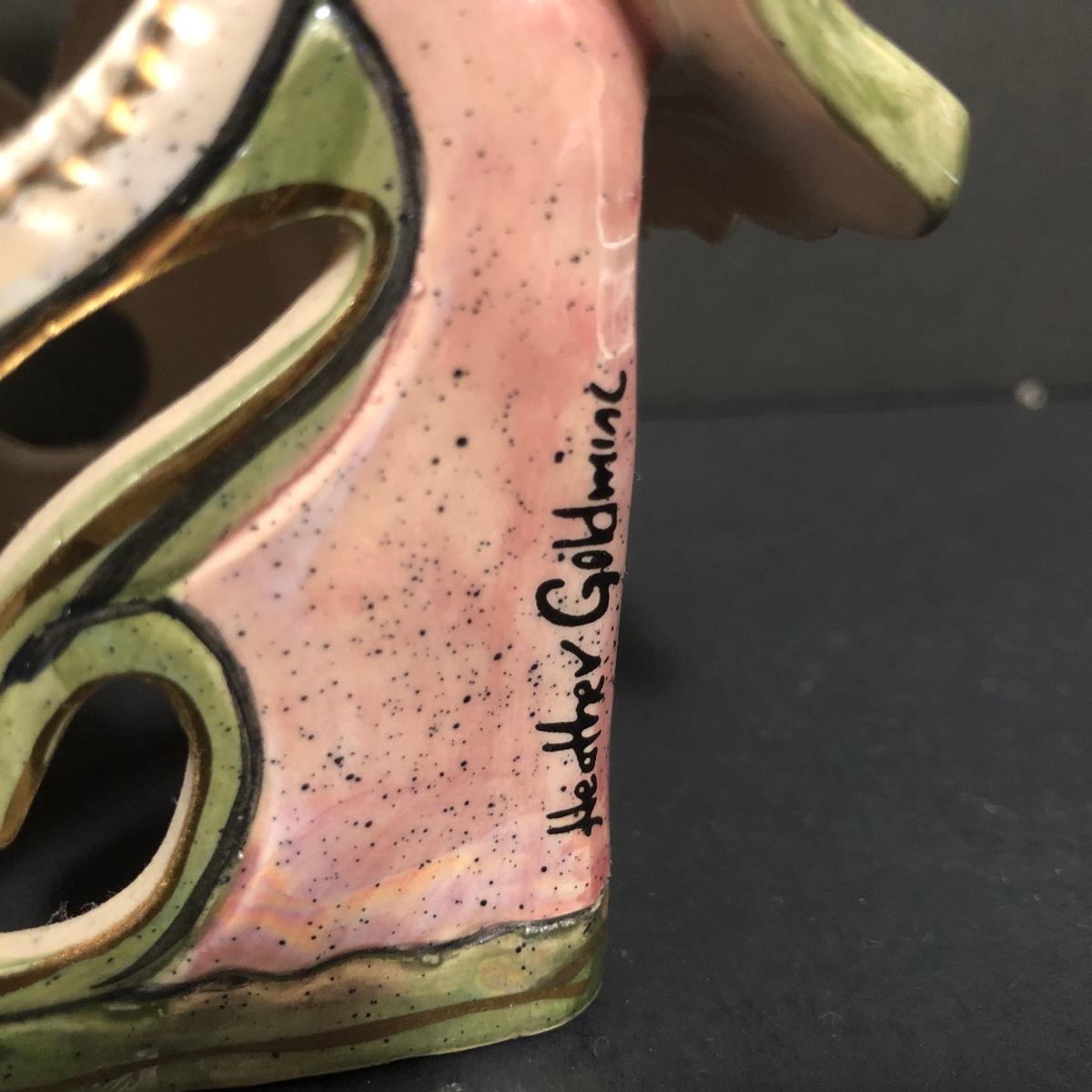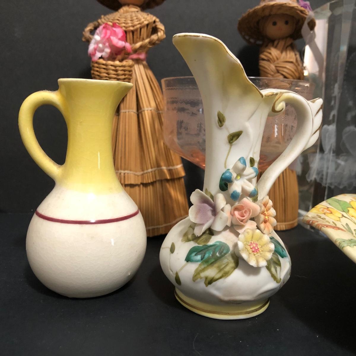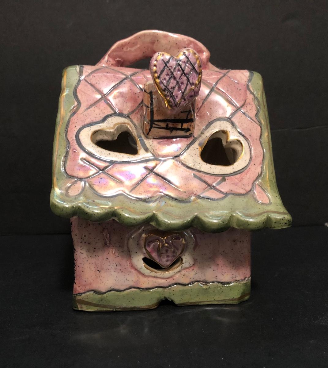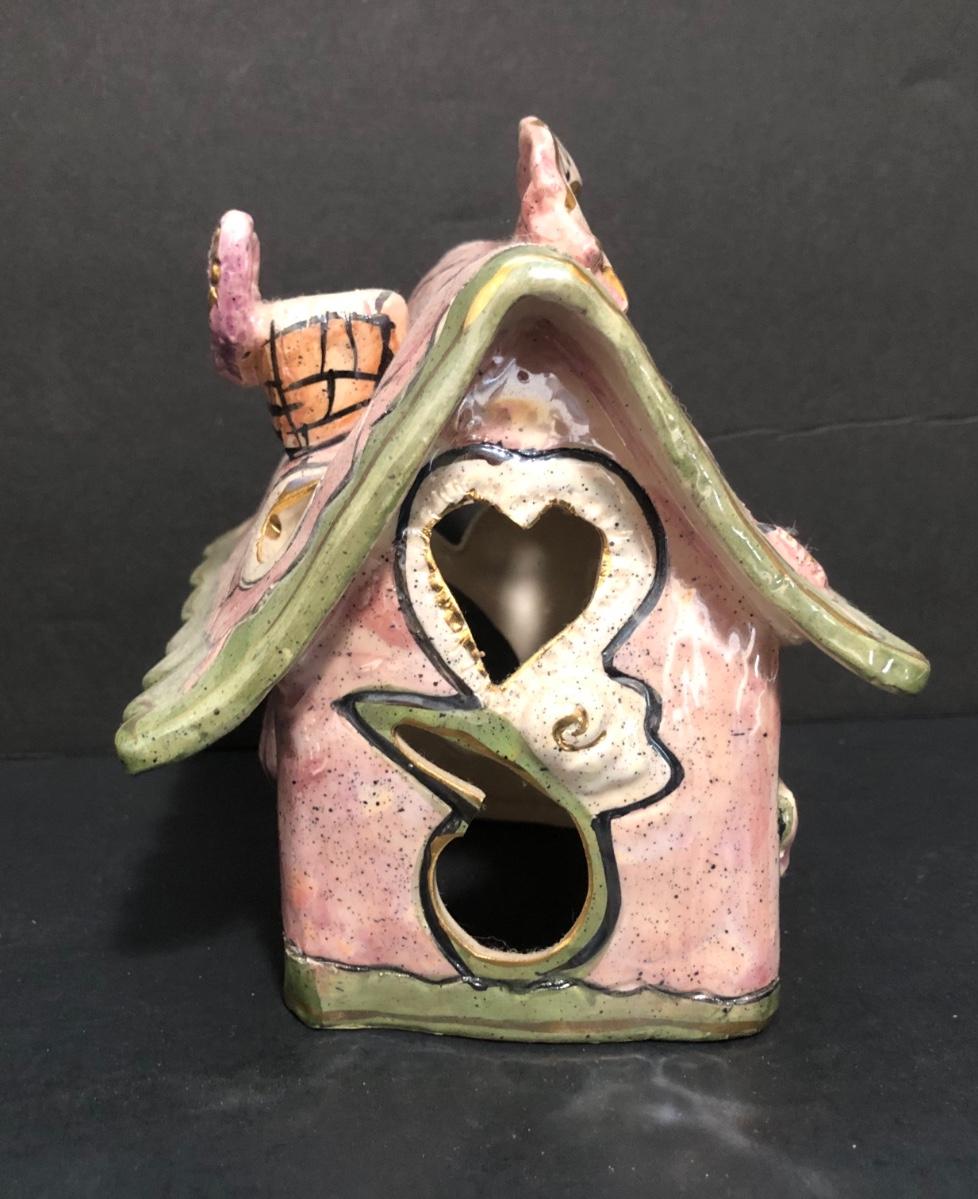 LOT 25U: Vintage Decor Collection - Straw Dolls, Signed Heather Goldminc Love House Sculpture, Pink Depression Glass, Butterfly Votive & More