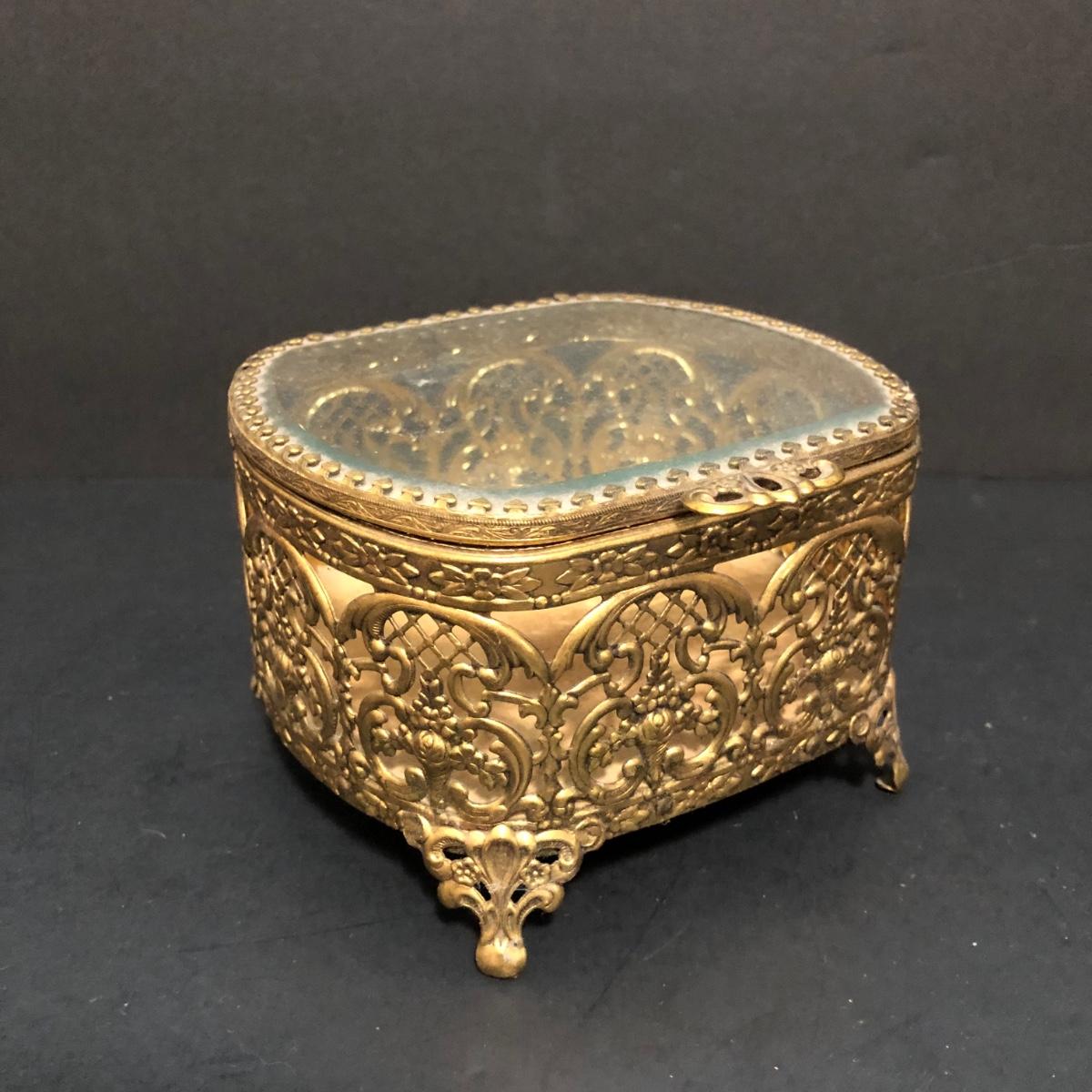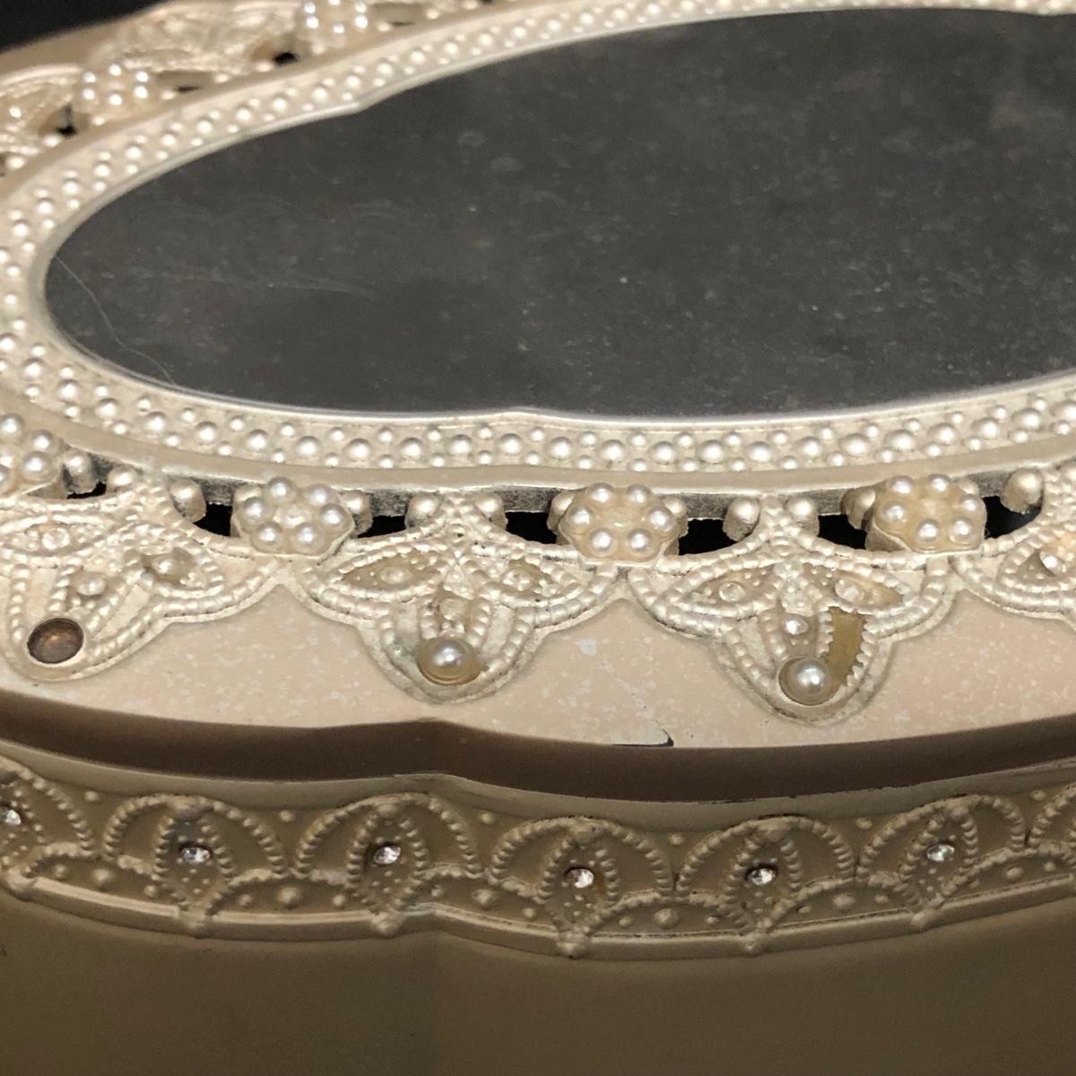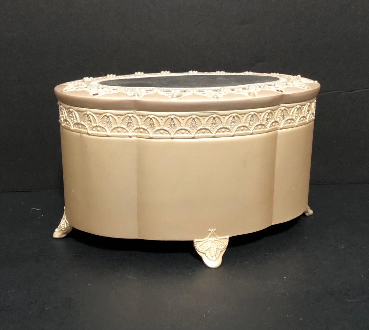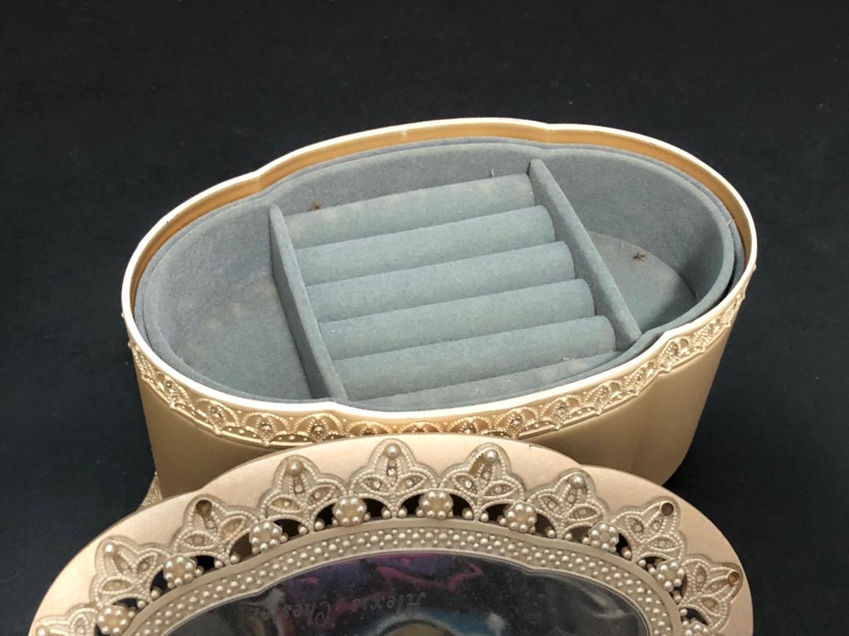 LOT 28U: Vintage Vanity Collection - Engraved Things Remembered Musical Jewelry Box w/ Swarovski Crystal Accents, Porcelain Flower Basket, Mini Oil Lamp, Perfume Bottles & More