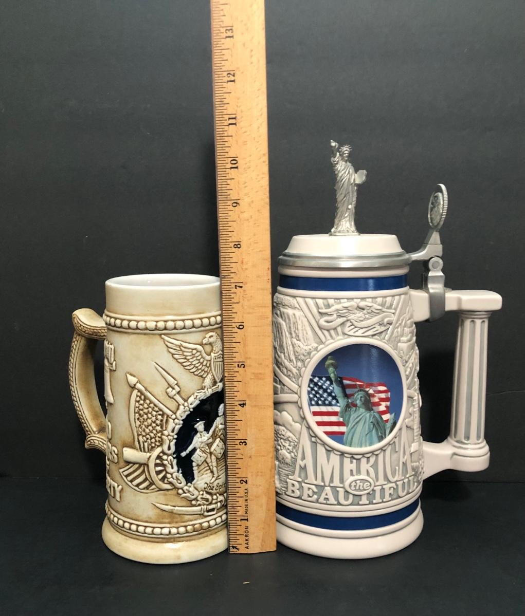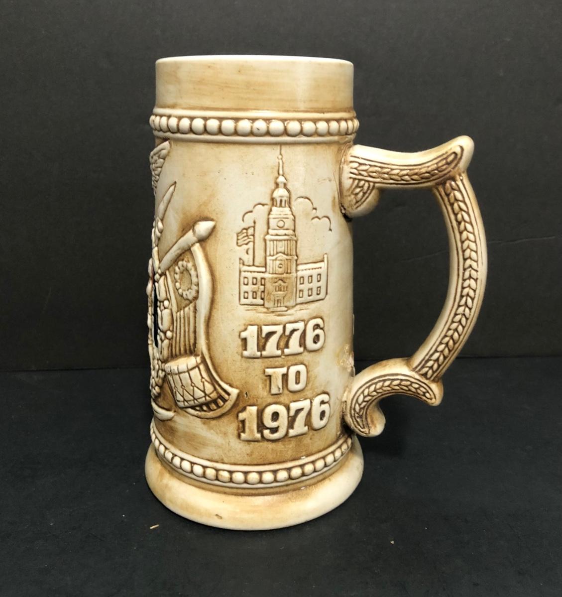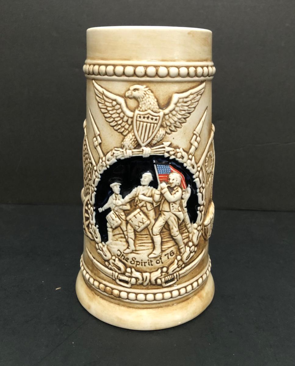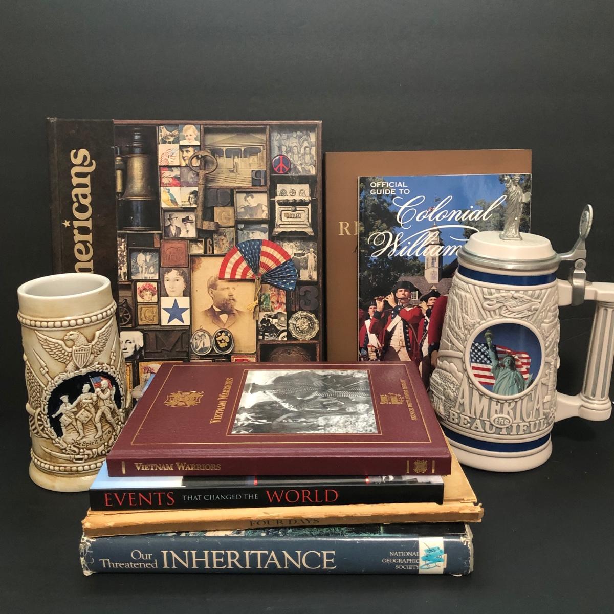 LOT 34U: Patriotic Collection - 2002 Avon America the Beautiful Stein, Americana Art China Co Bicentennial Stein & Books on US History & Culture