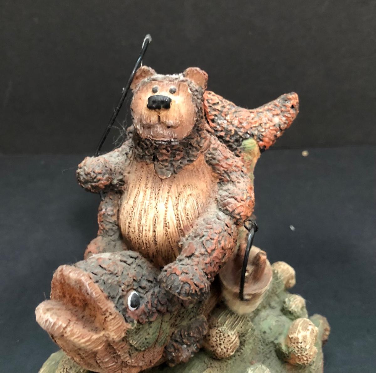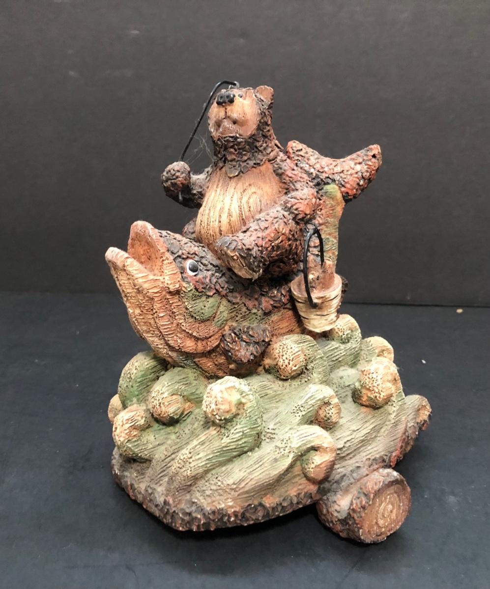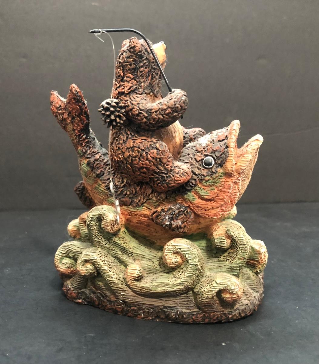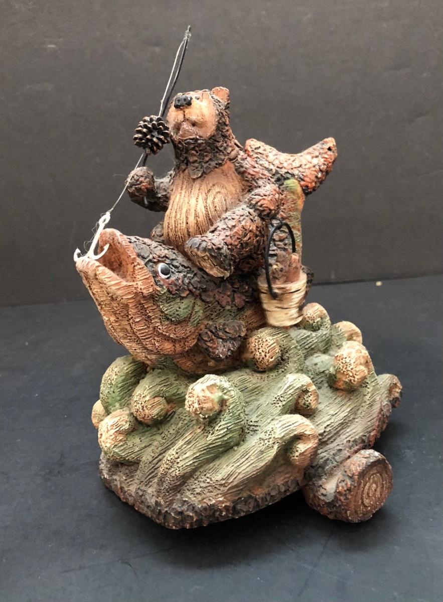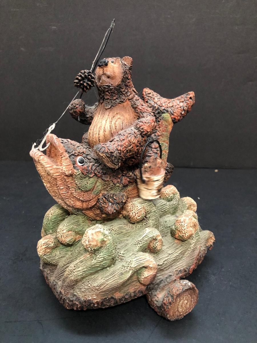 LOT 43U: Fisherman's Collection - Vintage Carolina Collection Ceramarte American Angler Series Large Mouth Bass Stein, Jon A Wright Bass Stein, Fishing Bear Figurine, Books & Decor