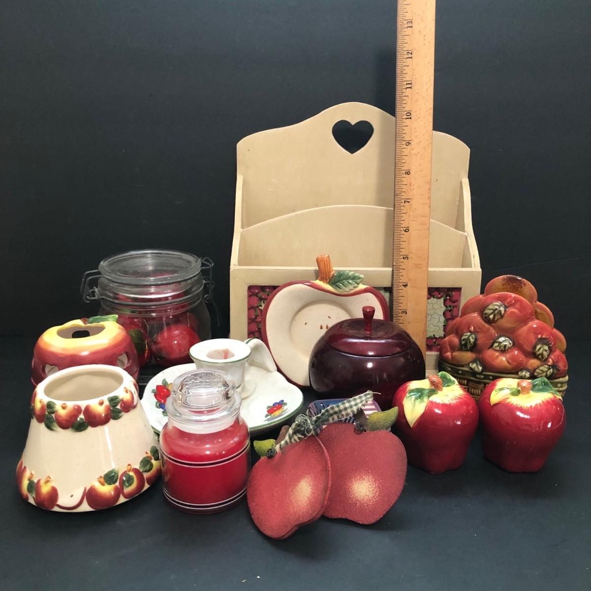 LOT 44U: Apple Decor & Kitchen Collection incl. Macintosh Mini Yankee Candle & Candle Topper