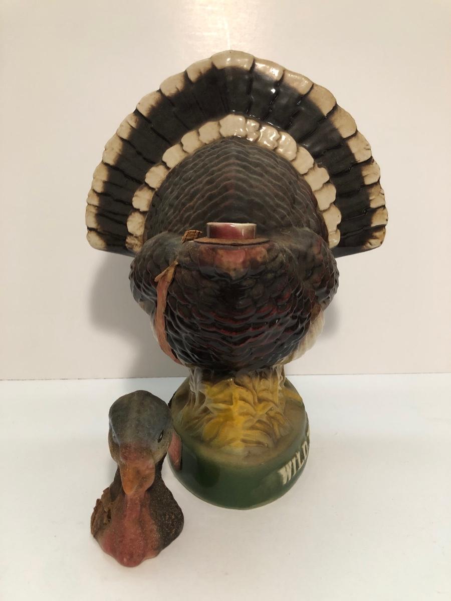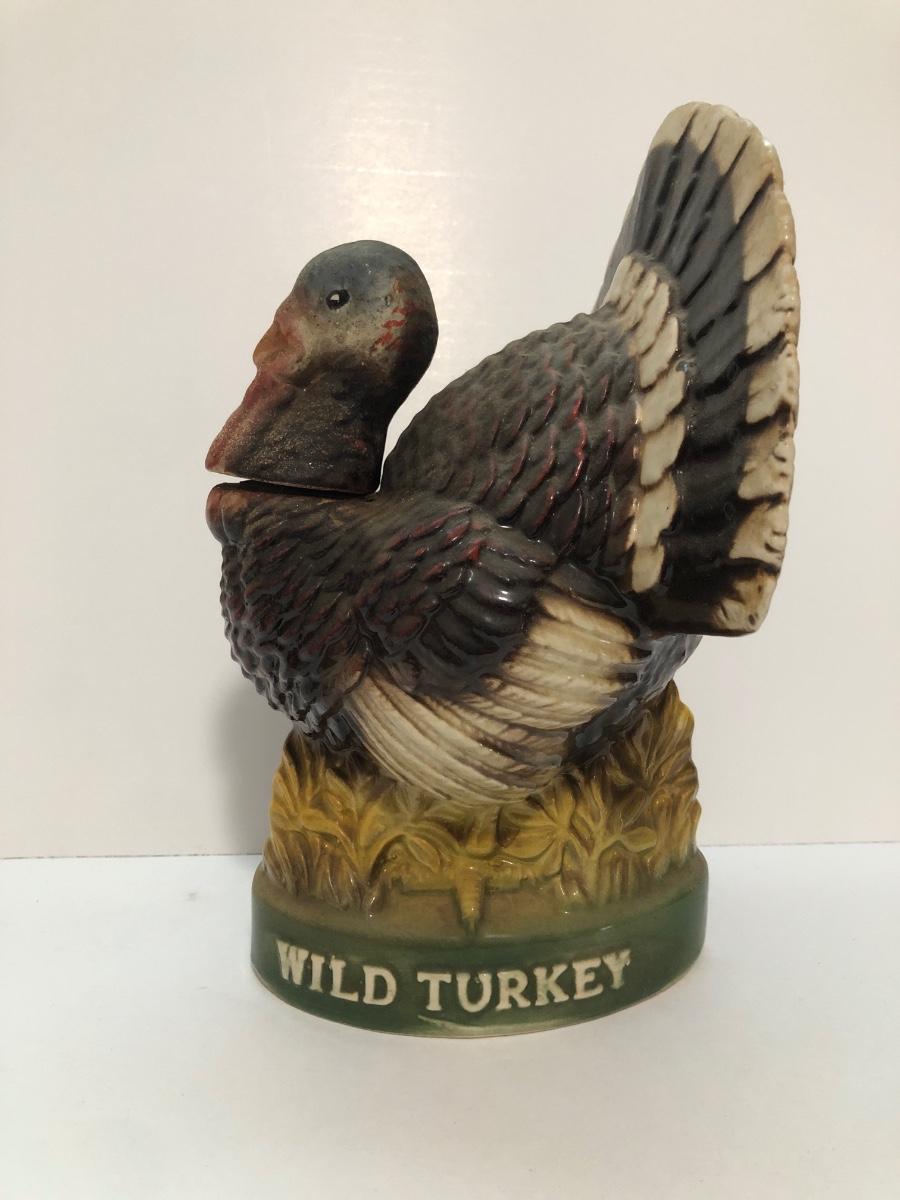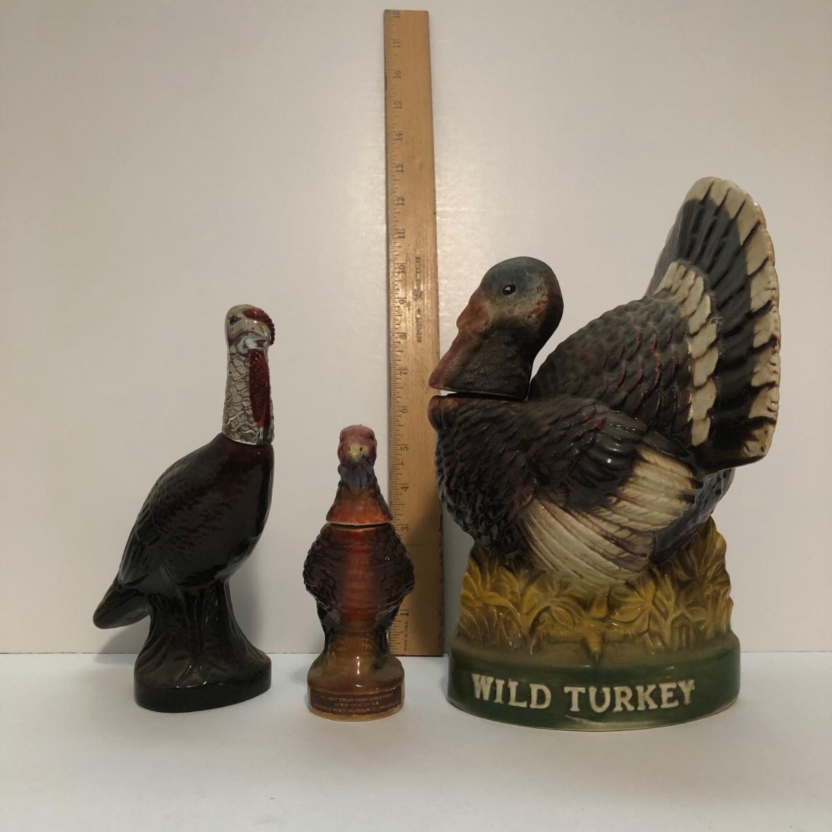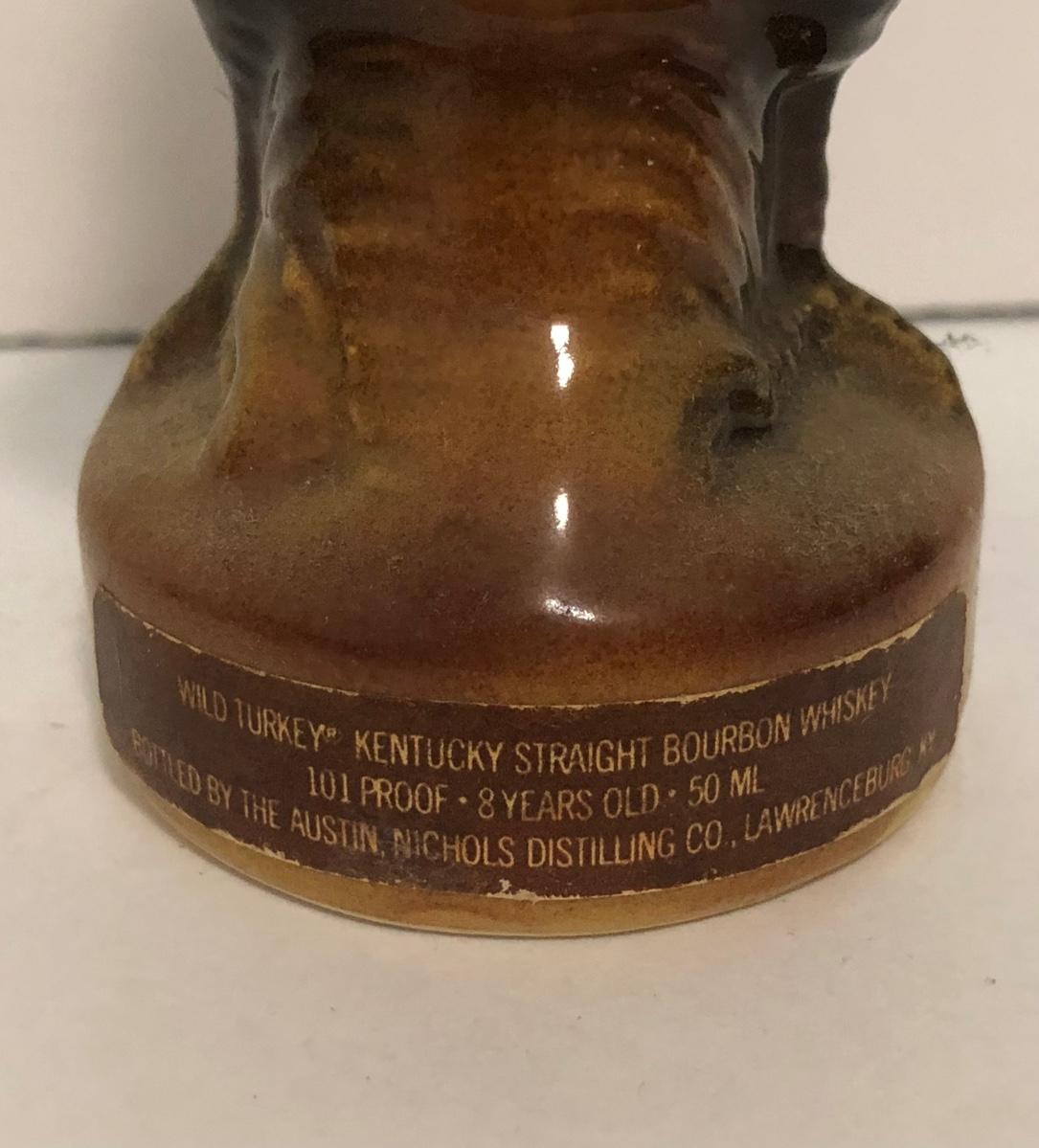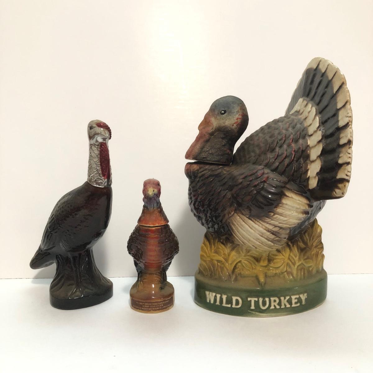 LOT 55U: Vintage Limited Edition Austin Nichols Wild Turkey Ceramic Decanter No. 6 & Mini Decanter No 1 w/ Avon Wild Turkey Wild Country After Shave Bottle