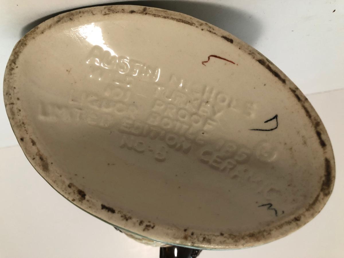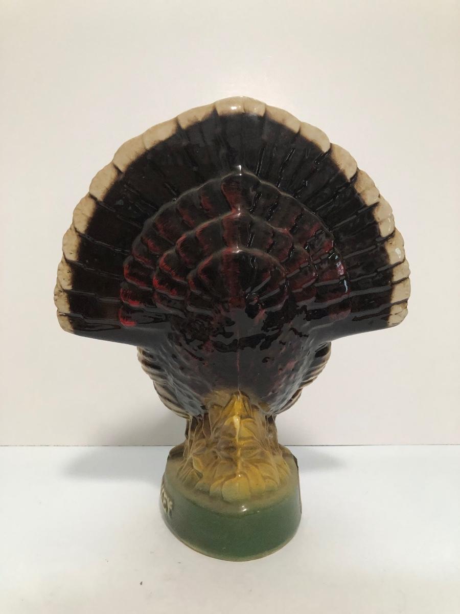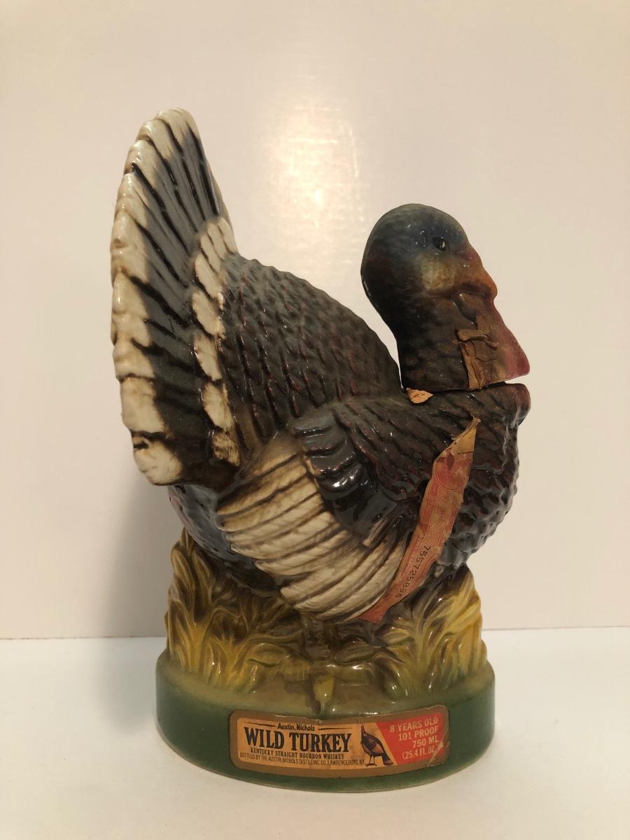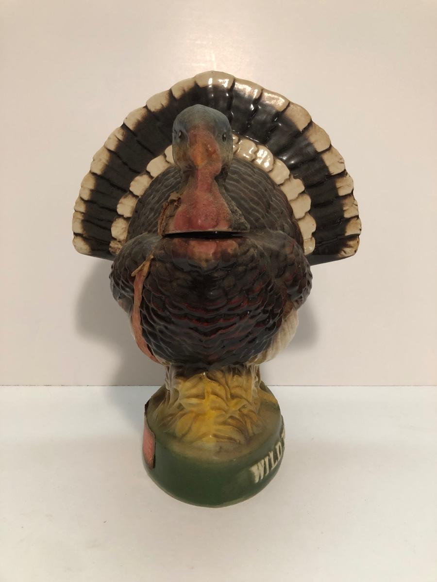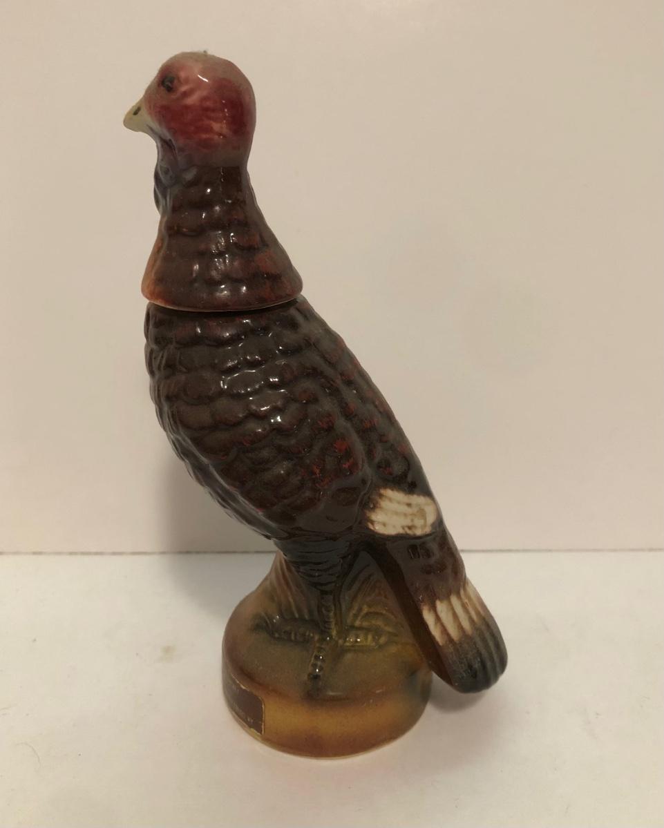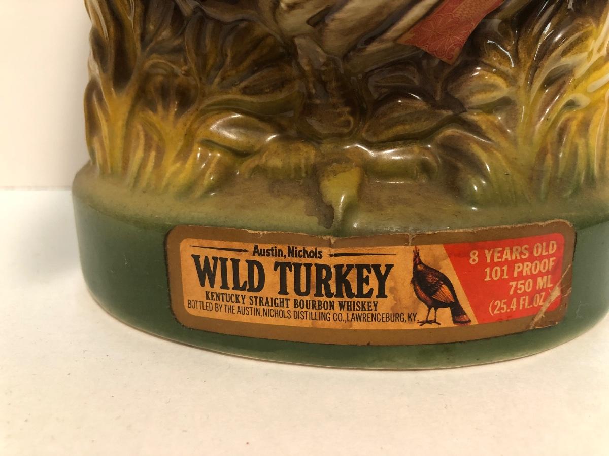 LOT 55U: Vintage Limited Edition Austin Nichols Wild Turkey Ceramic Decanter No. 6 & Mini Decanter No 1 w/ Avon Wild Turkey Wild Country After Shave Bottle