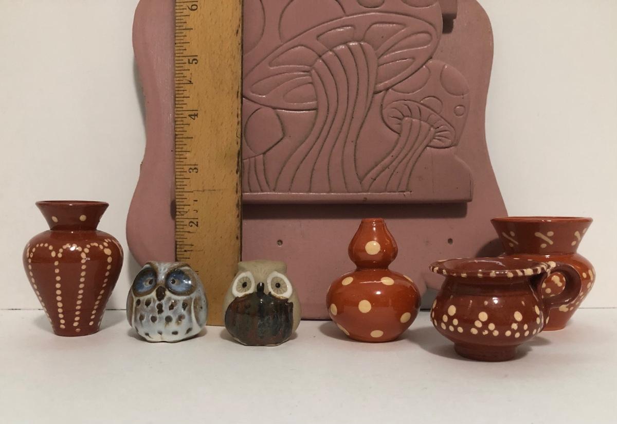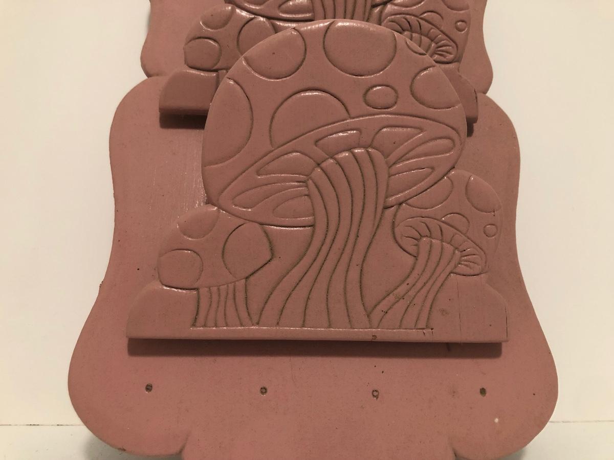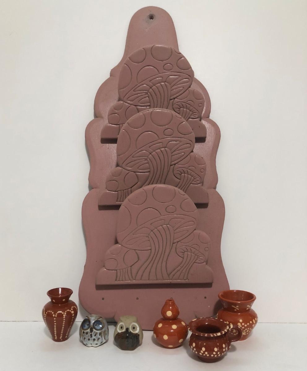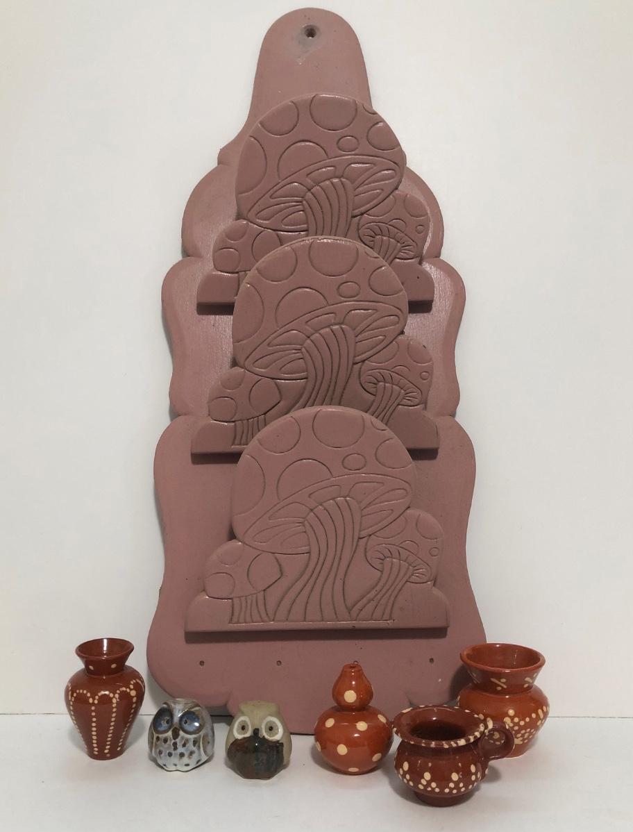 LOT 56U: Vintage Pink Mushroom Shelf w/ Miniature Pottery