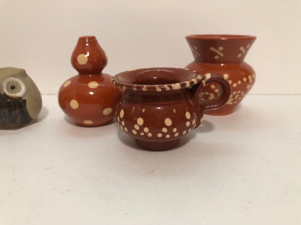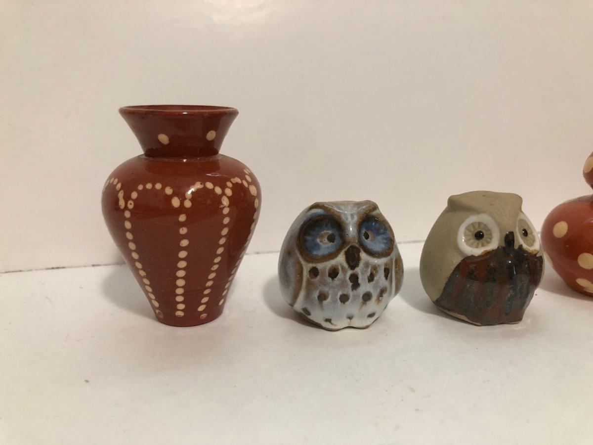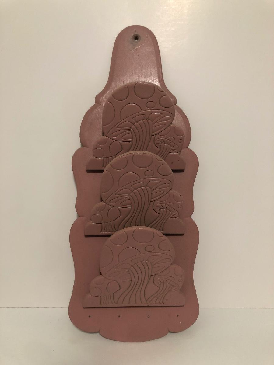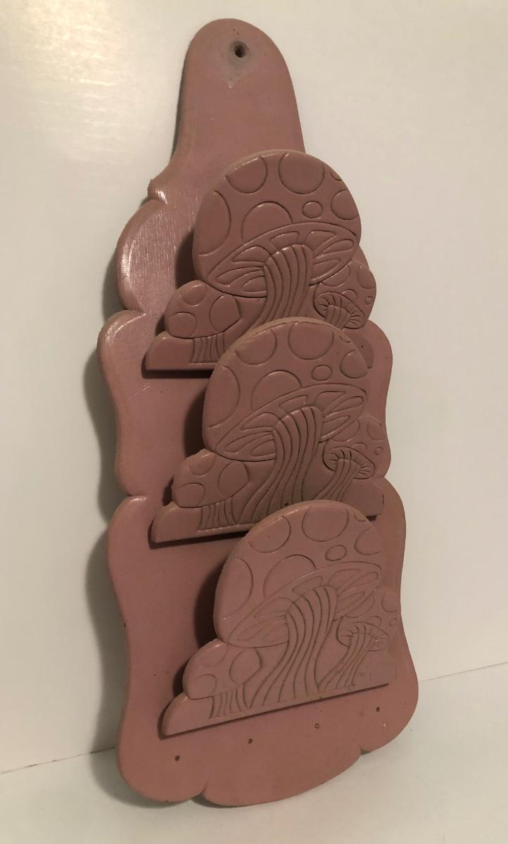 LOT 56U: Vintage Pink Mushroom Shelf w/ Miniature Pottery