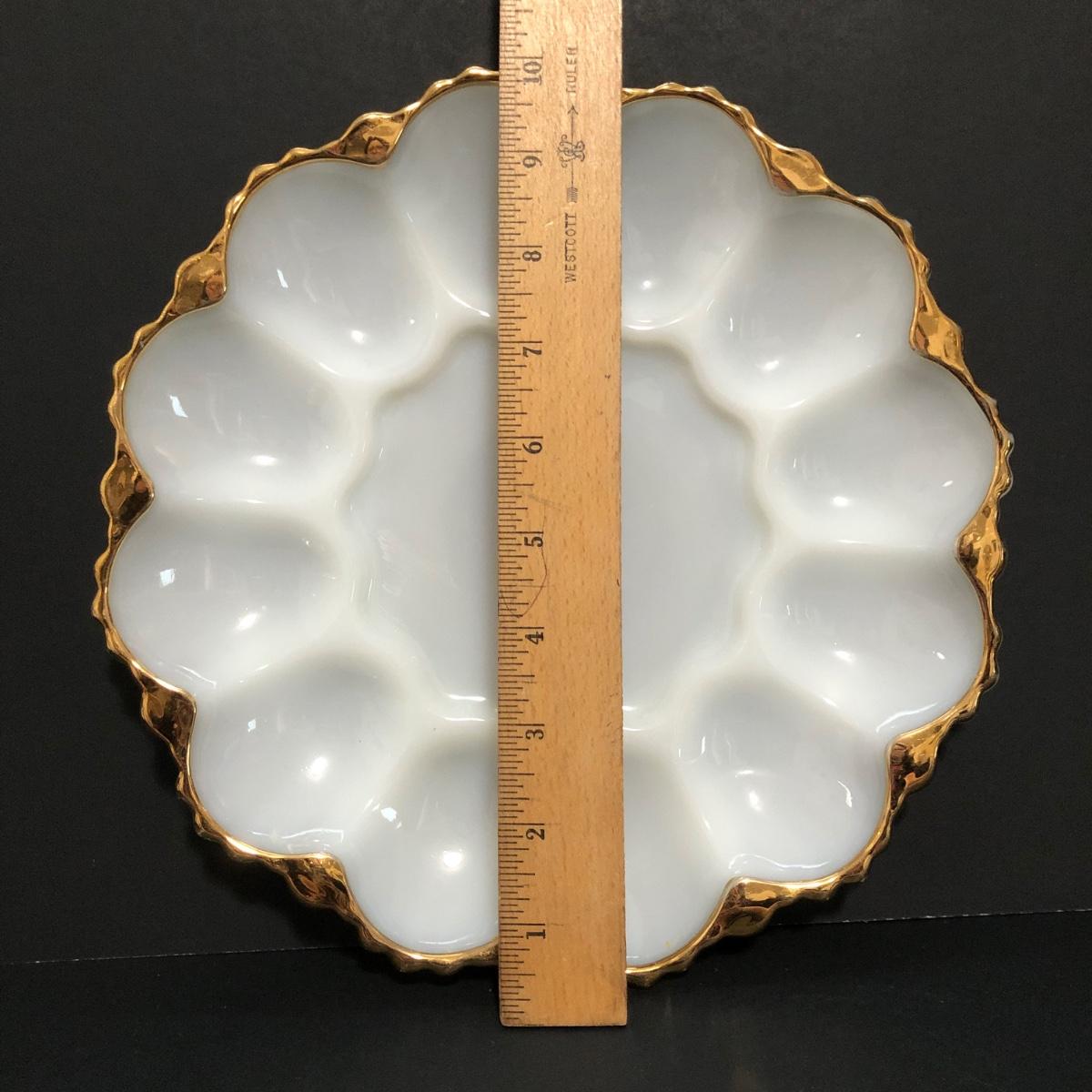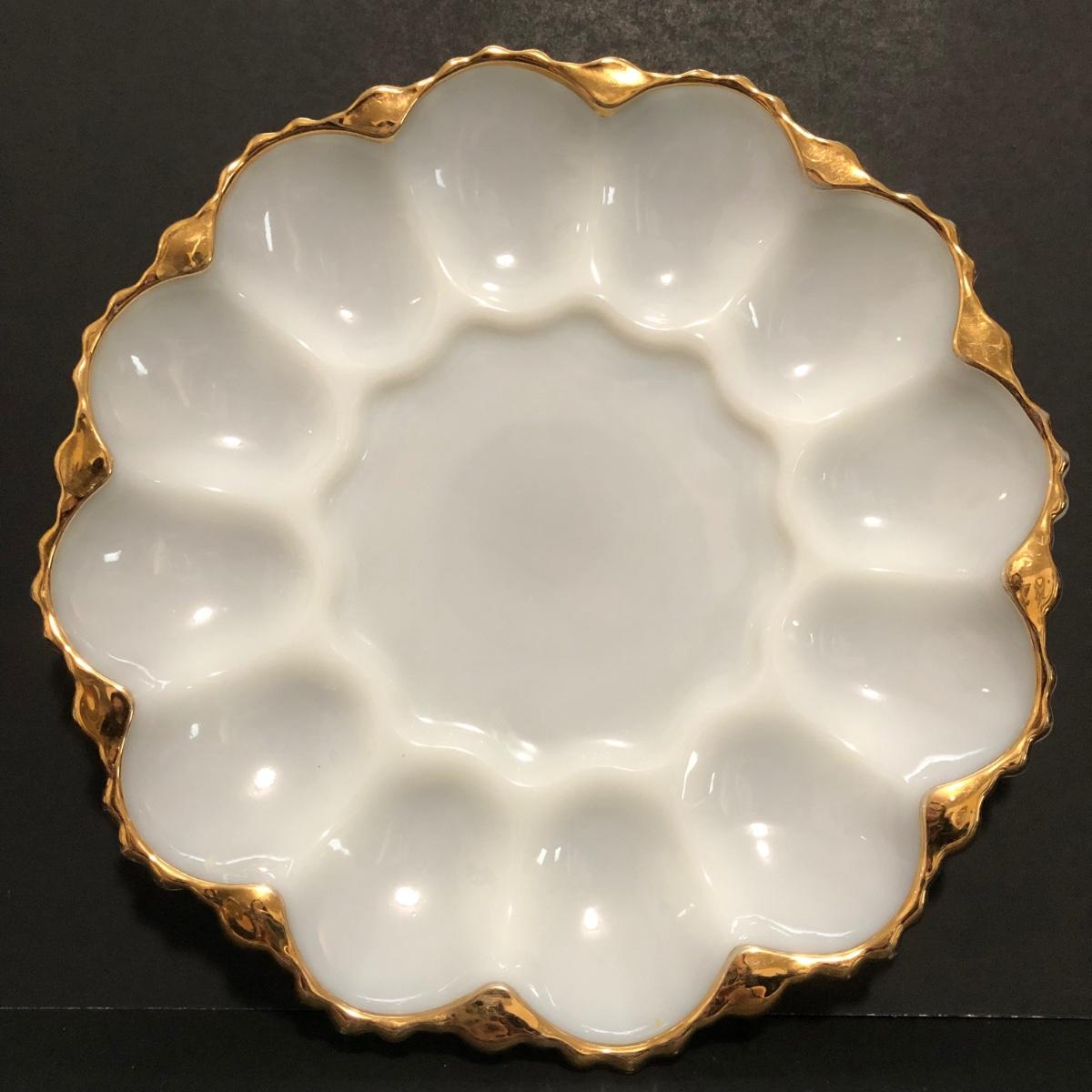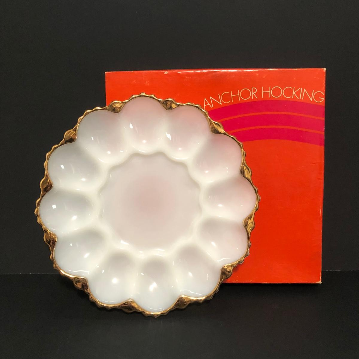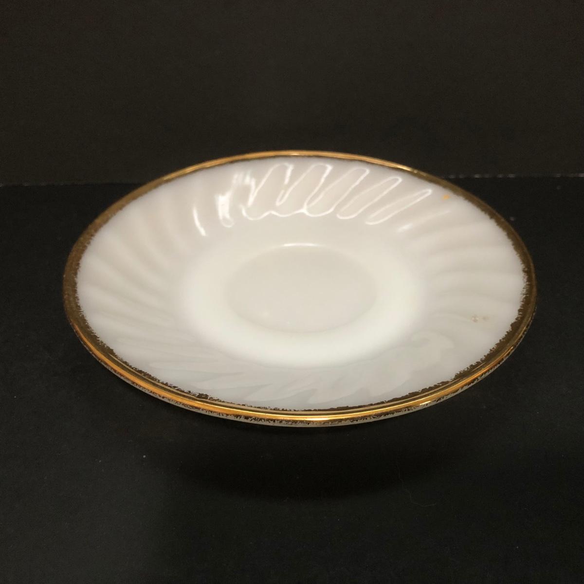 LOT 63U: Vintage Milk Glass - Fireking Teacups & Saucers w/ Anchor Hocking Egg Plate