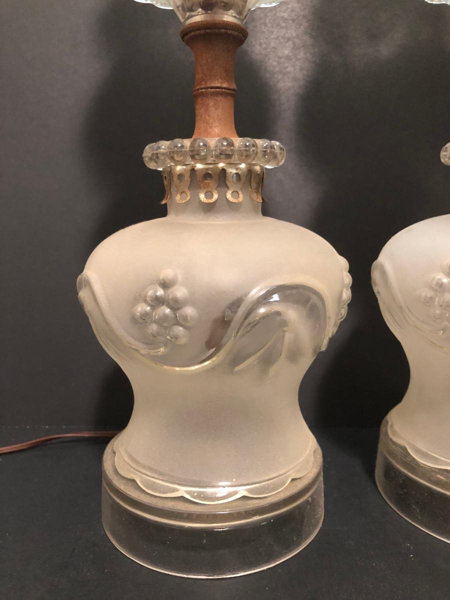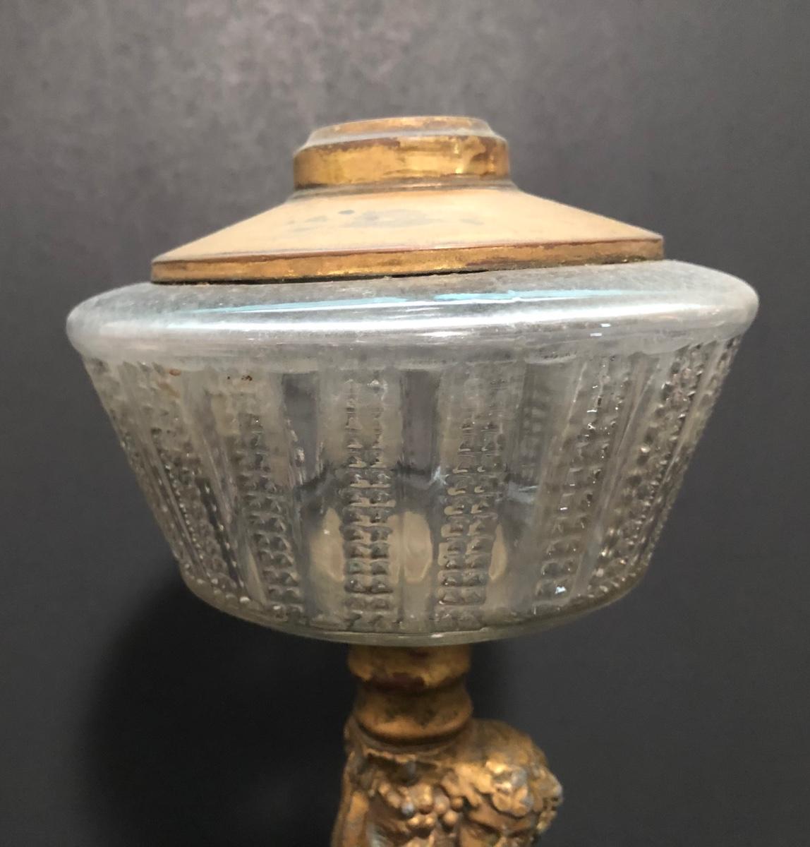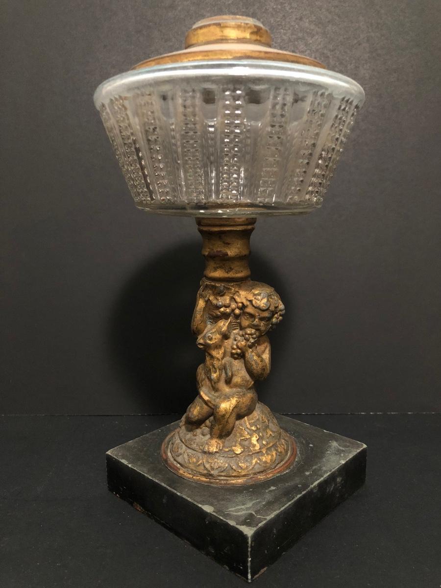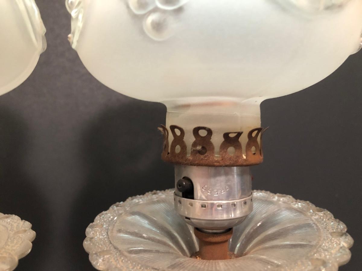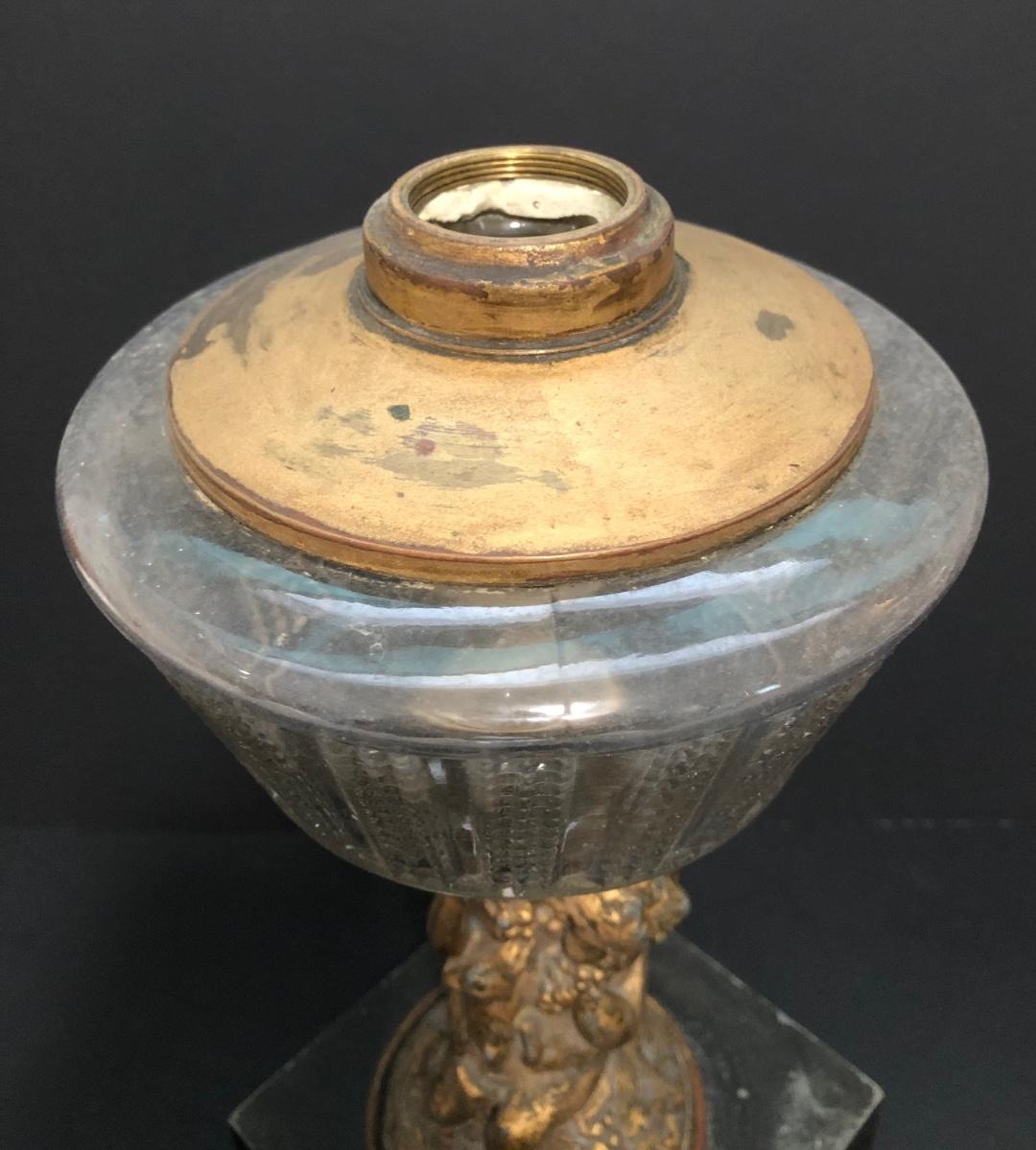 LOT 64U: Antique / Vintage Lamps - Electric Frosted Glass Hurricane Lamps & Composite Grape Harvest Stem Oil Lamp Base