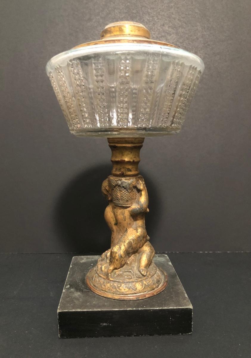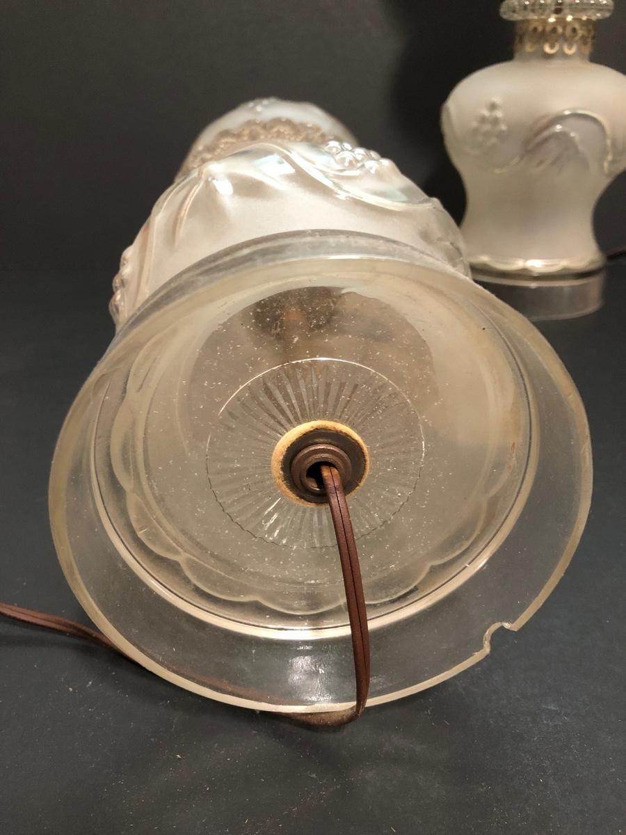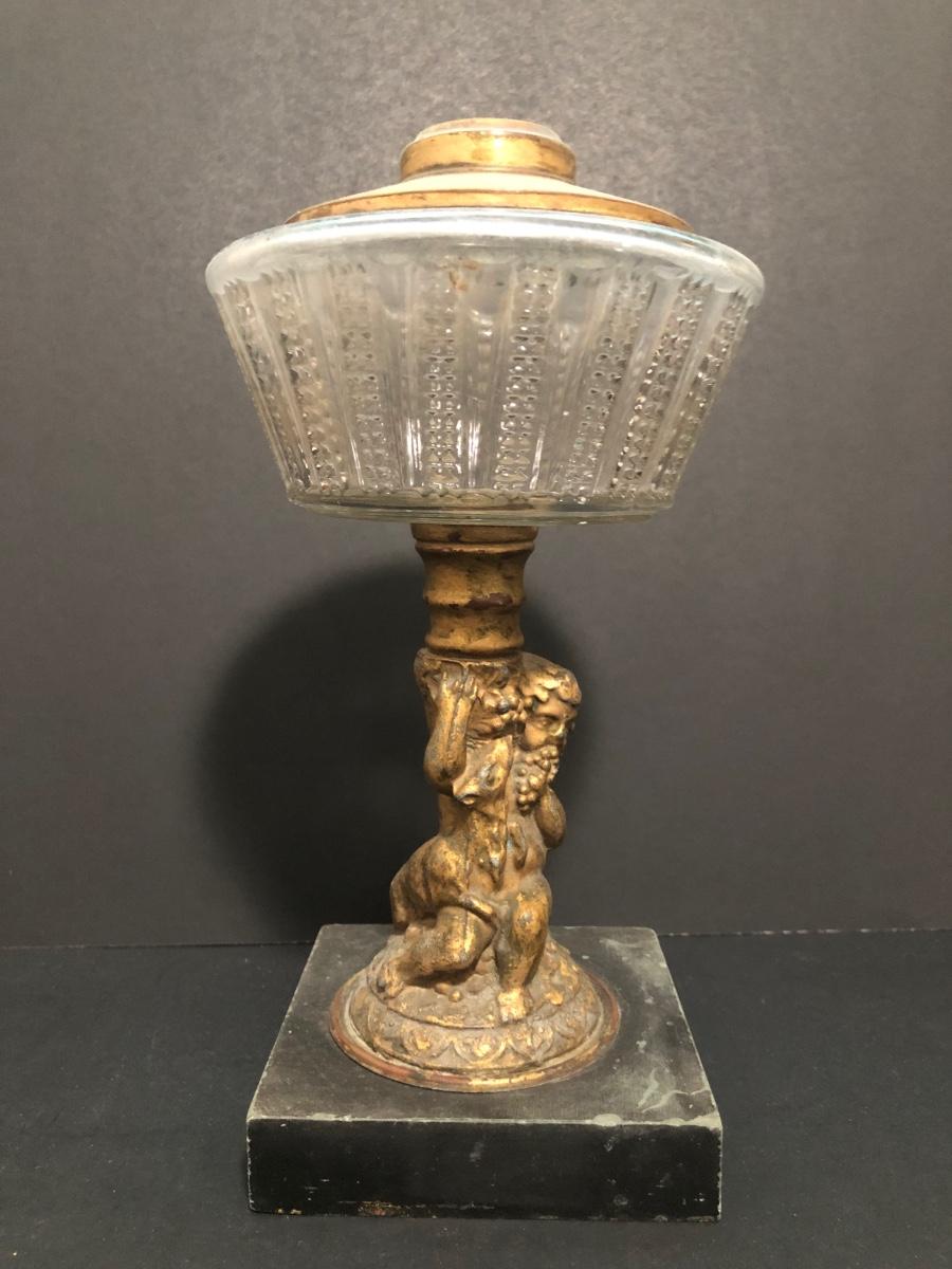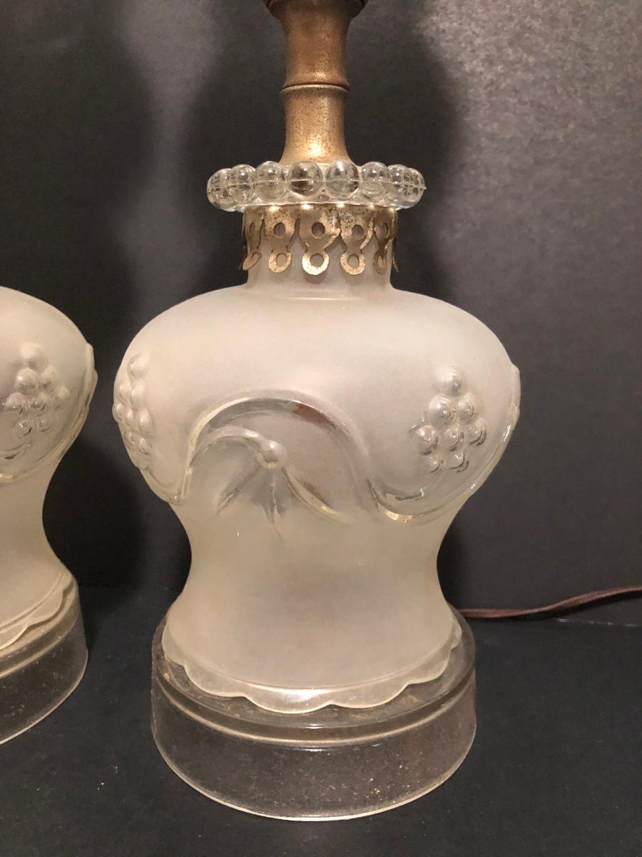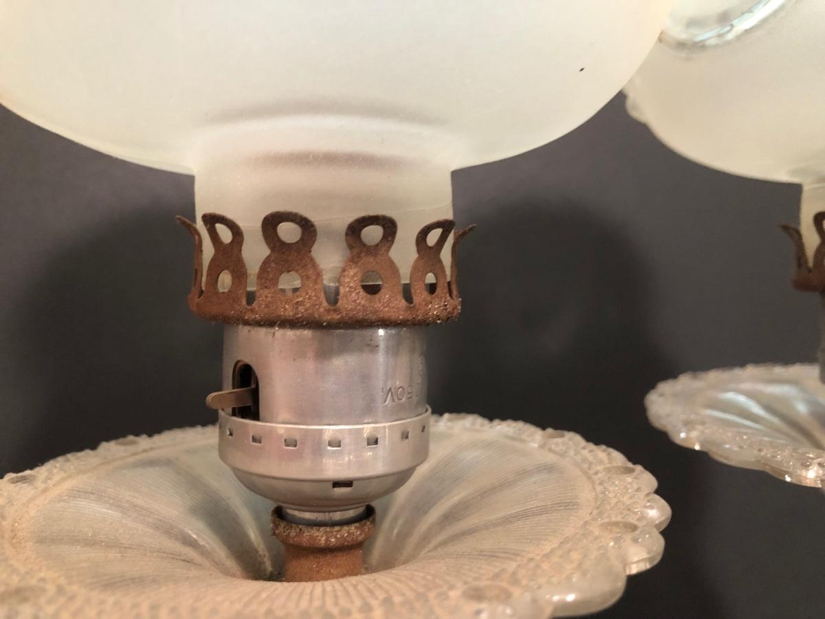 LOT 64U: Antique / Vintage Lamps - Electric Frosted Glass Hurricane Lamps & Composite Grape Harvest Stem Oil Lamp Base