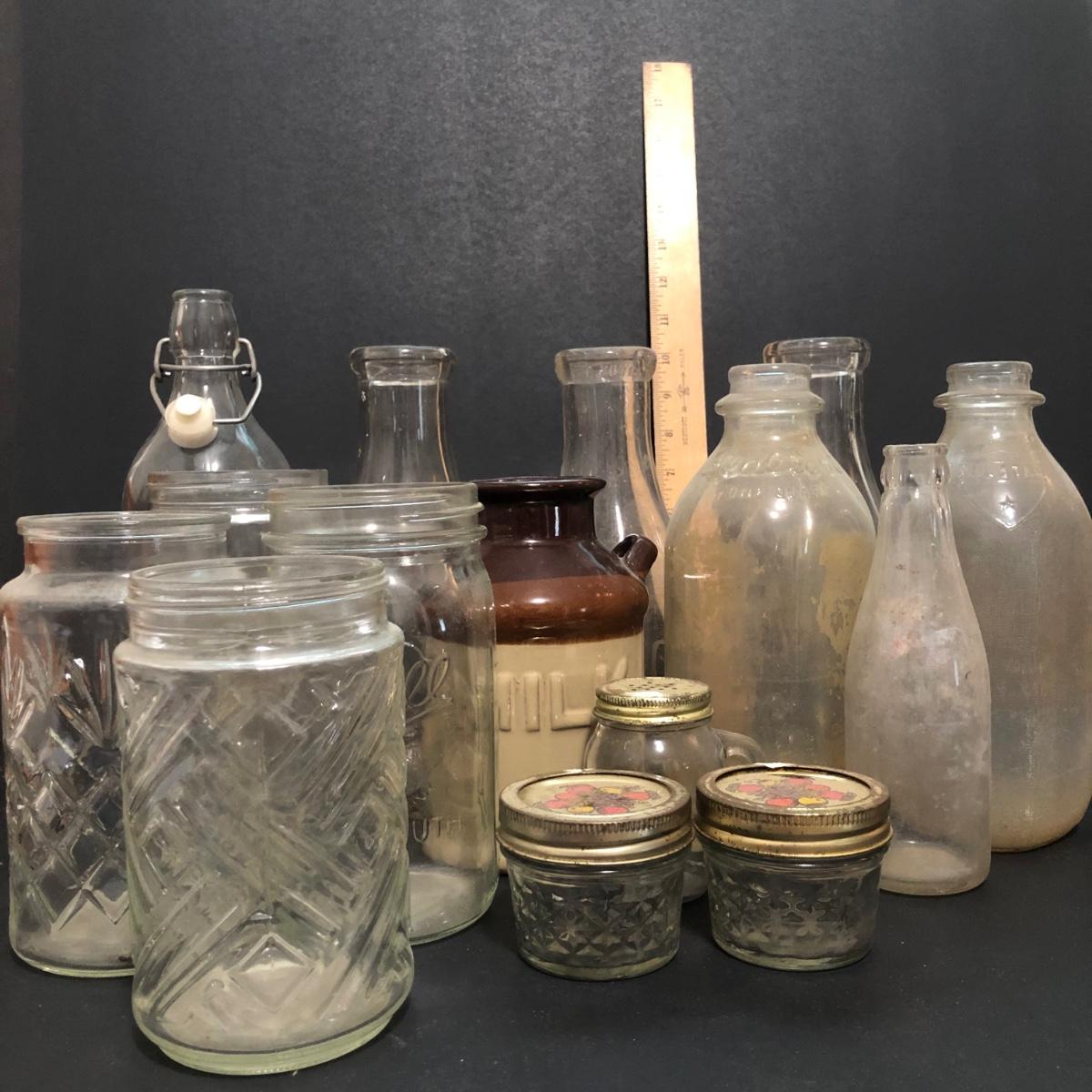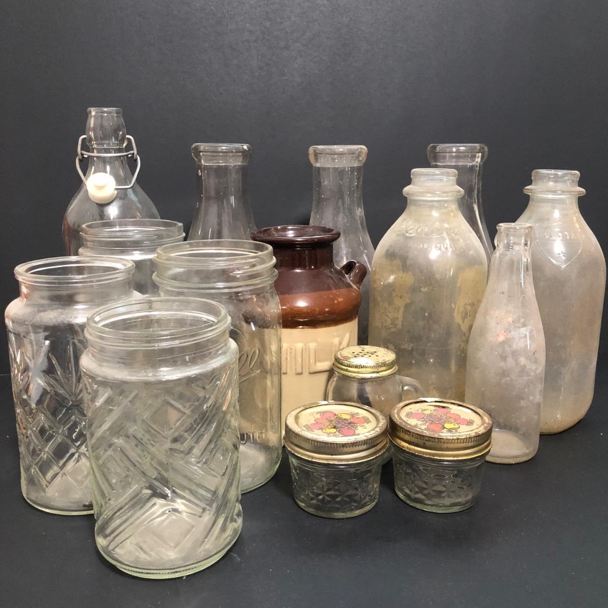LOT 65U: Vintage Milk Bottles & Glass Canning Jars