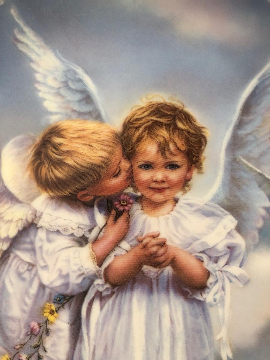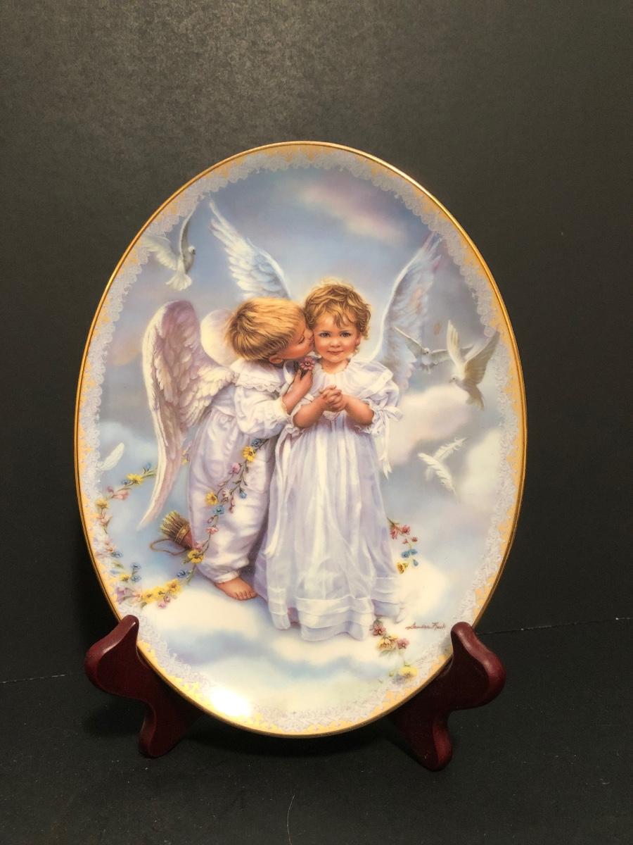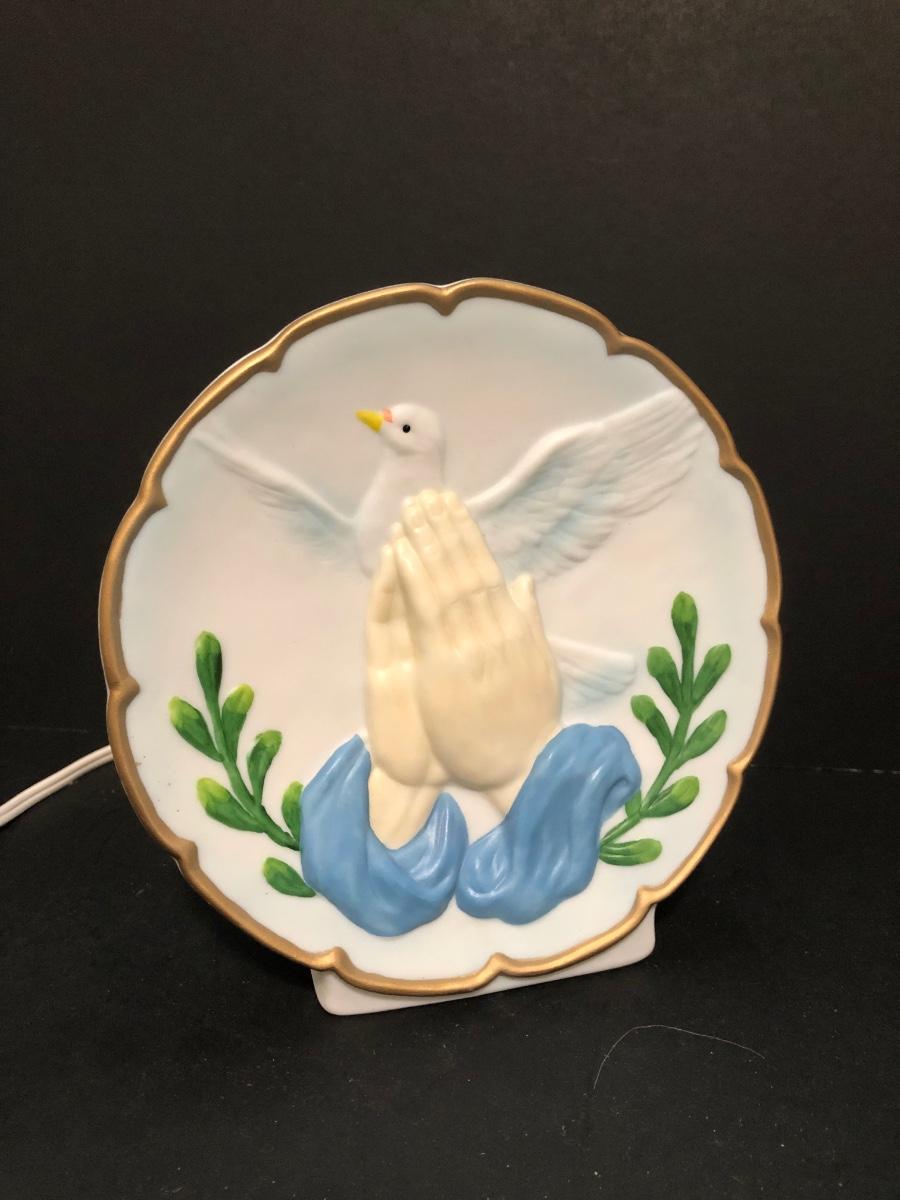 LOT 67U: Religious Decor & Books - Bradford Exchange Sandra Kuck's On Angels Wings #1 Plate, Praying Hands Dove Lamp, Angel Bells & More