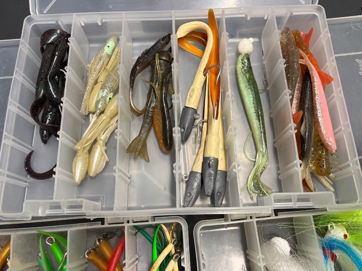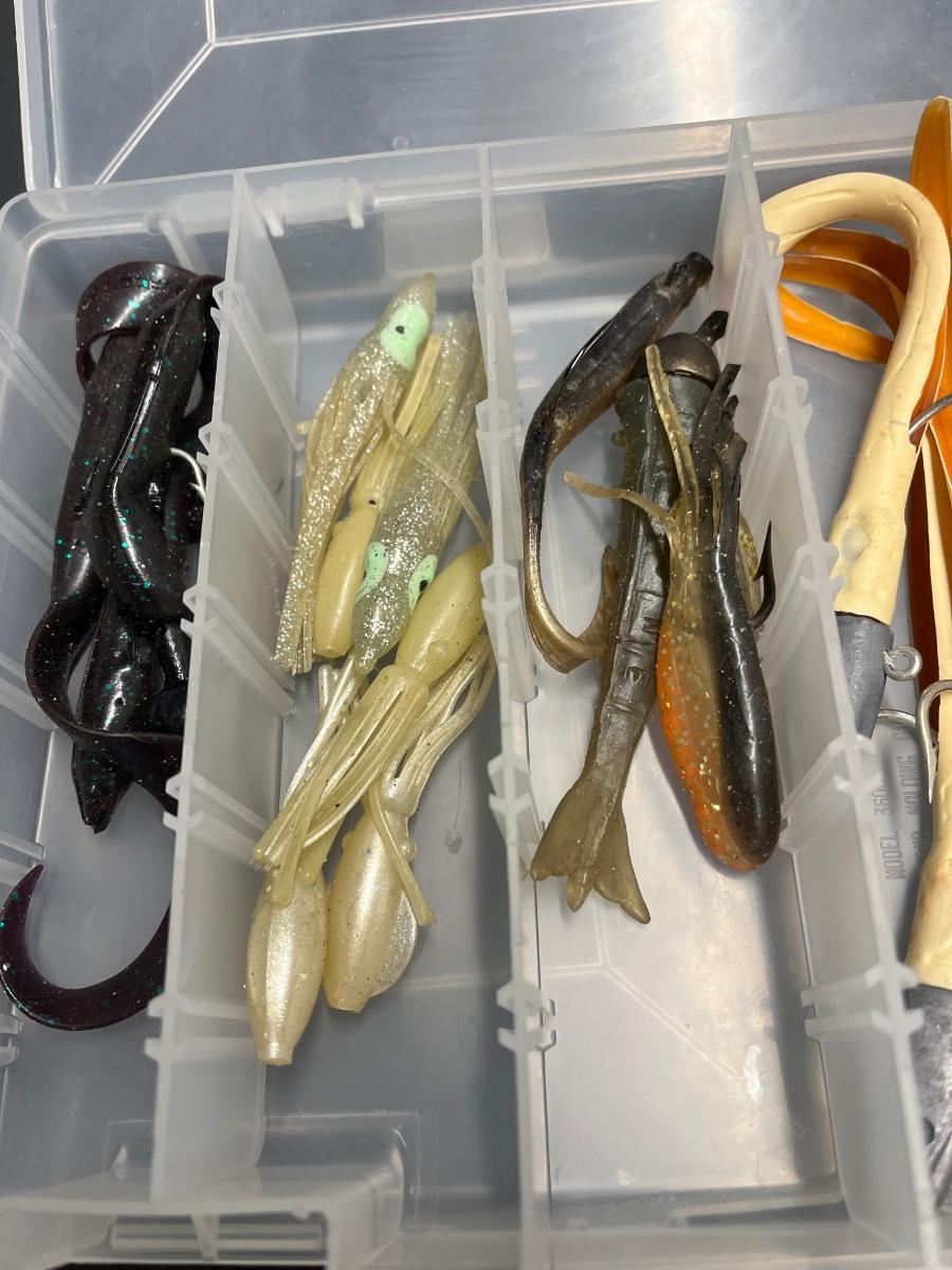 LOT 121B: Assorted Fishing Lures - Rigged Soft Baits, Bucktails and More