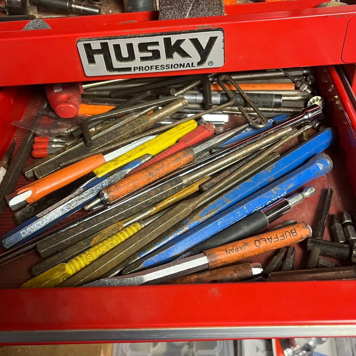 LOT 175B: Husky Tool Chest Full of Tools - Drill Bits, Air Tools and More