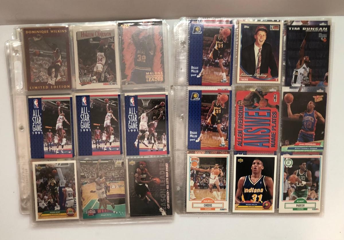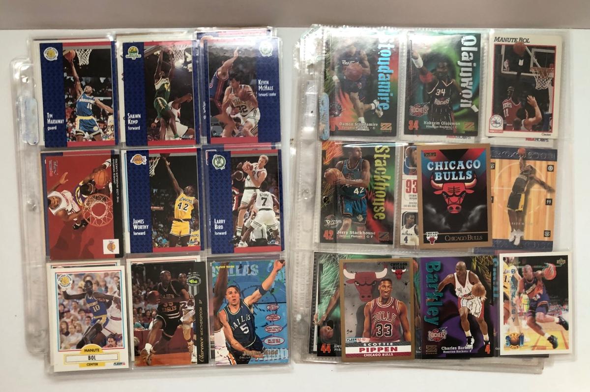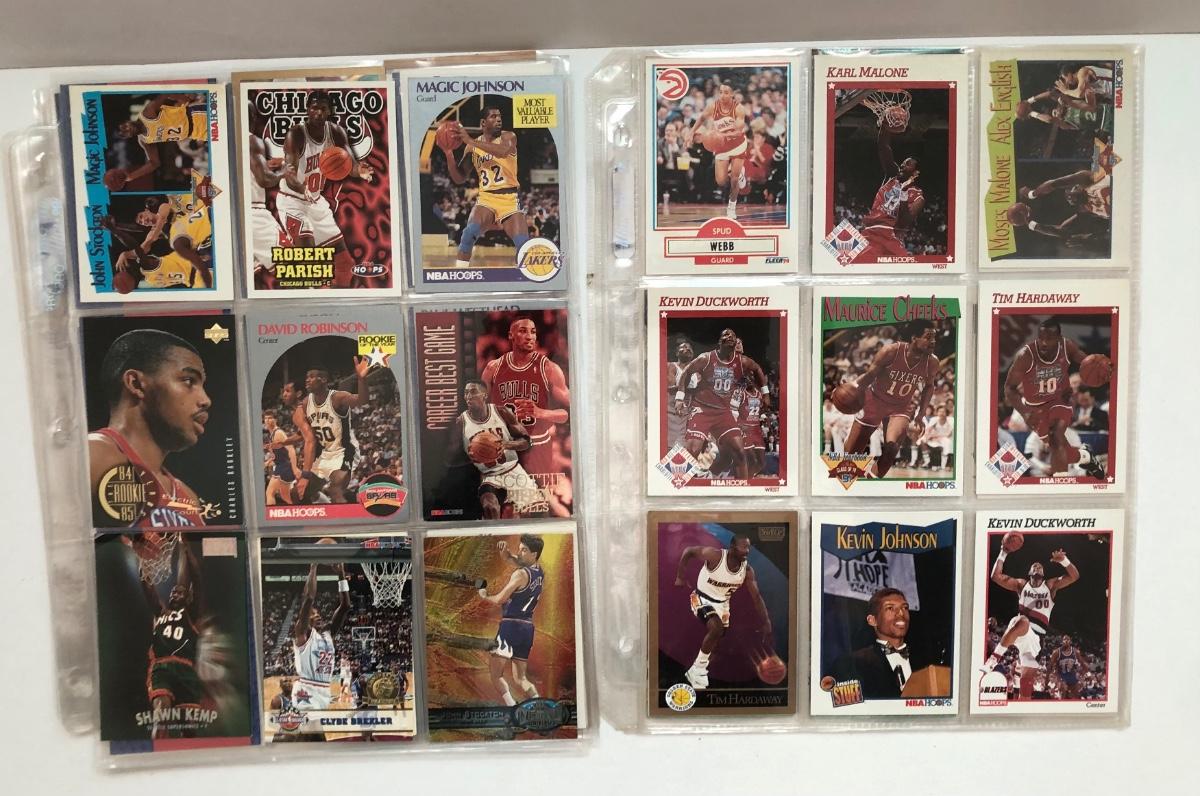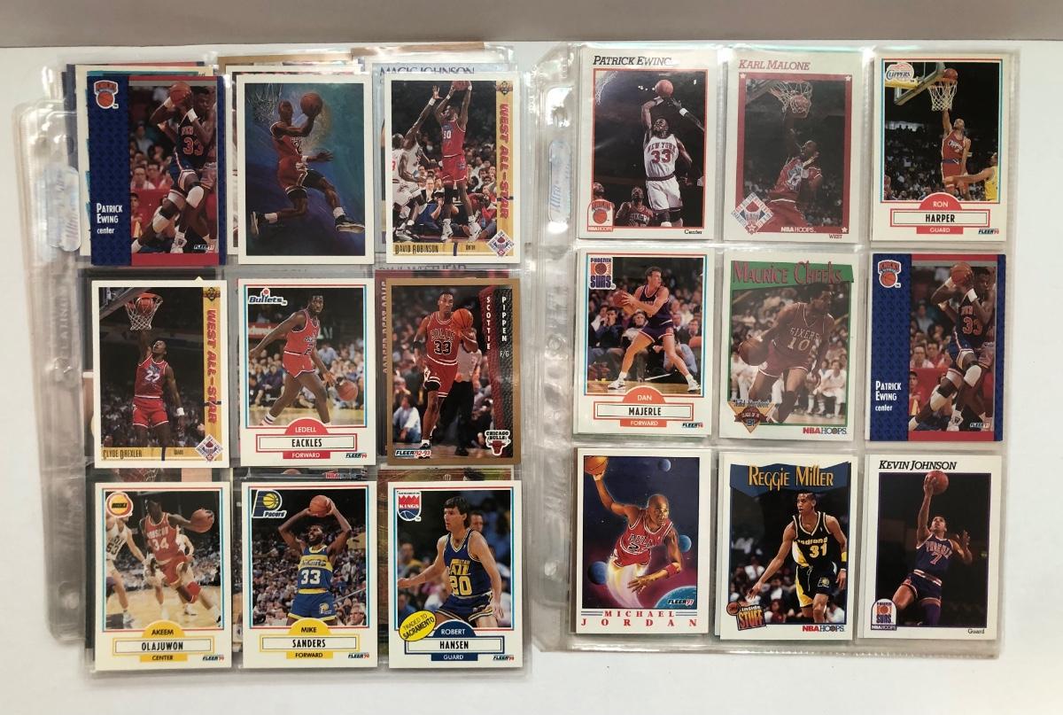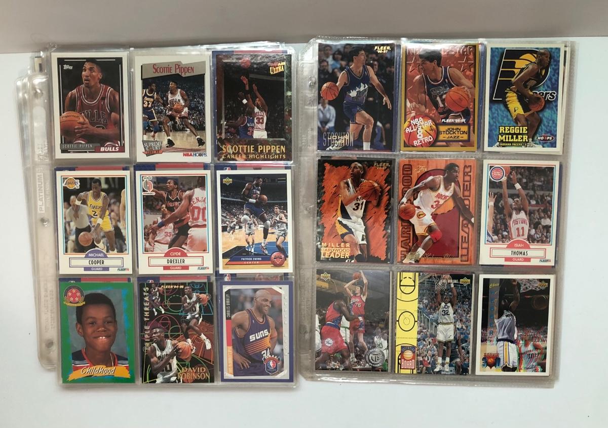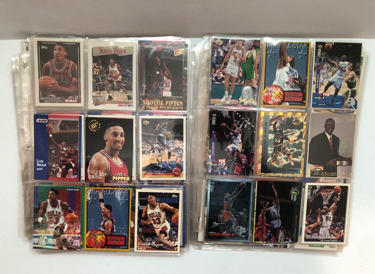 LOT 203U: Sheets of Basketball Trading Cards - Magic Johnson, Michael Jordan, Scottie Pippin, Dennis Rodman & More