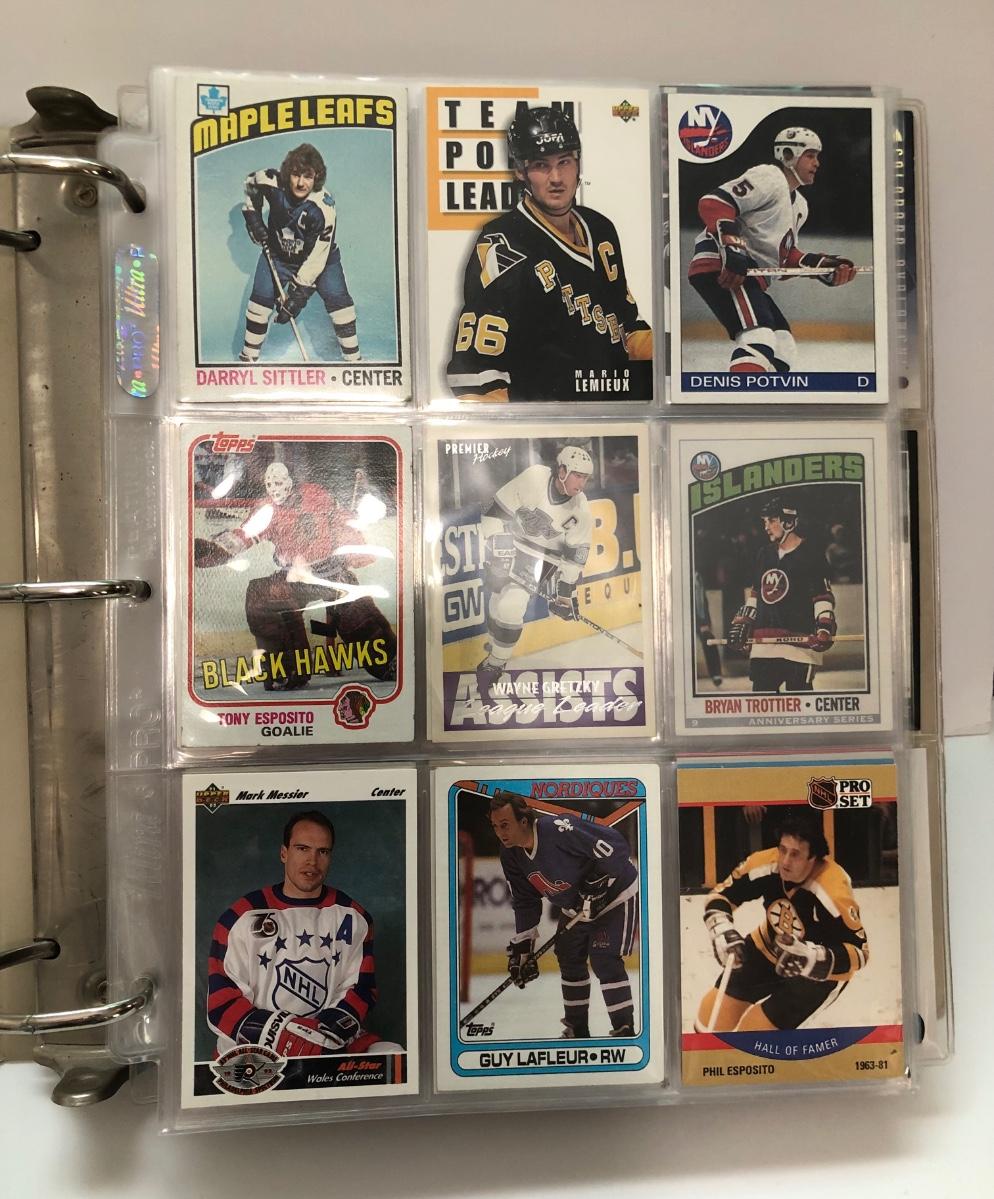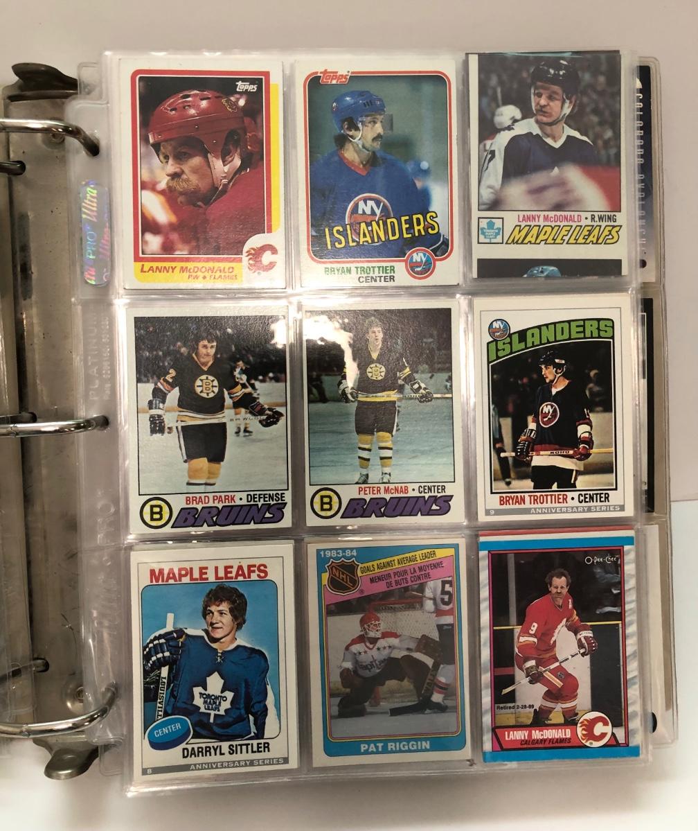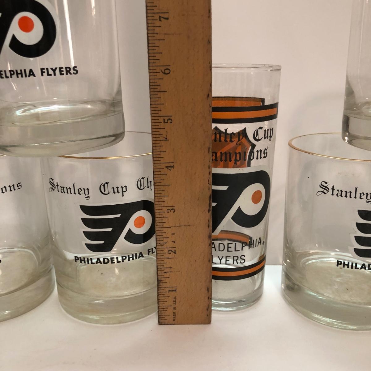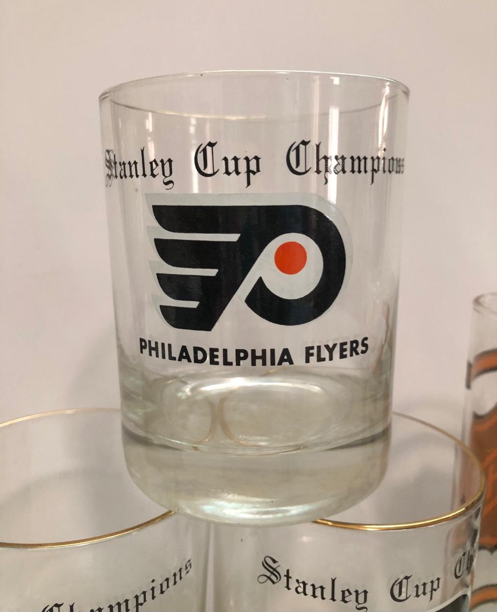 LOT 204U: Signed Philadelphia Flyer's Hockey Pucks (Tim Kerr & Ric MacLeish), Flyers Stanley Cup Glasses & Binder full of Hockey Trading Cards