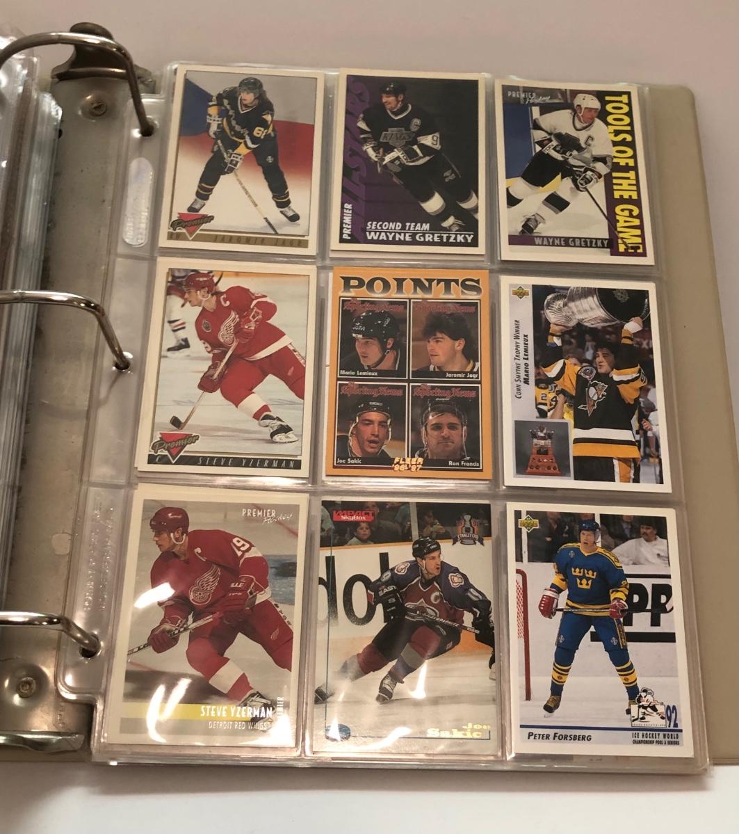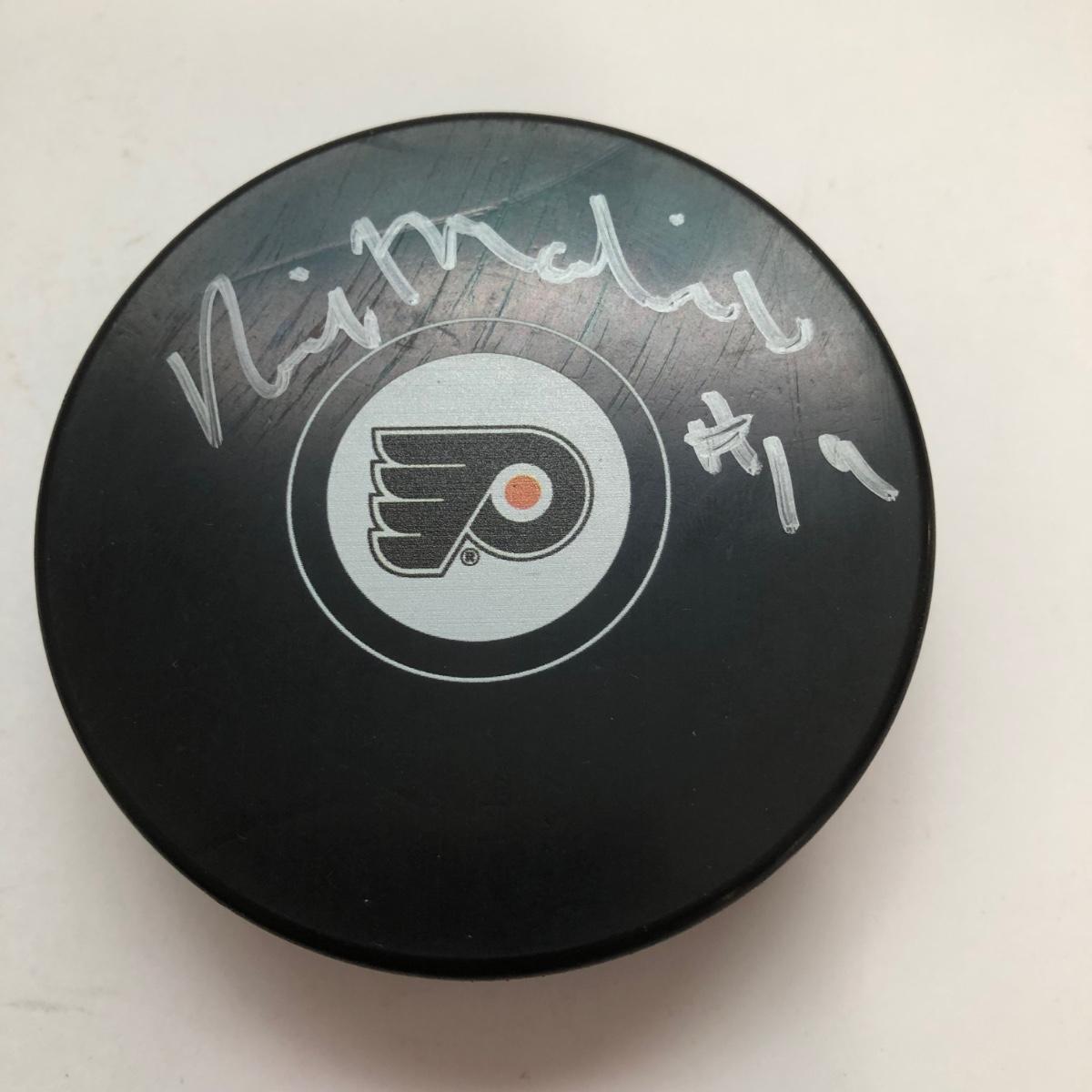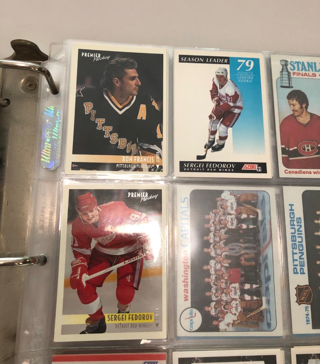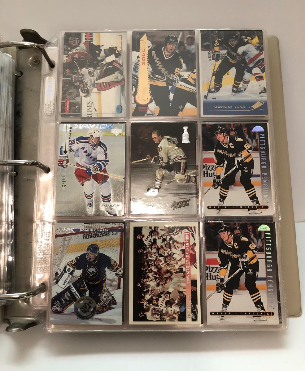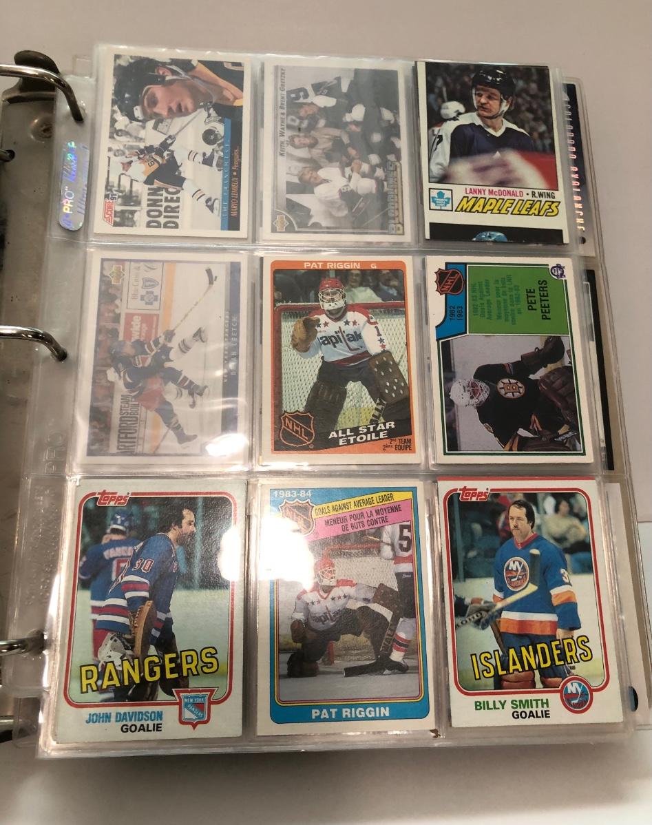 LOT 204U: Signed Philadelphia Flyer's Hockey Pucks (Tim Kerr & Ric MacLeish), Flyers Stanley Cup Glasses & Binder full of Hockey Trading Cards