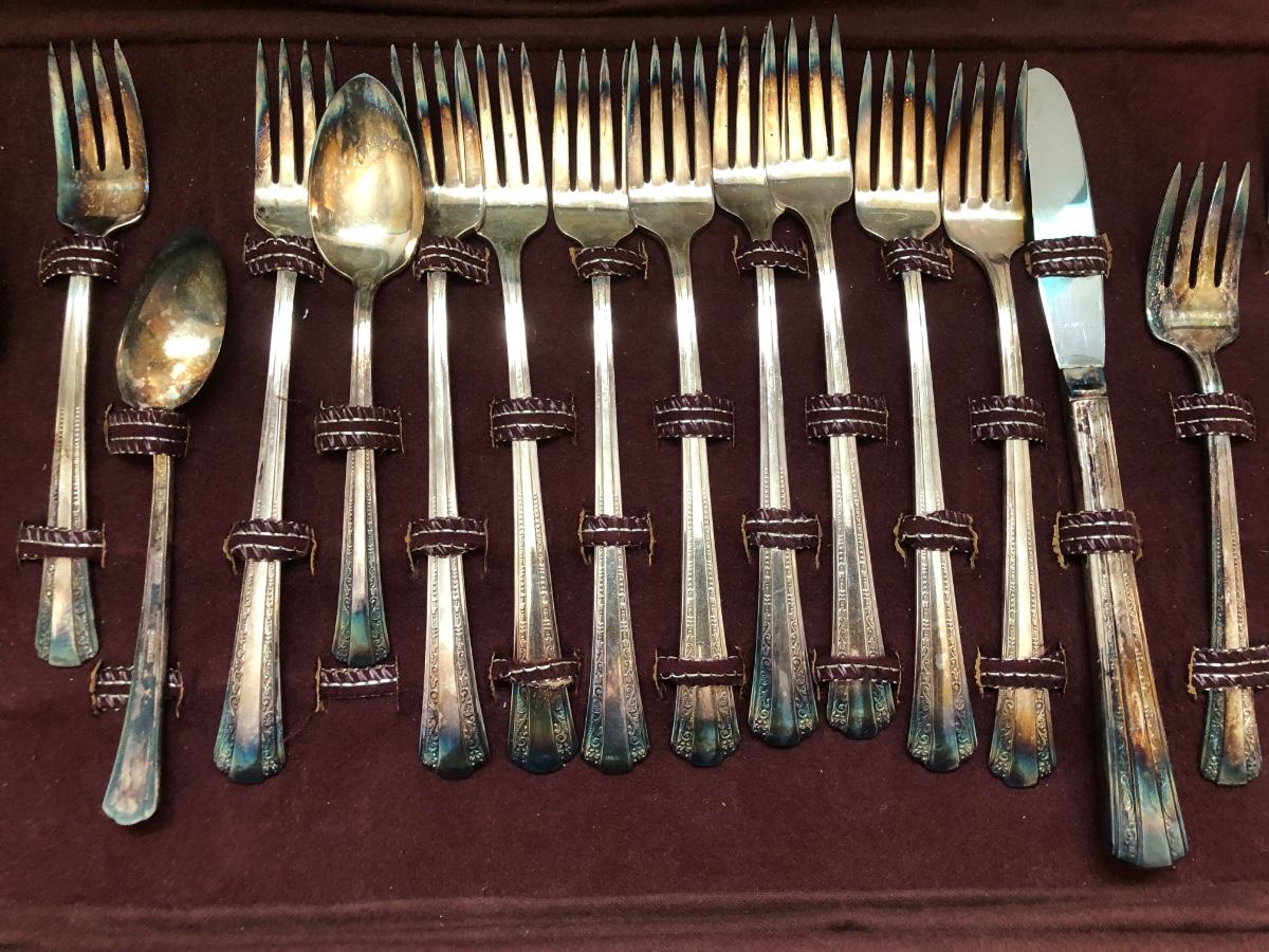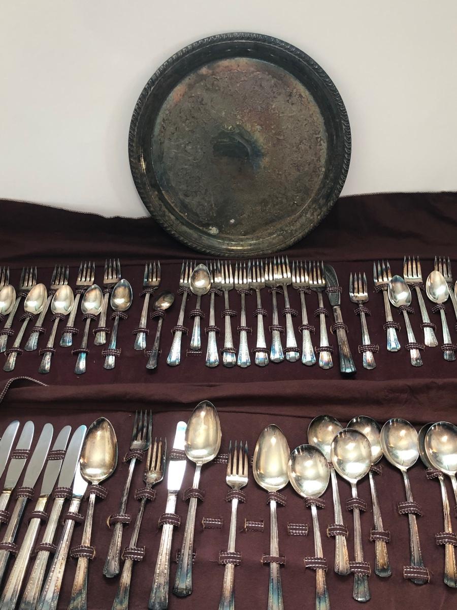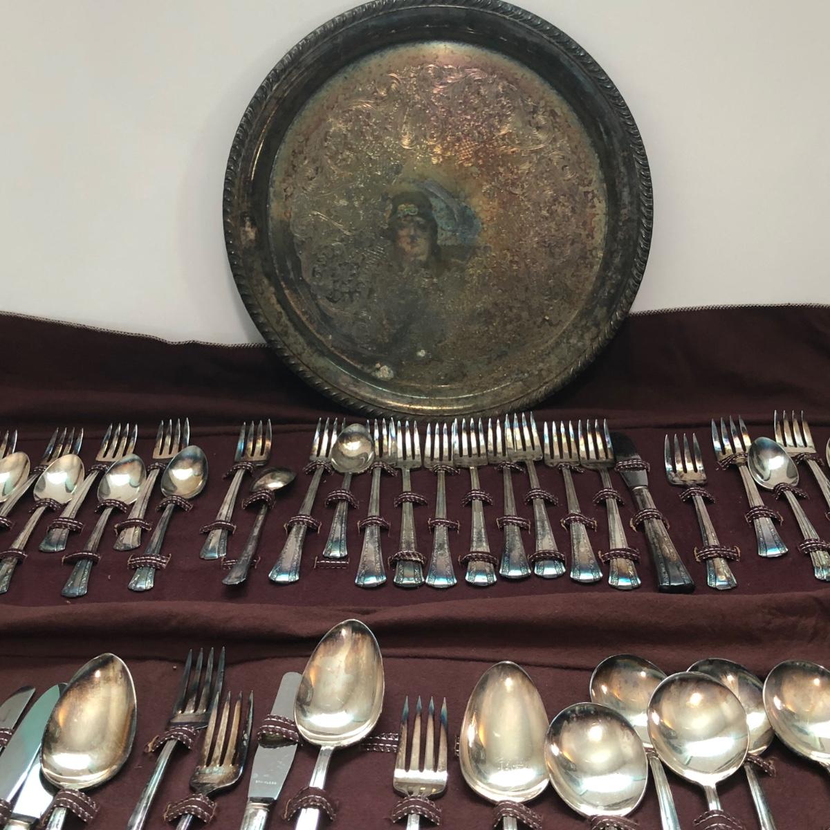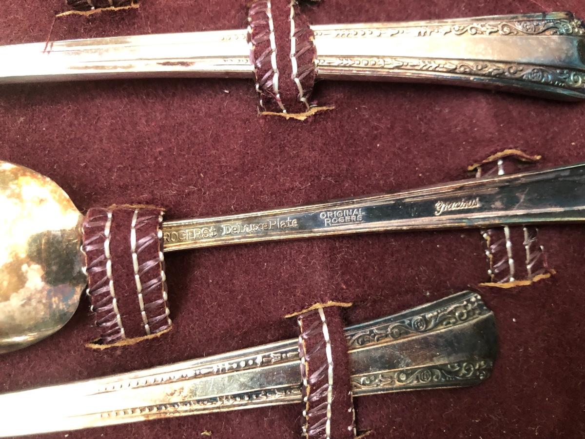 LOT 209U: Vintage Rogers Deluxe Plate Gracious Flatware Set in Protective Cases w/ Silver Plated Tray