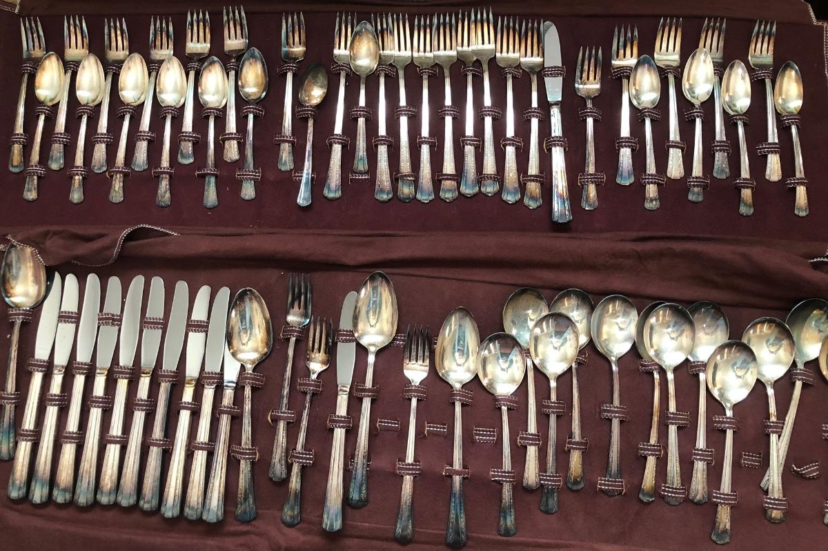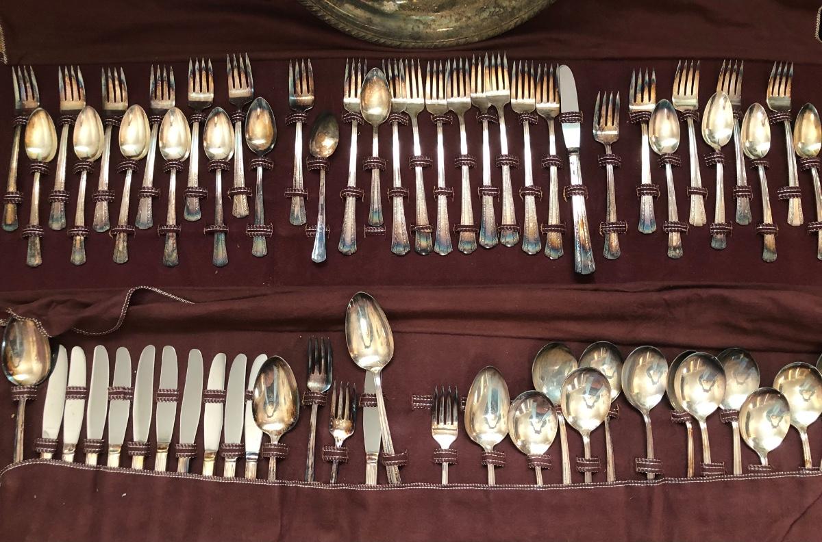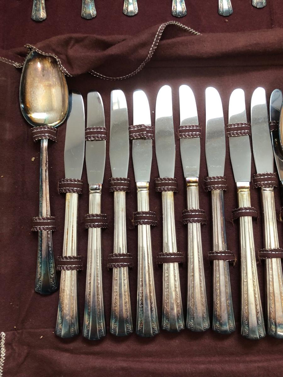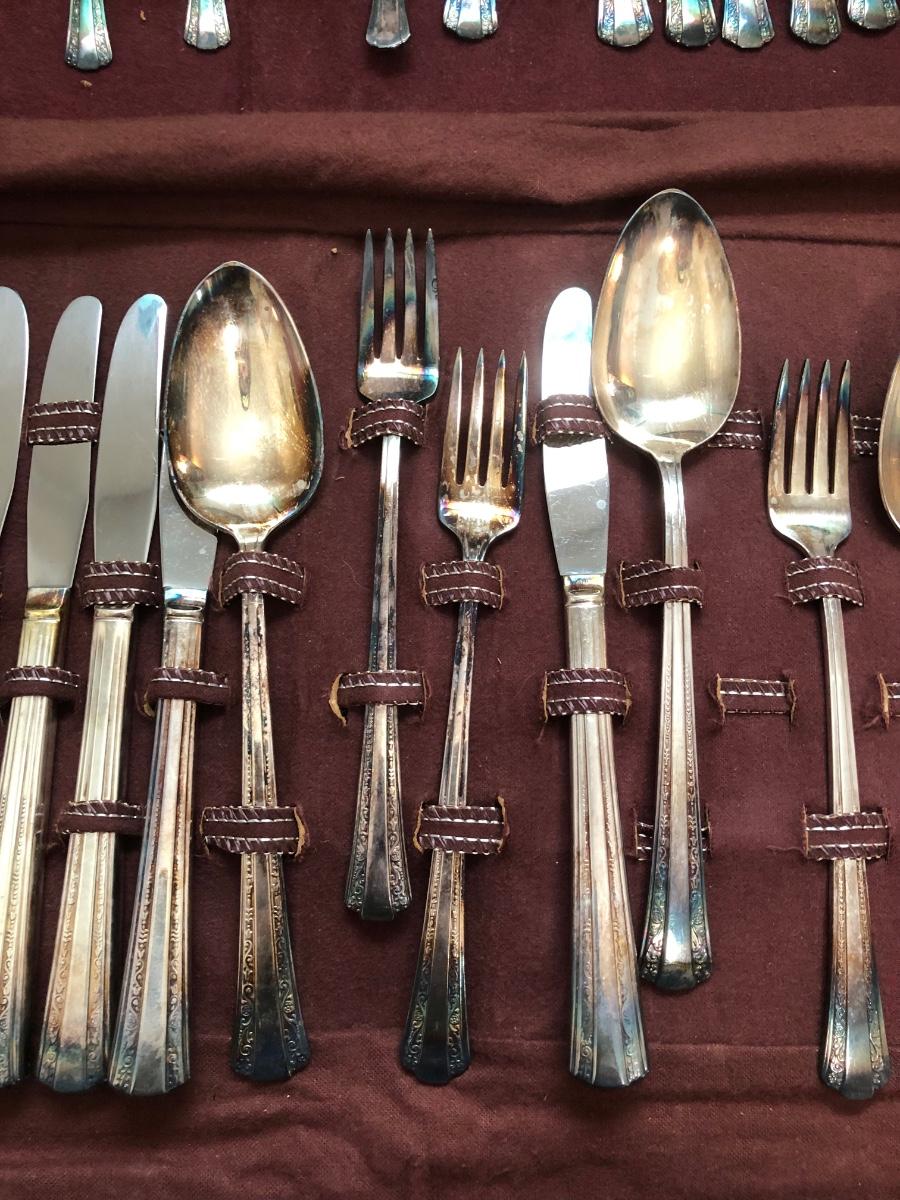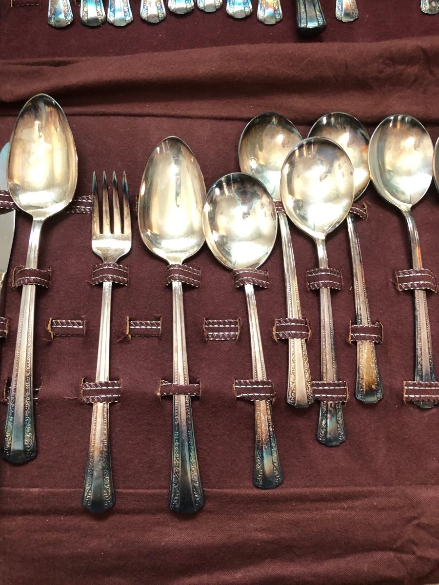 LOT 209U: Vintage Rogers Deluxe Plate Gracious Flatware Set in Protective Cases w/ Silver Plated Tray