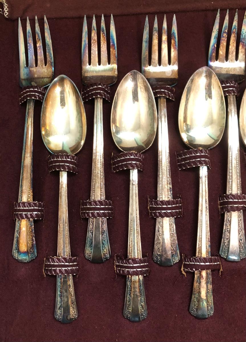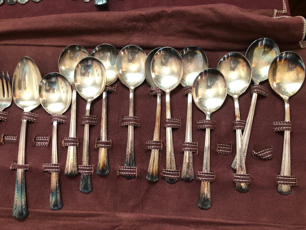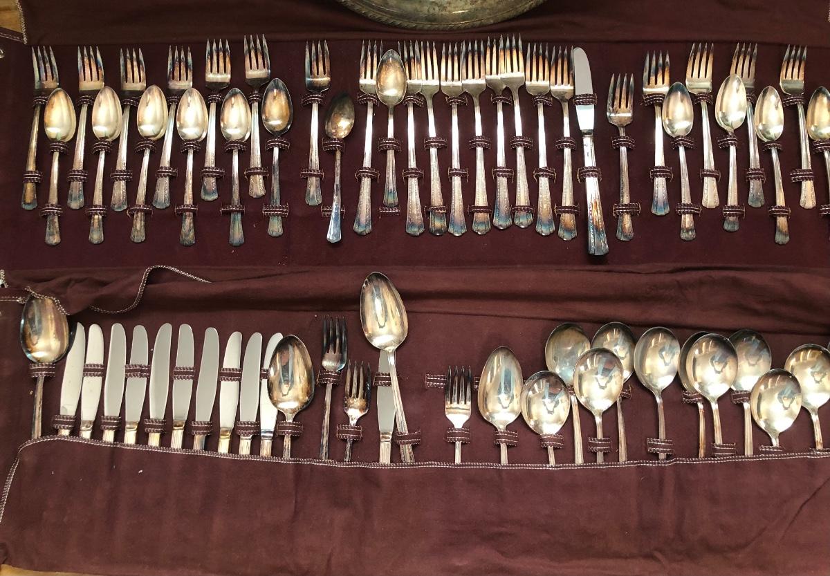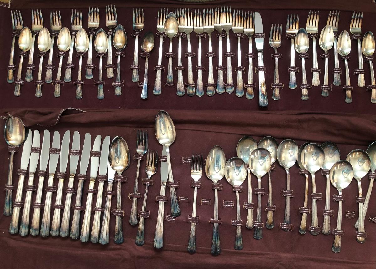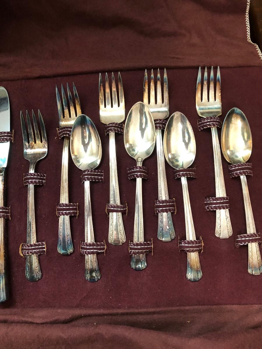 LOT 209U: Vintage Rogers Deluxe Plate Gracious Flatware Set in Protective Cases w/ Silver Plated Tray