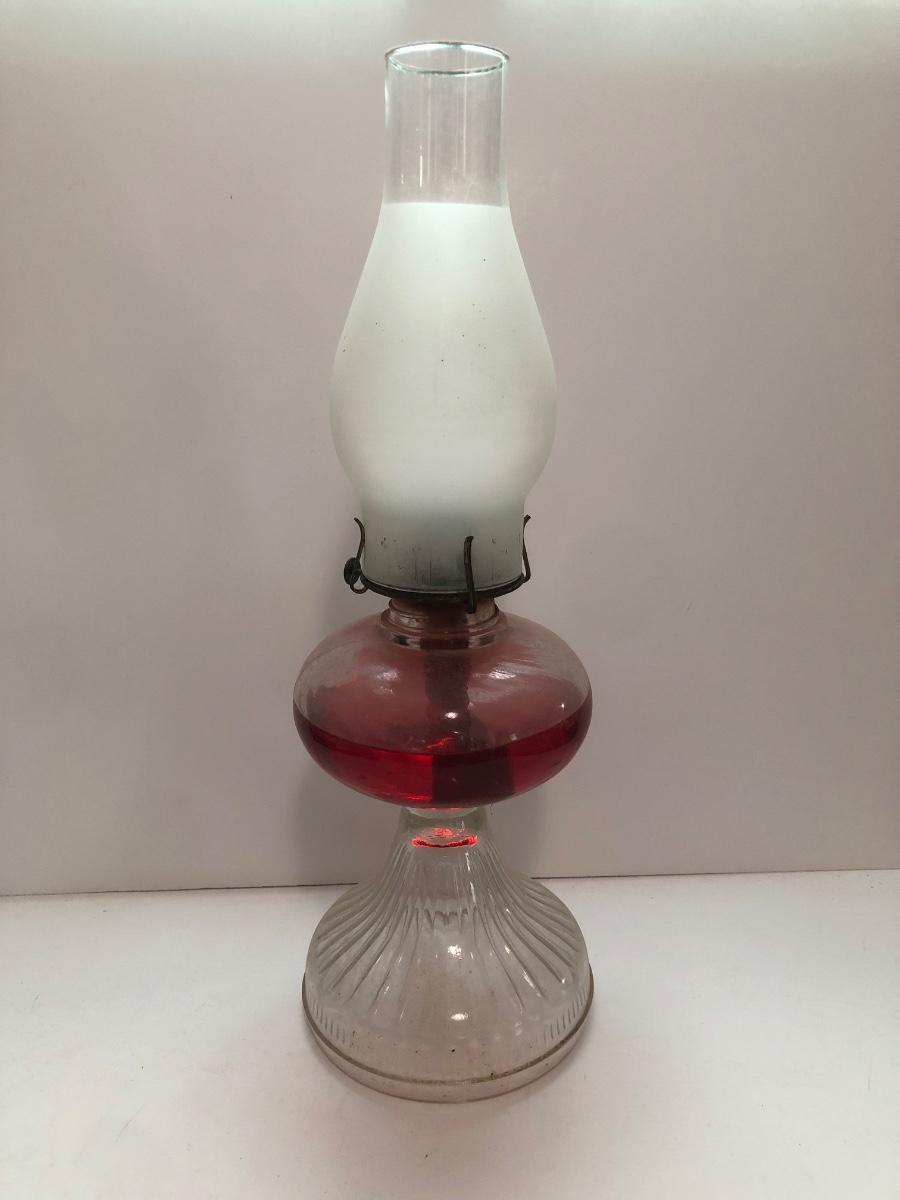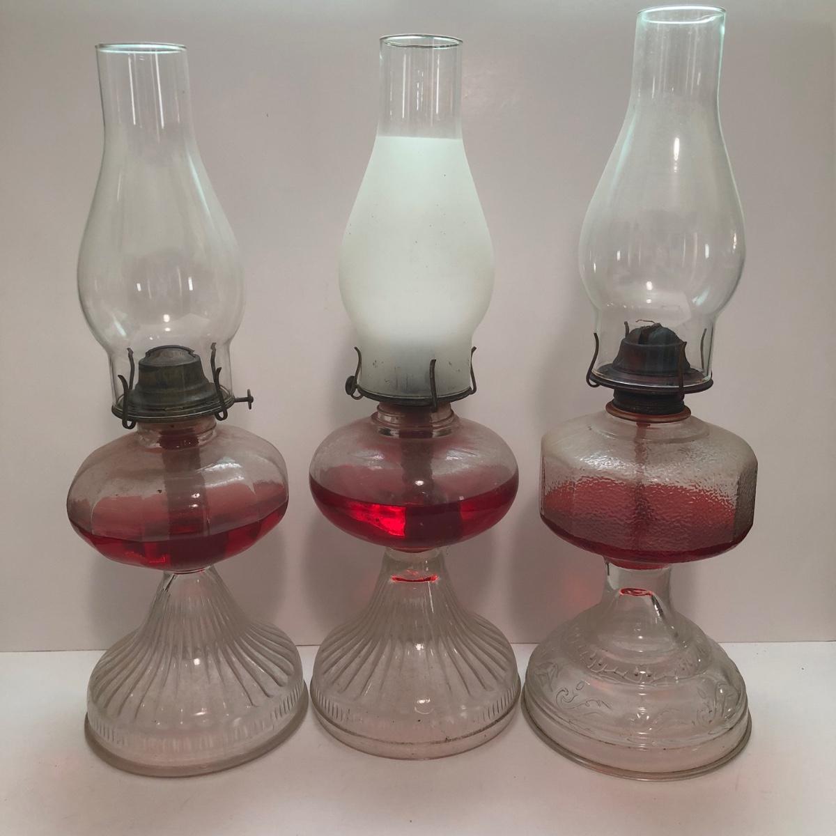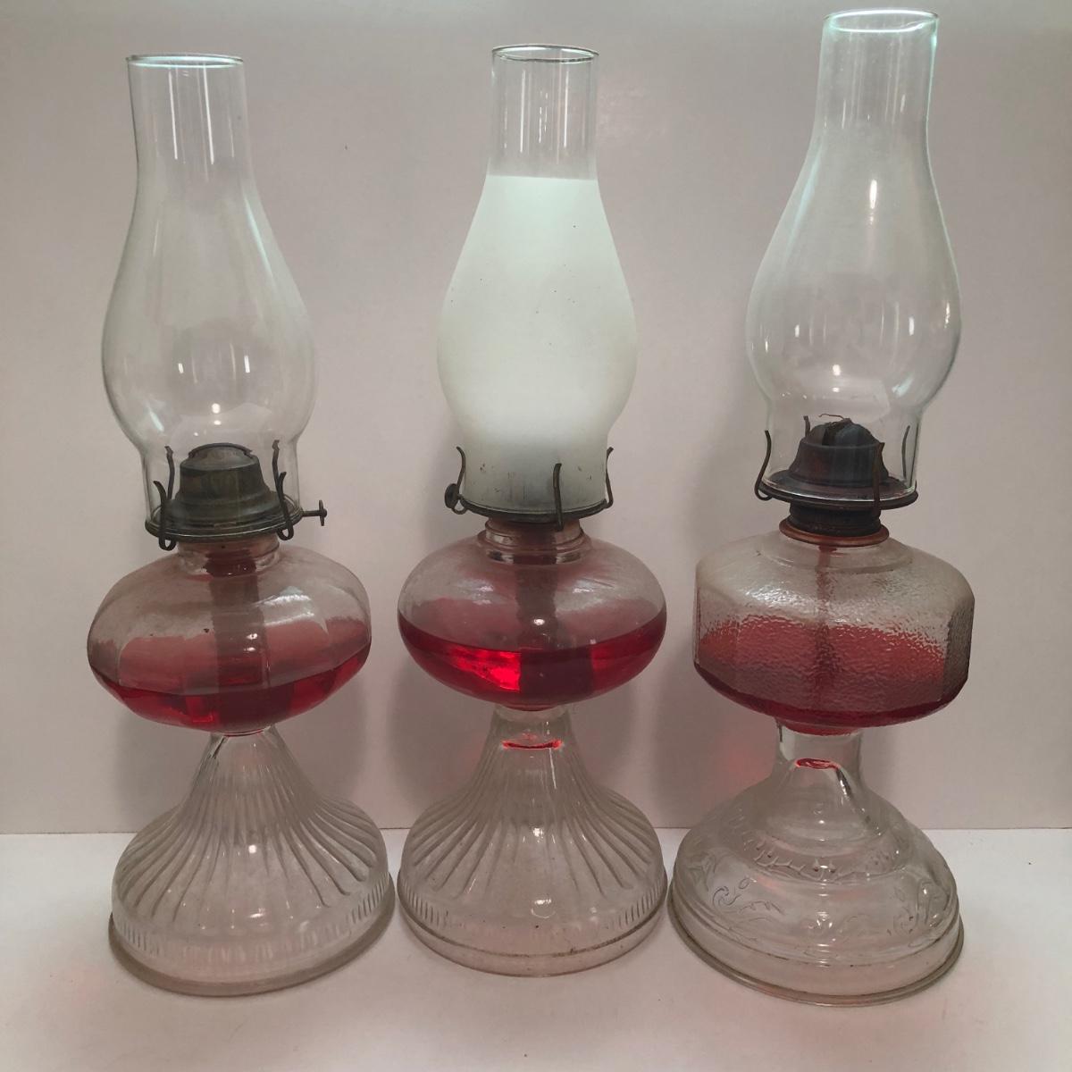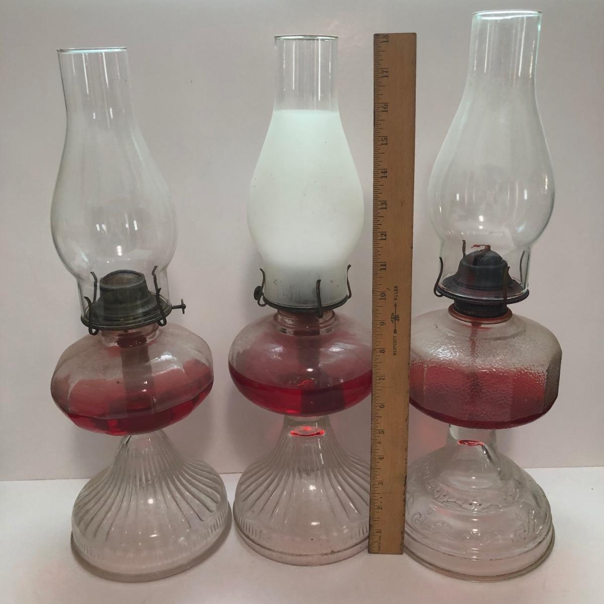 LOT 211U: Vintage Glass Hurricane Oil Lamps (3)