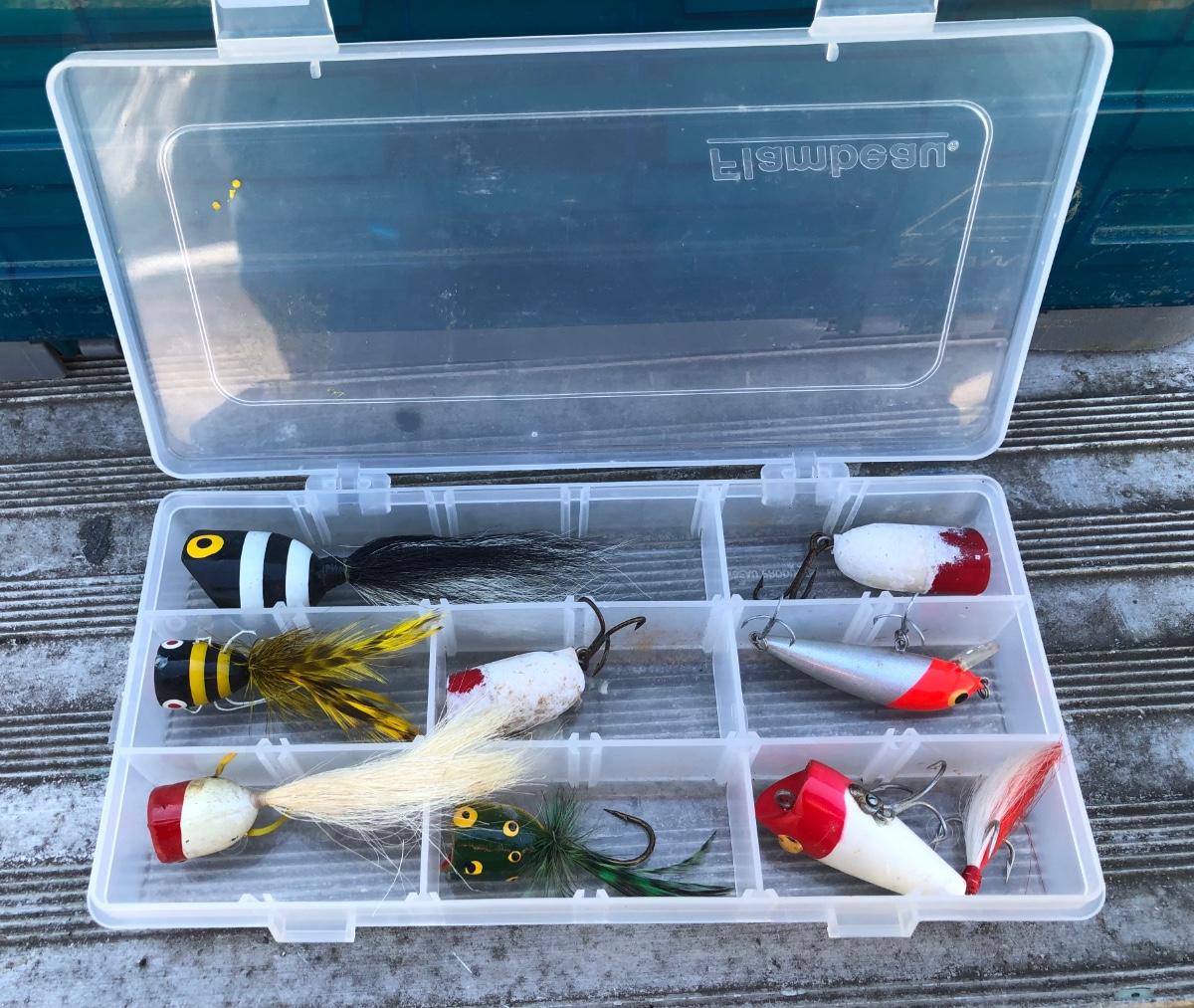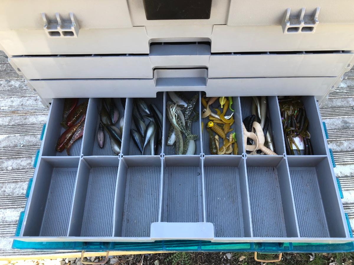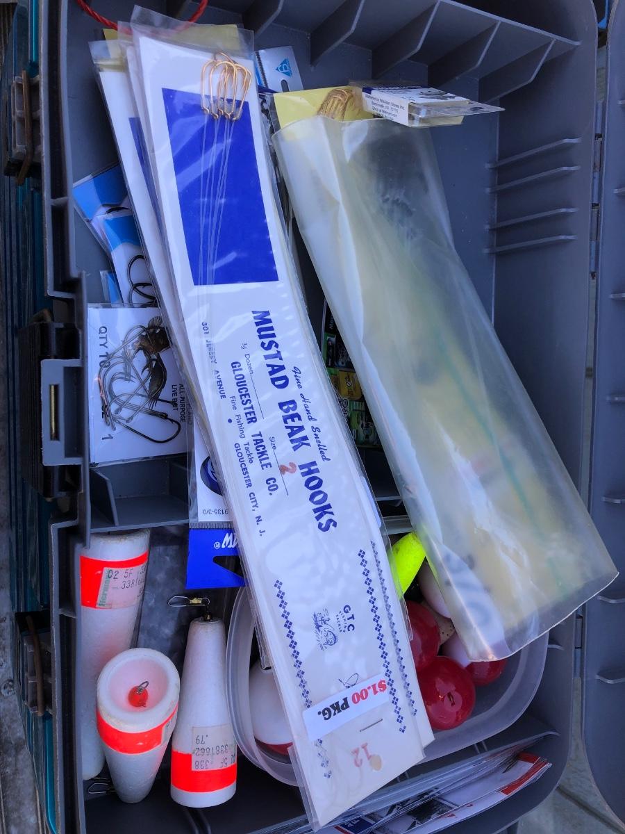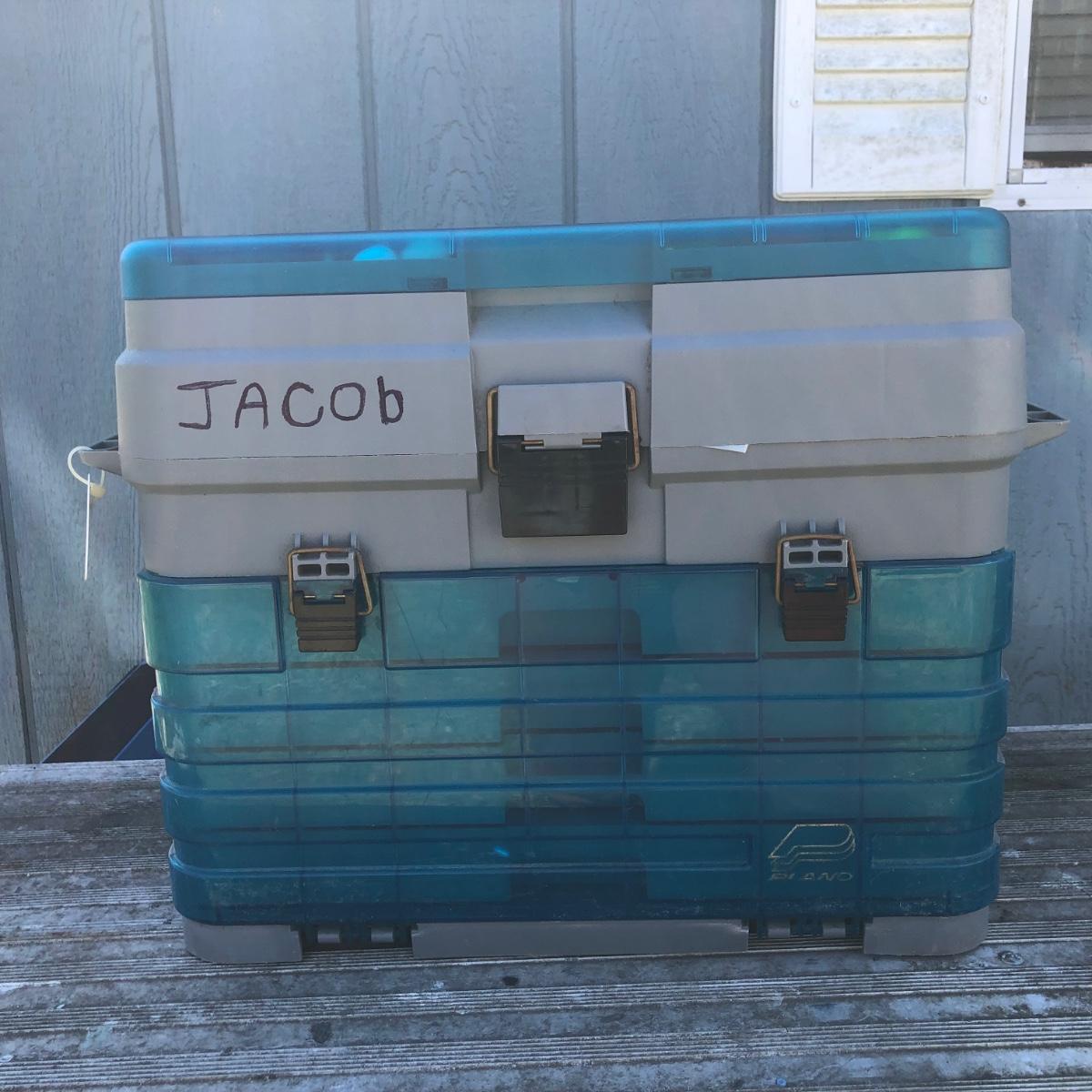 LOT 219S: Piano Guide Series Blue & Gray Tacklebox full of Freshwater Fishing Gear / Supplies