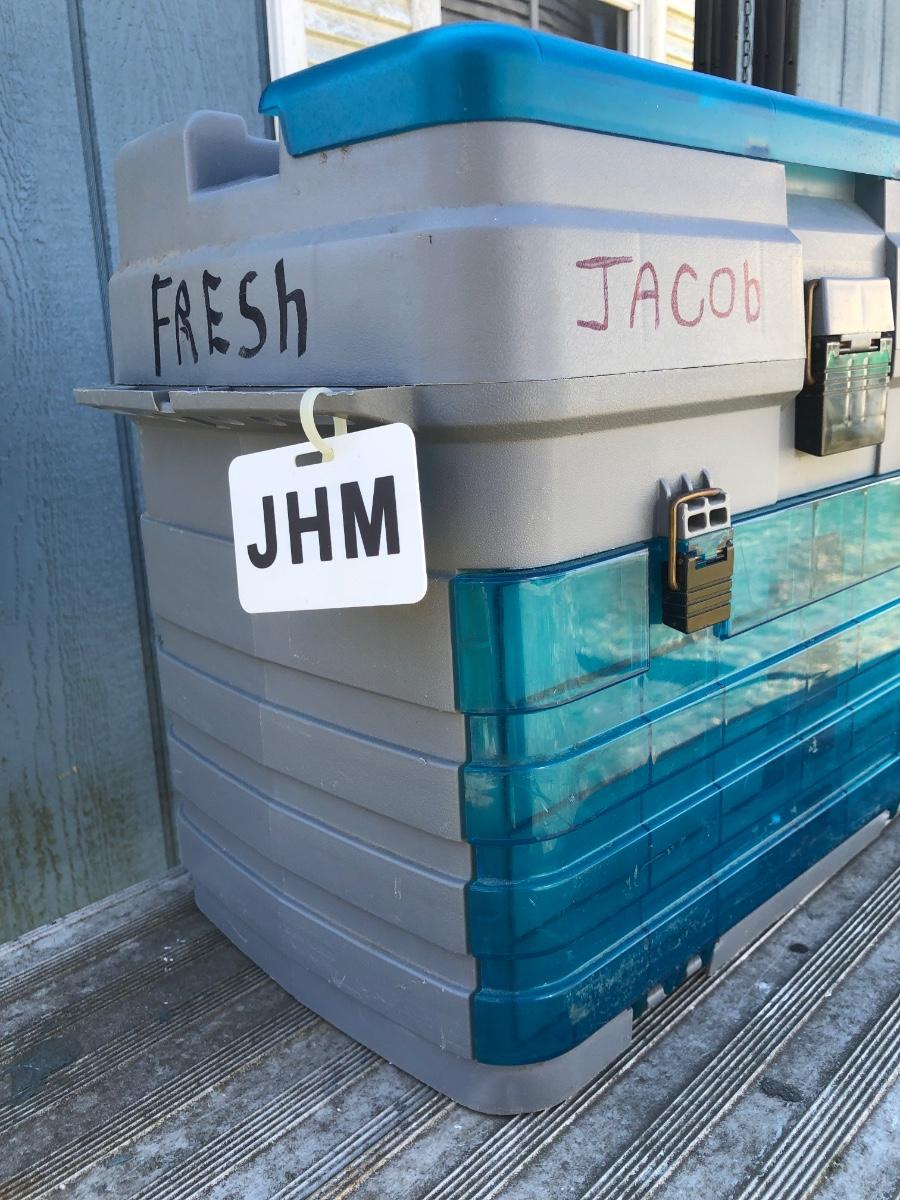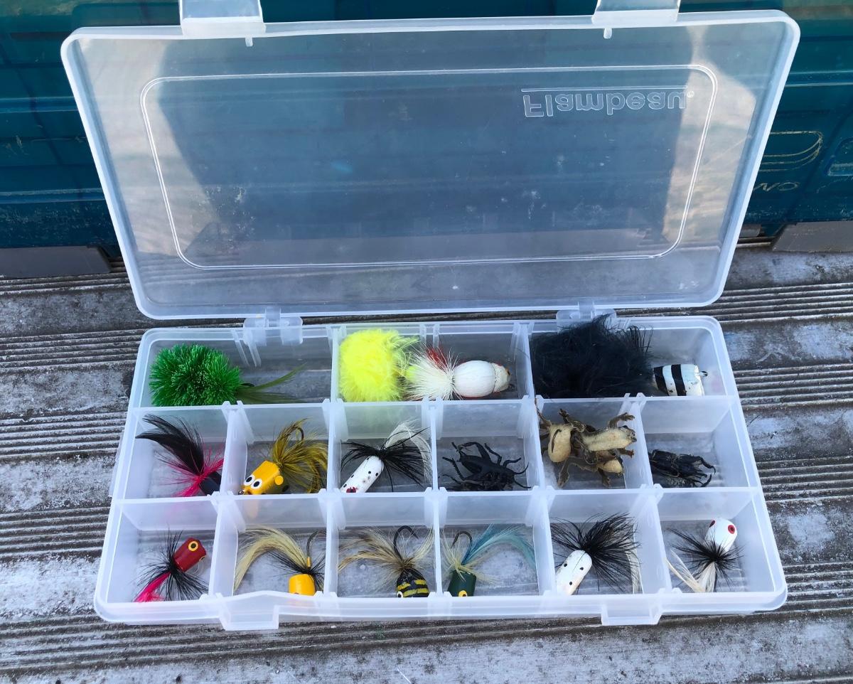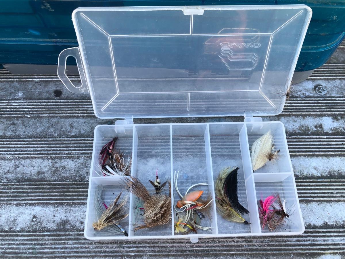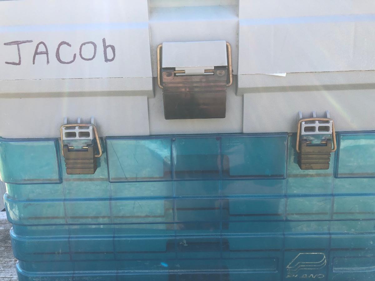 LOT 219S: Piano Guide Series Blue & Gray Tacklebox full of Freshwater Fishing Gear / Supplies
