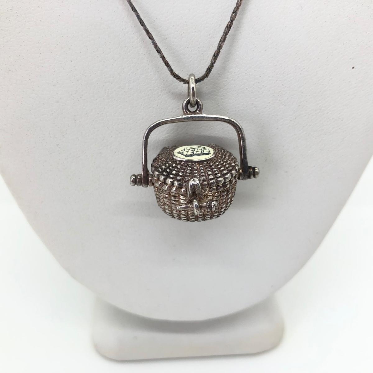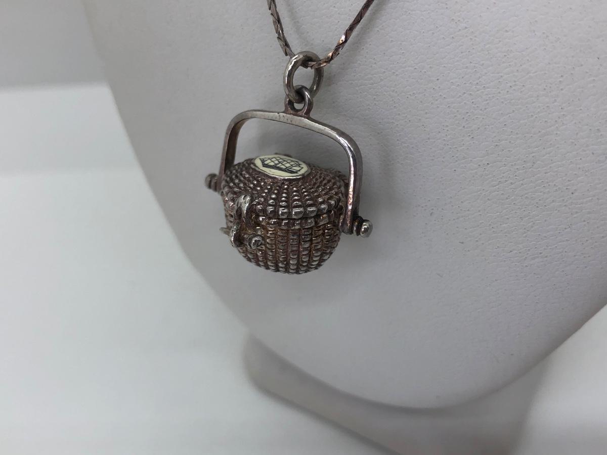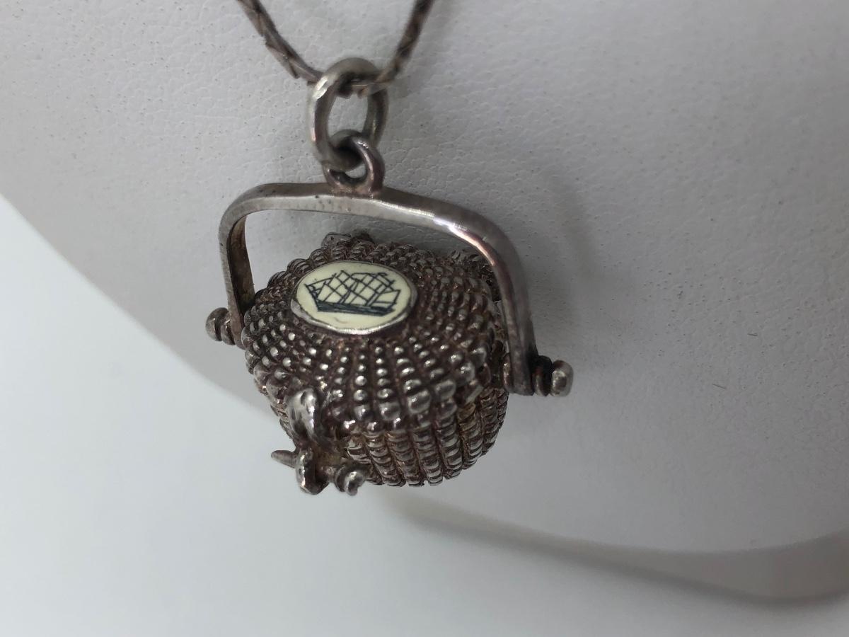 LOT 1J: Vintage 1977 Sterling Silver Nantucket Lighthouse Basket Pendant Signed Glennann w/ 16.25" Italian Sterling Silver Chain