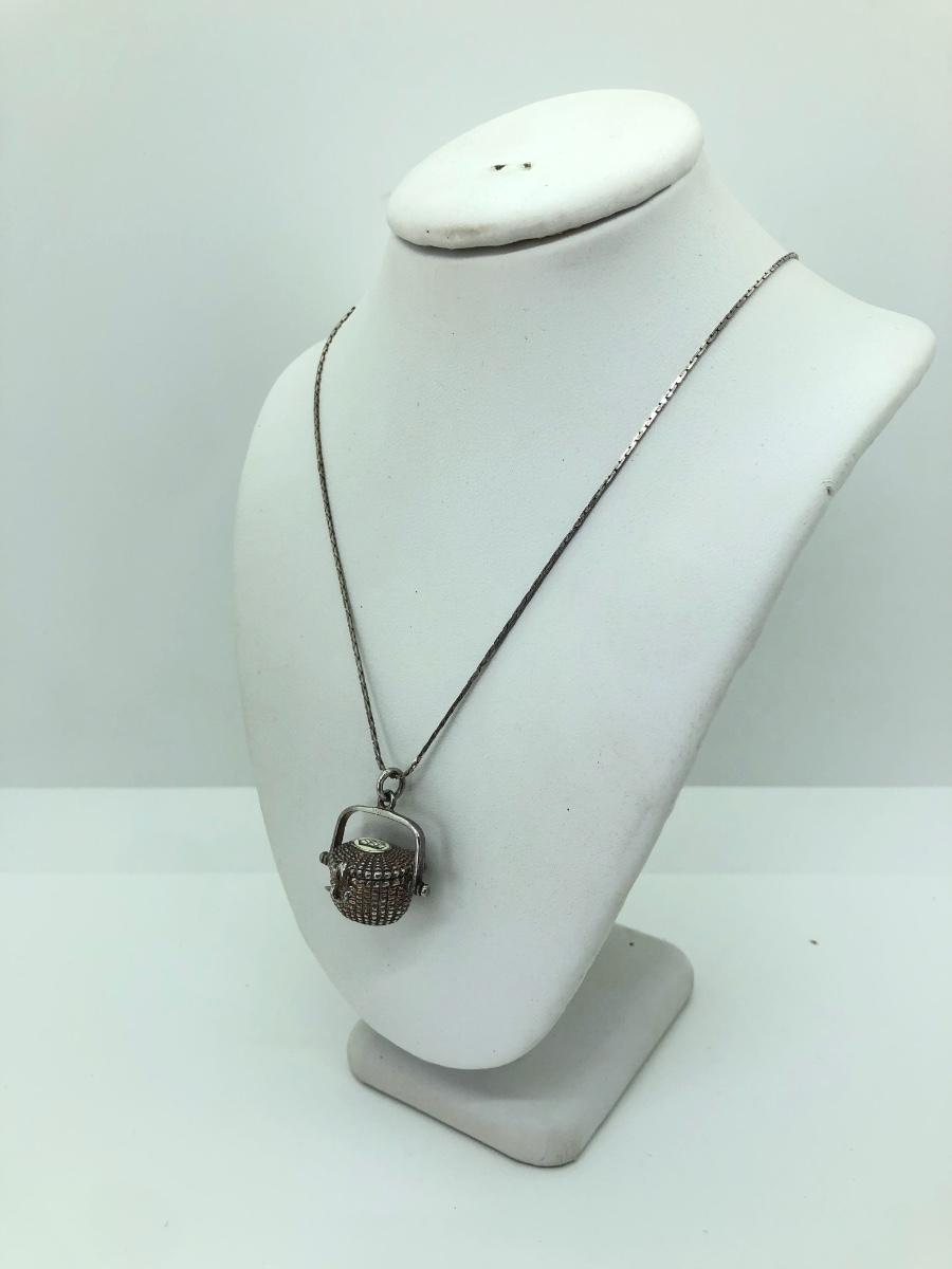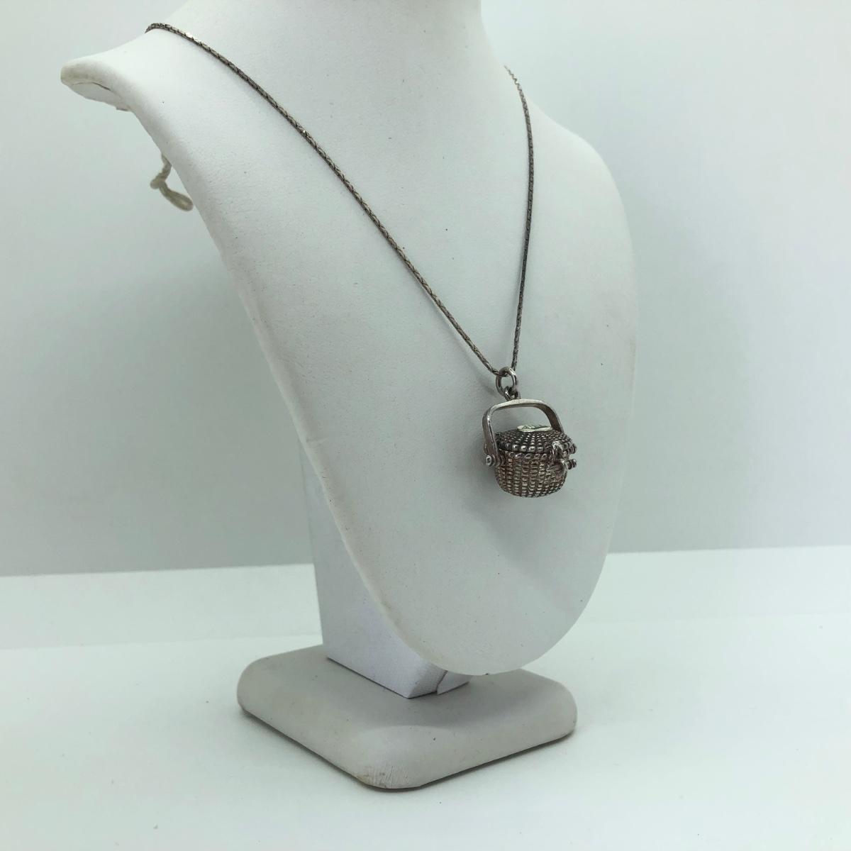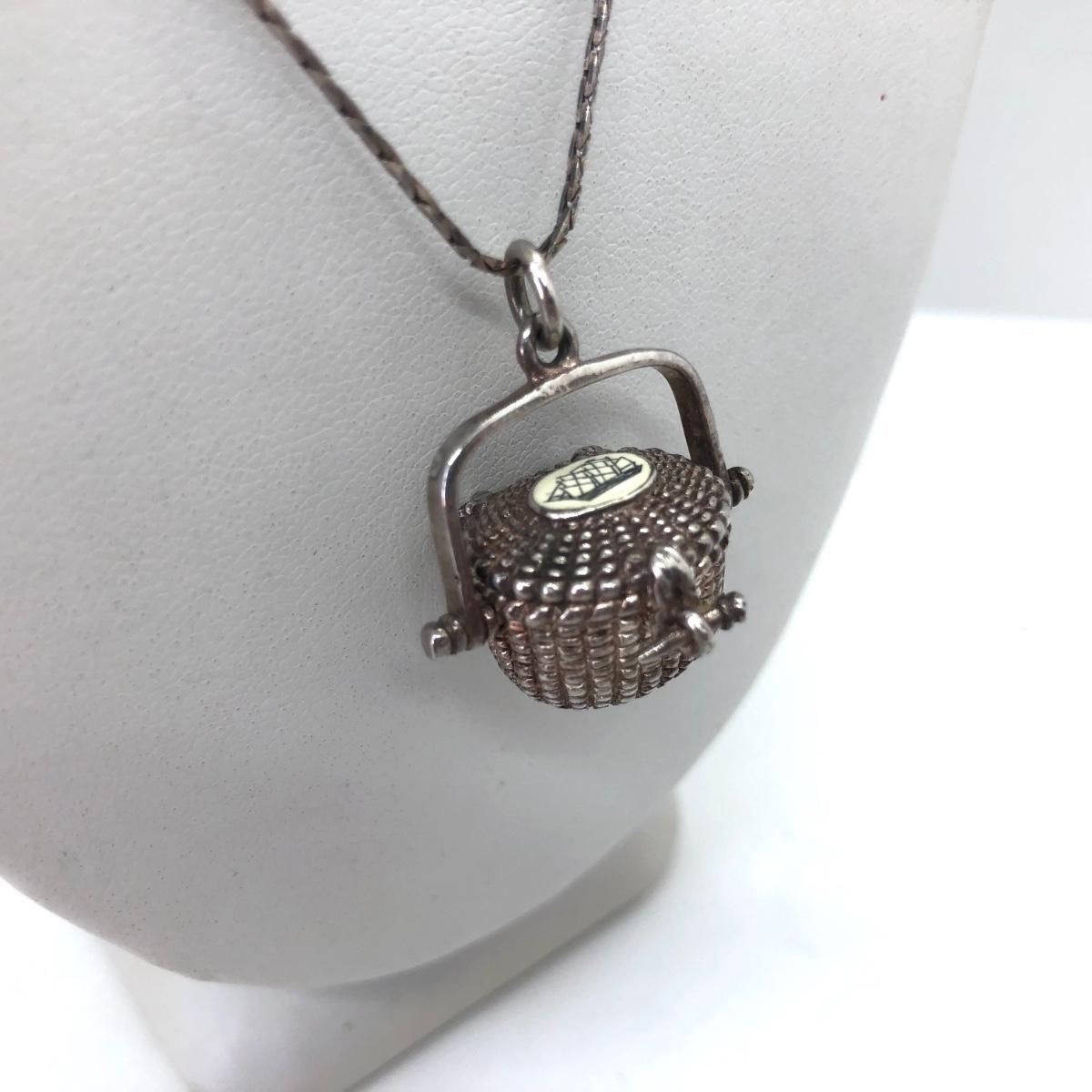 LOT 1J: Vintage 1977 Sterling Silver Nantucket Lighthouse Basket Pendant Signed Glennann w/ 16.25" Italian Sterling Silver Chain