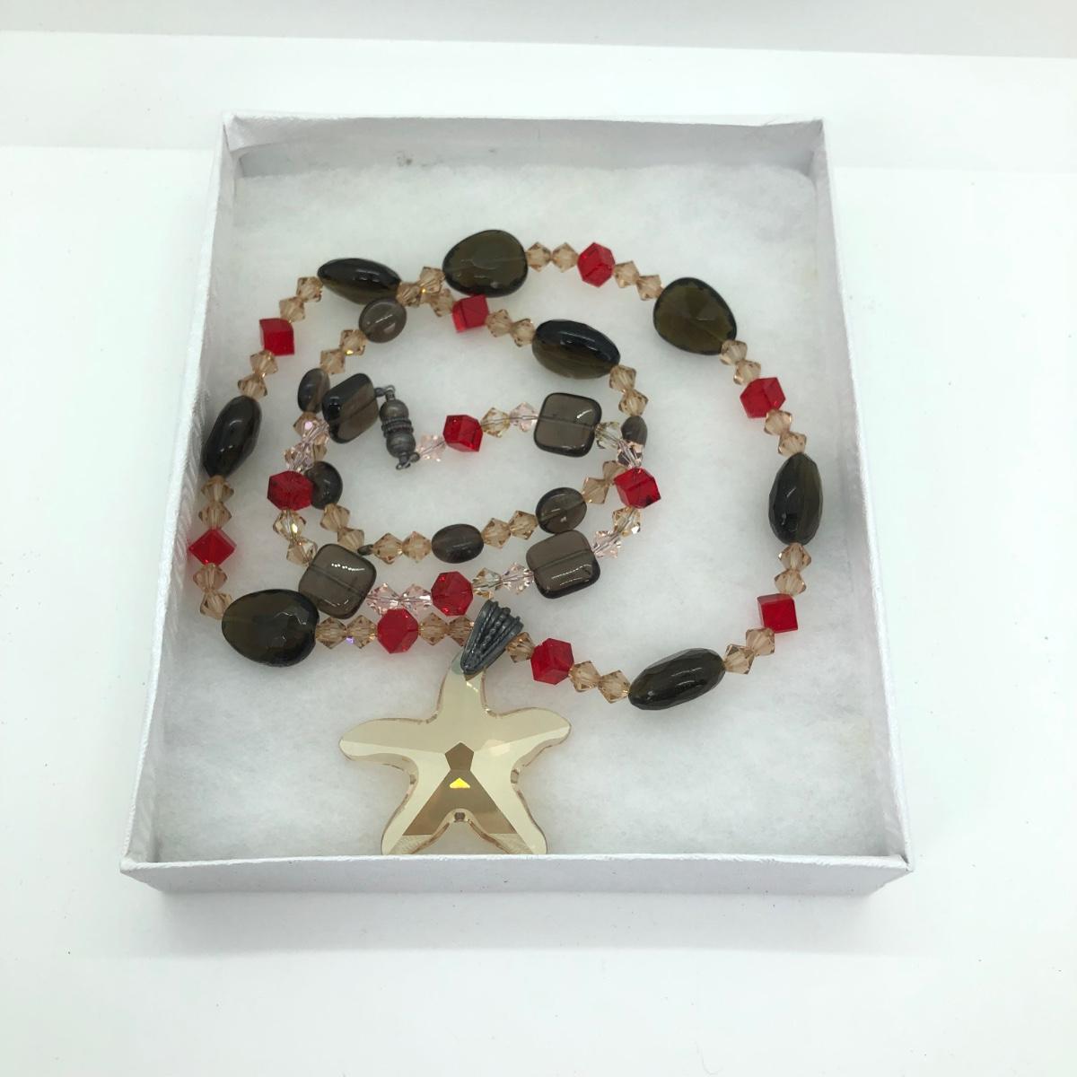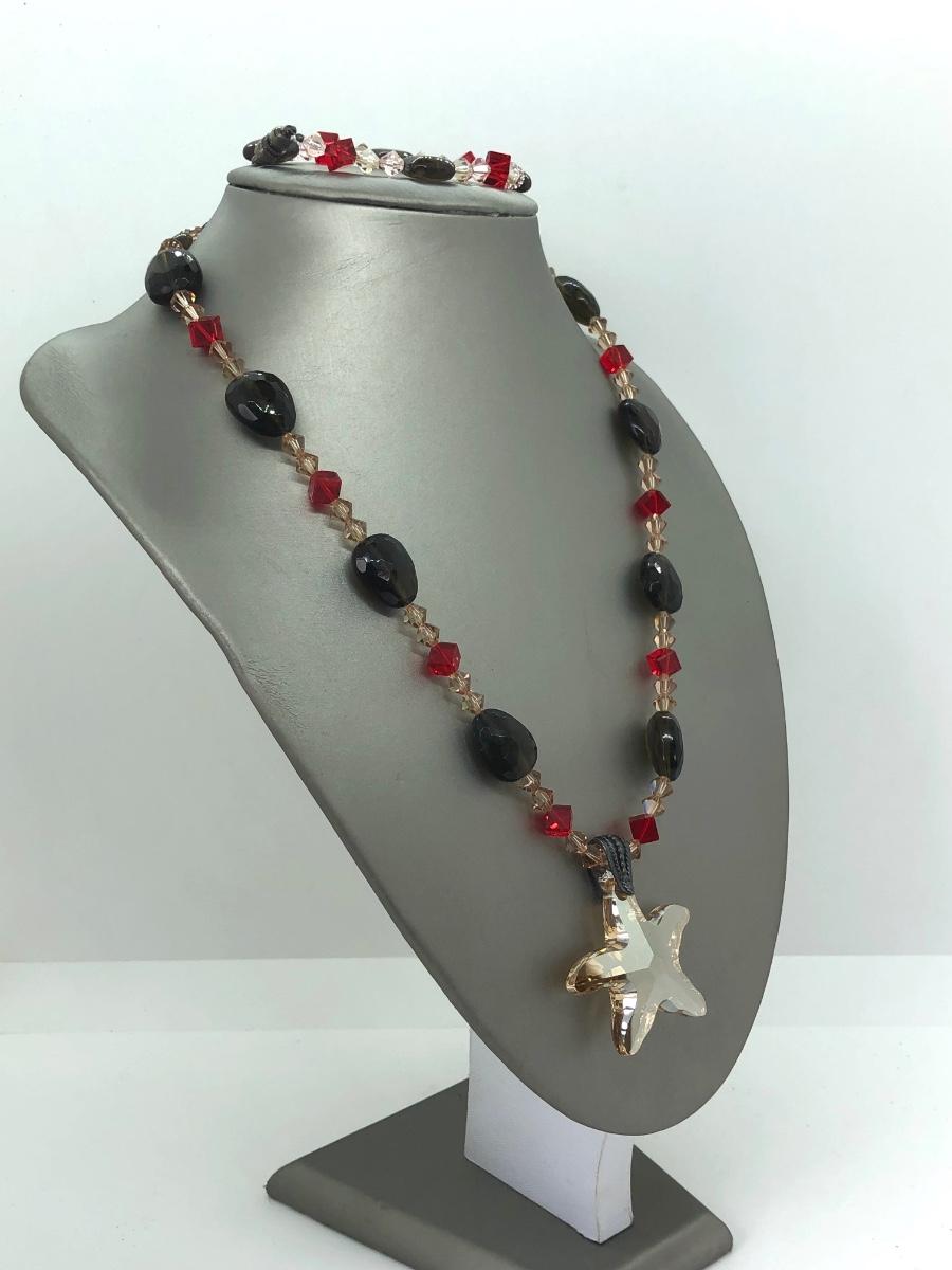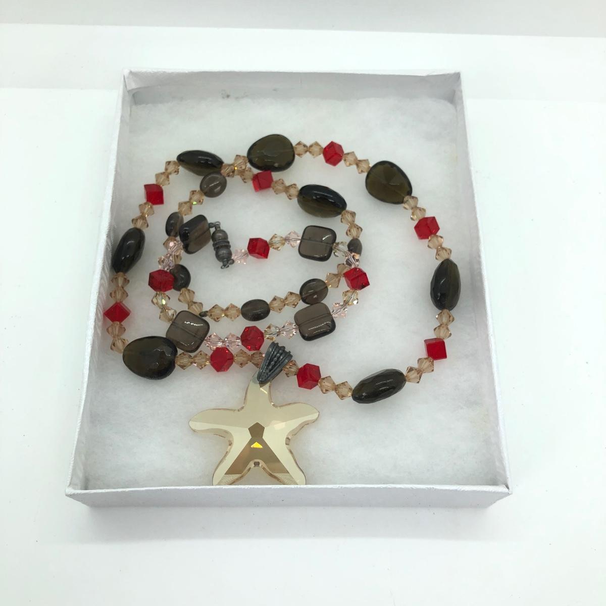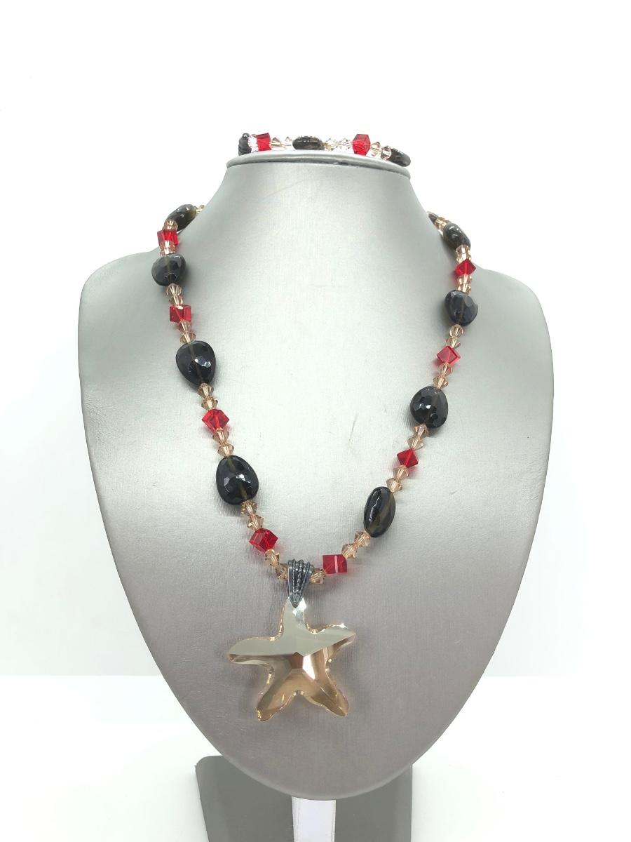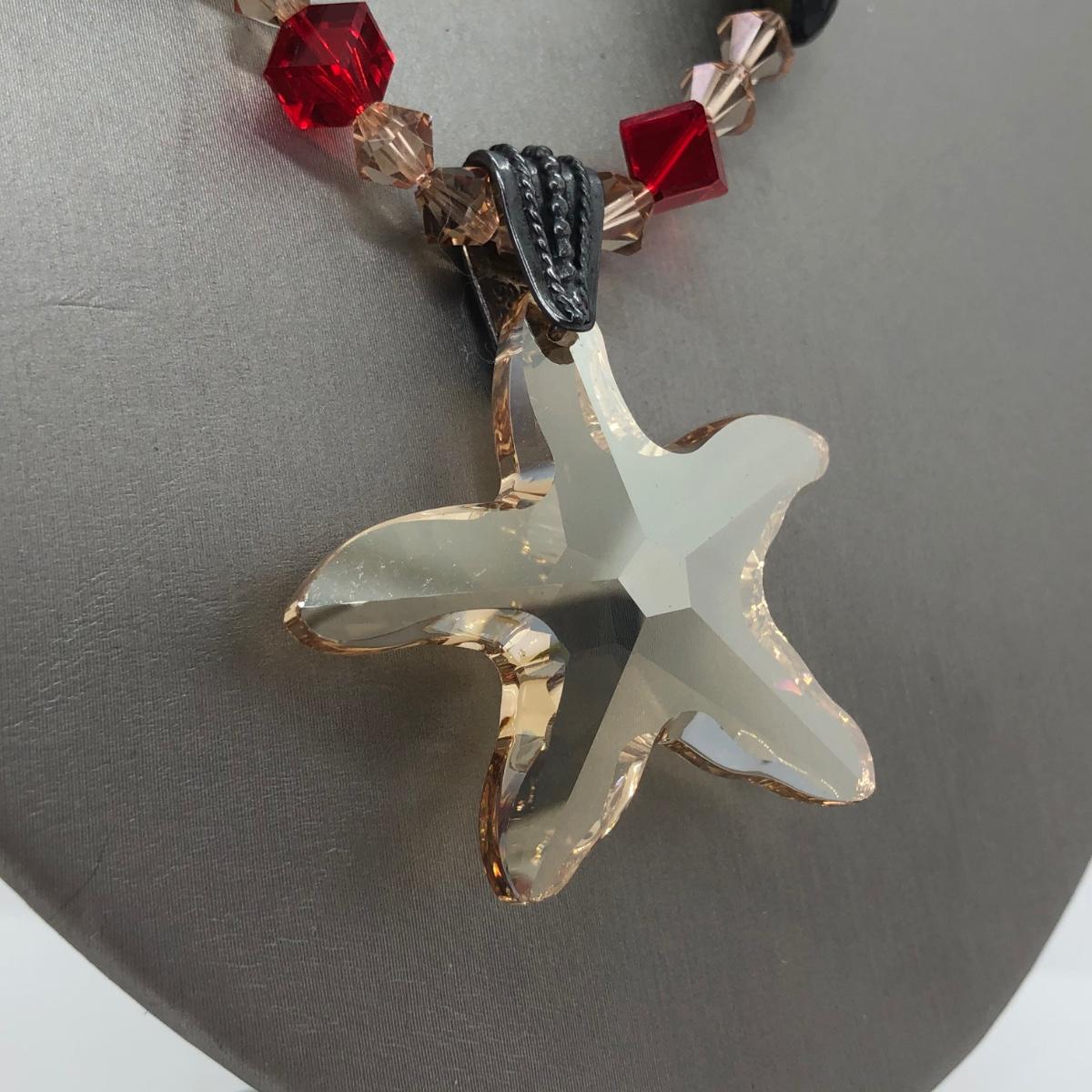 LOT 10J: Artisan Swarovski Crystal Starfish Pendant Necklace (21") & Bracelet (7.25") Set