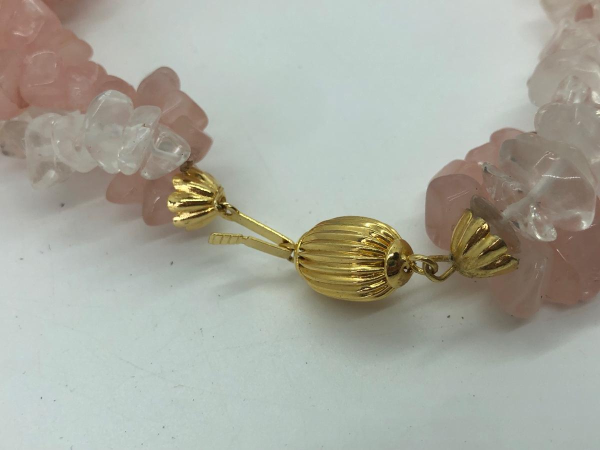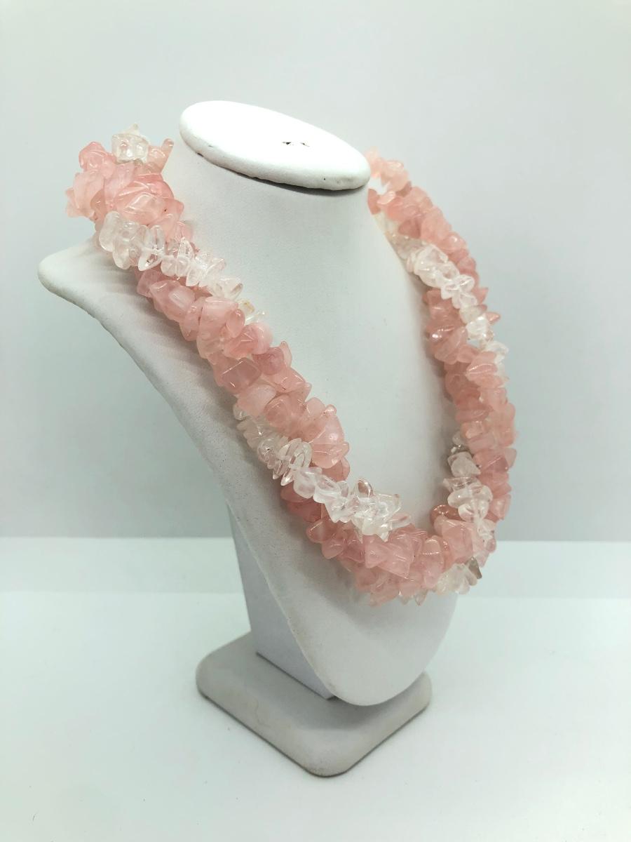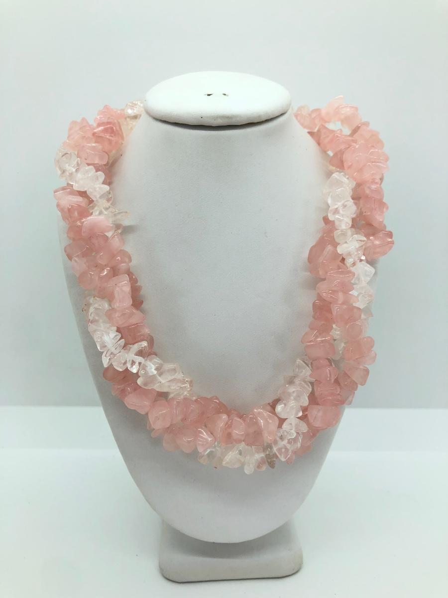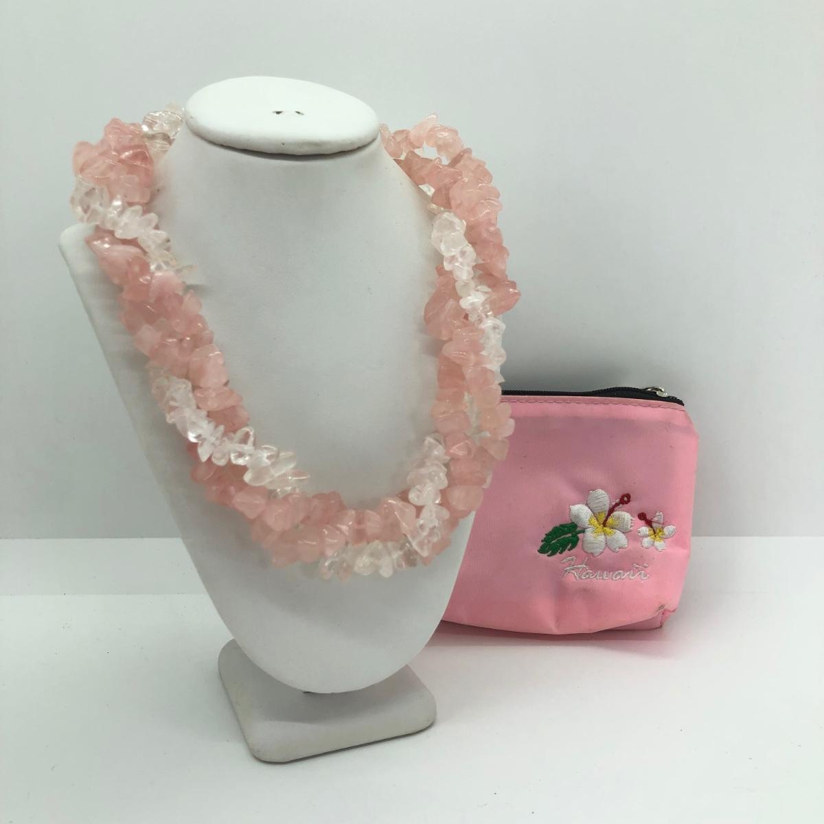 LOT 12J: Rose and Clear Quartz Twisted Gemstone Choker Necklace (16") in Pink Hawaii Keychain Purse