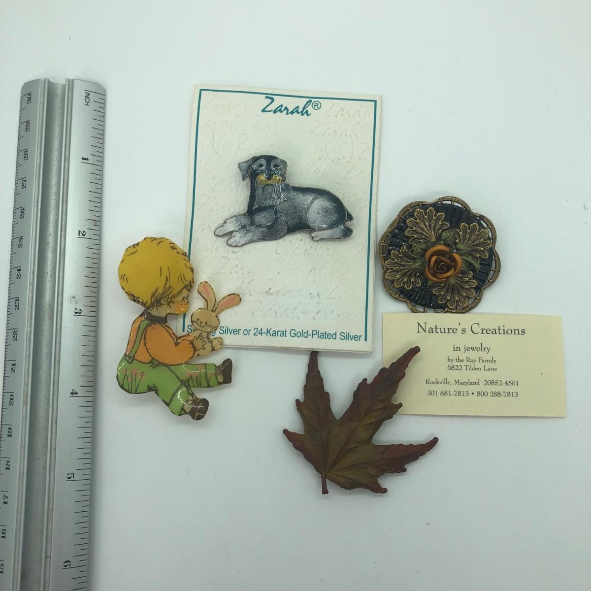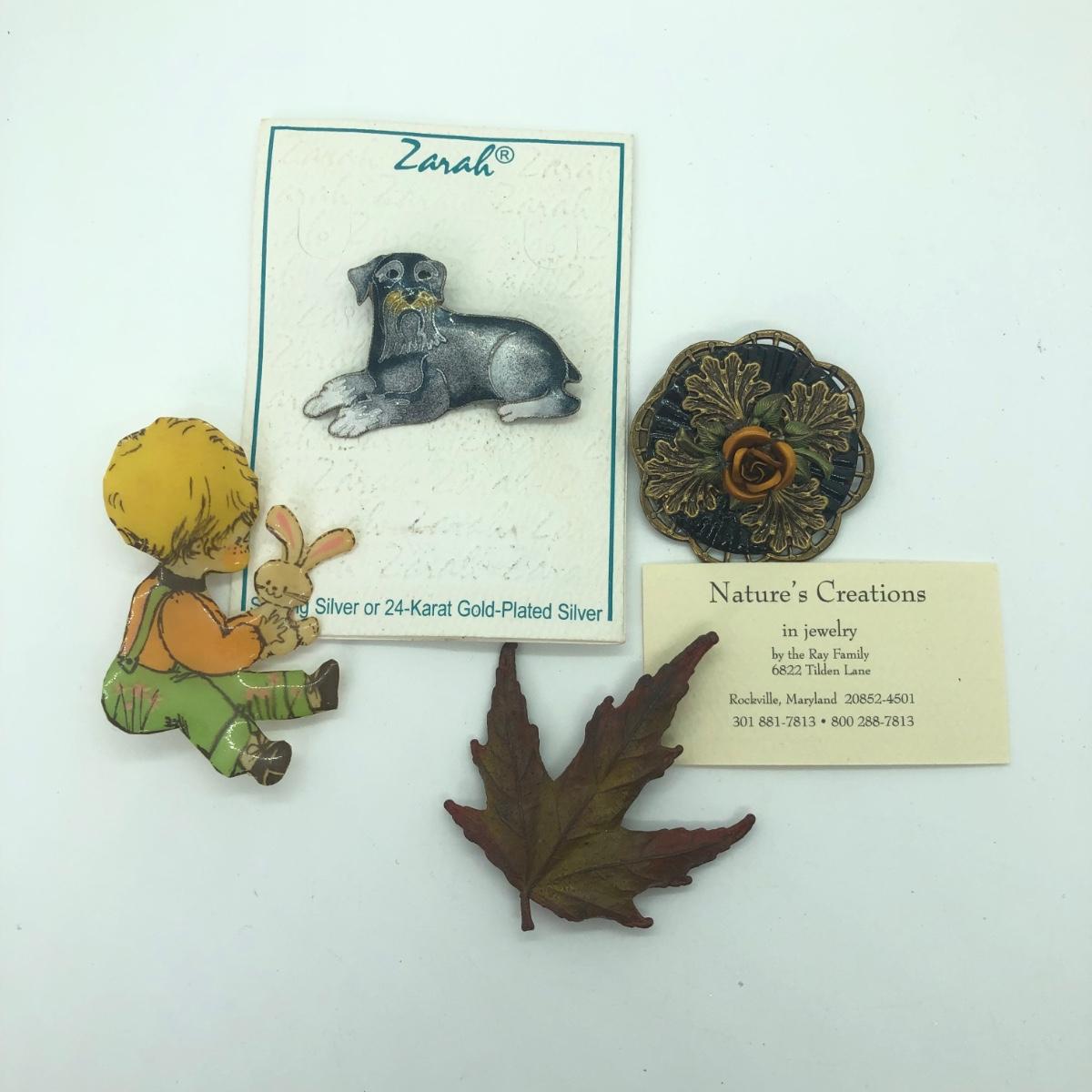 LOT 23J: Artisan Brooches / Pins - Zarah 925 Enameled Dog, Nature's Creations & More