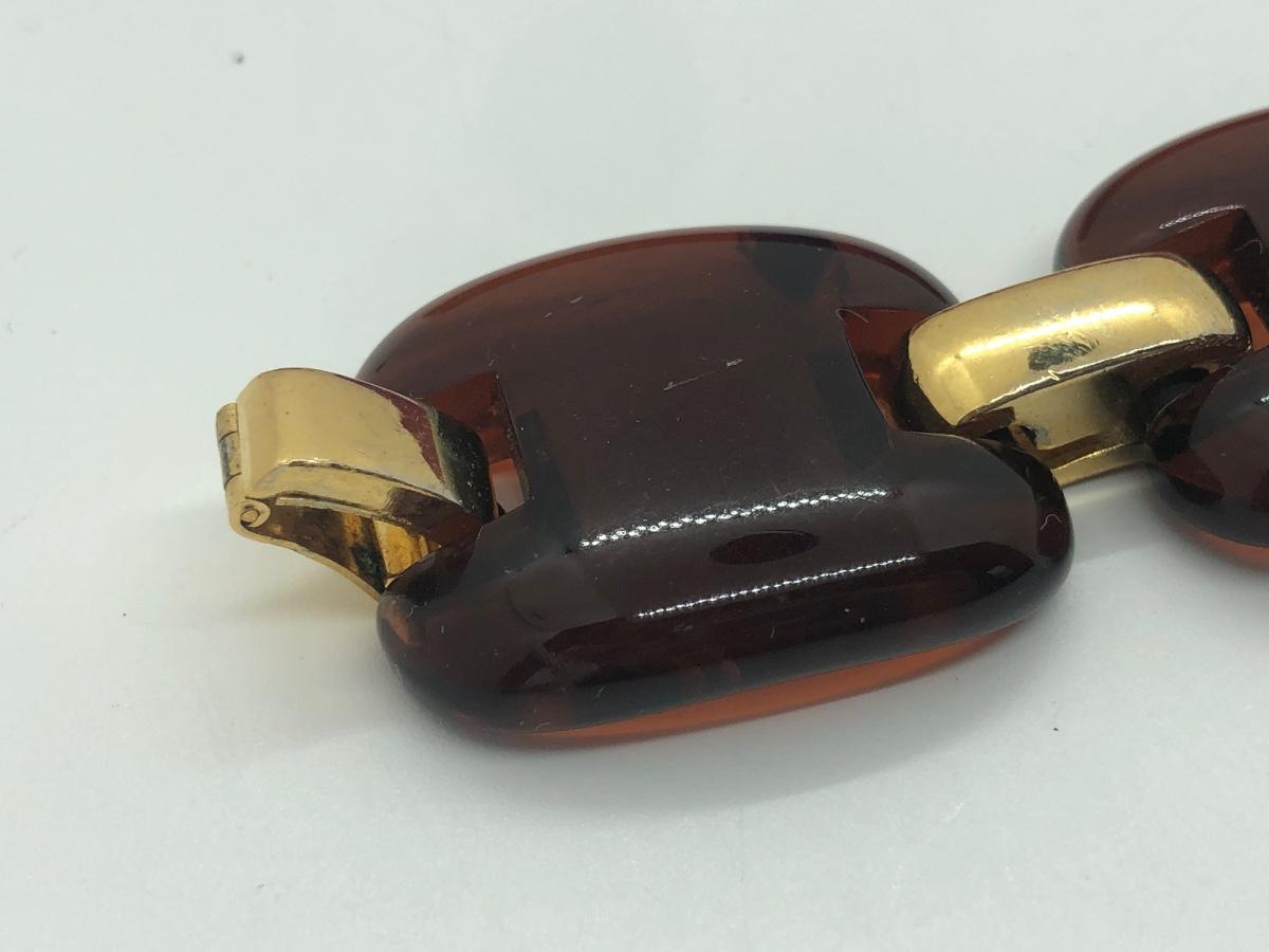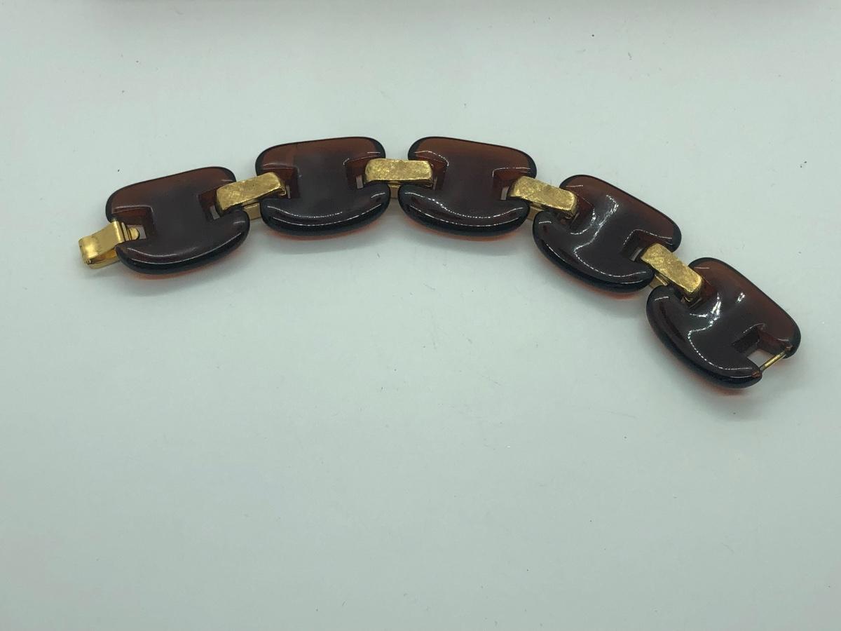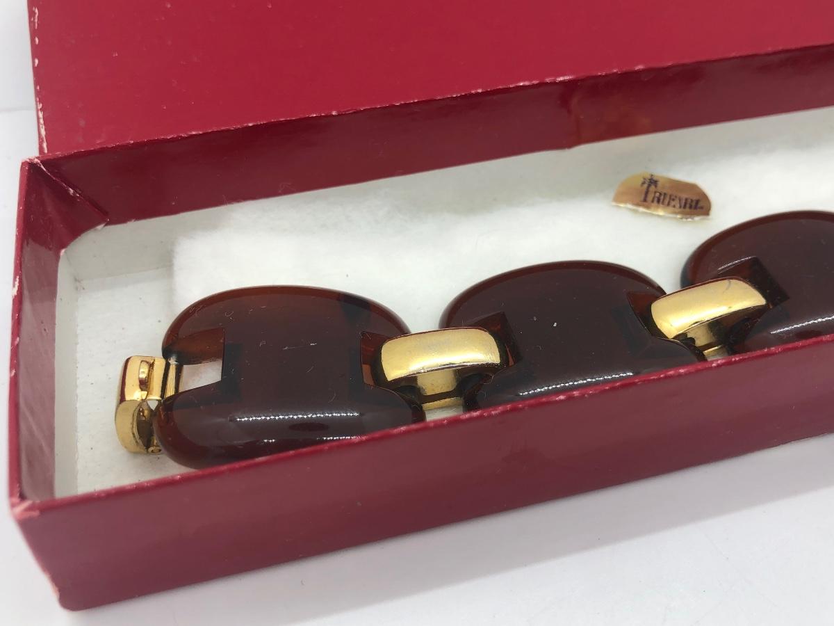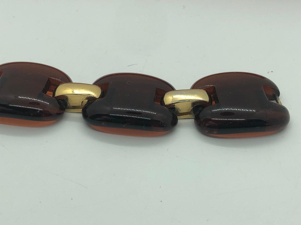 LOT 24J: Vintage Crown Trifari Brown Lucite Panel Bracelet (7")