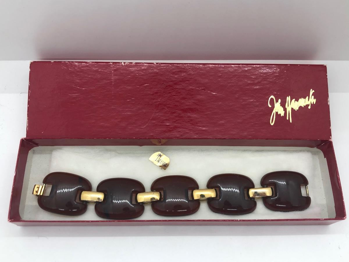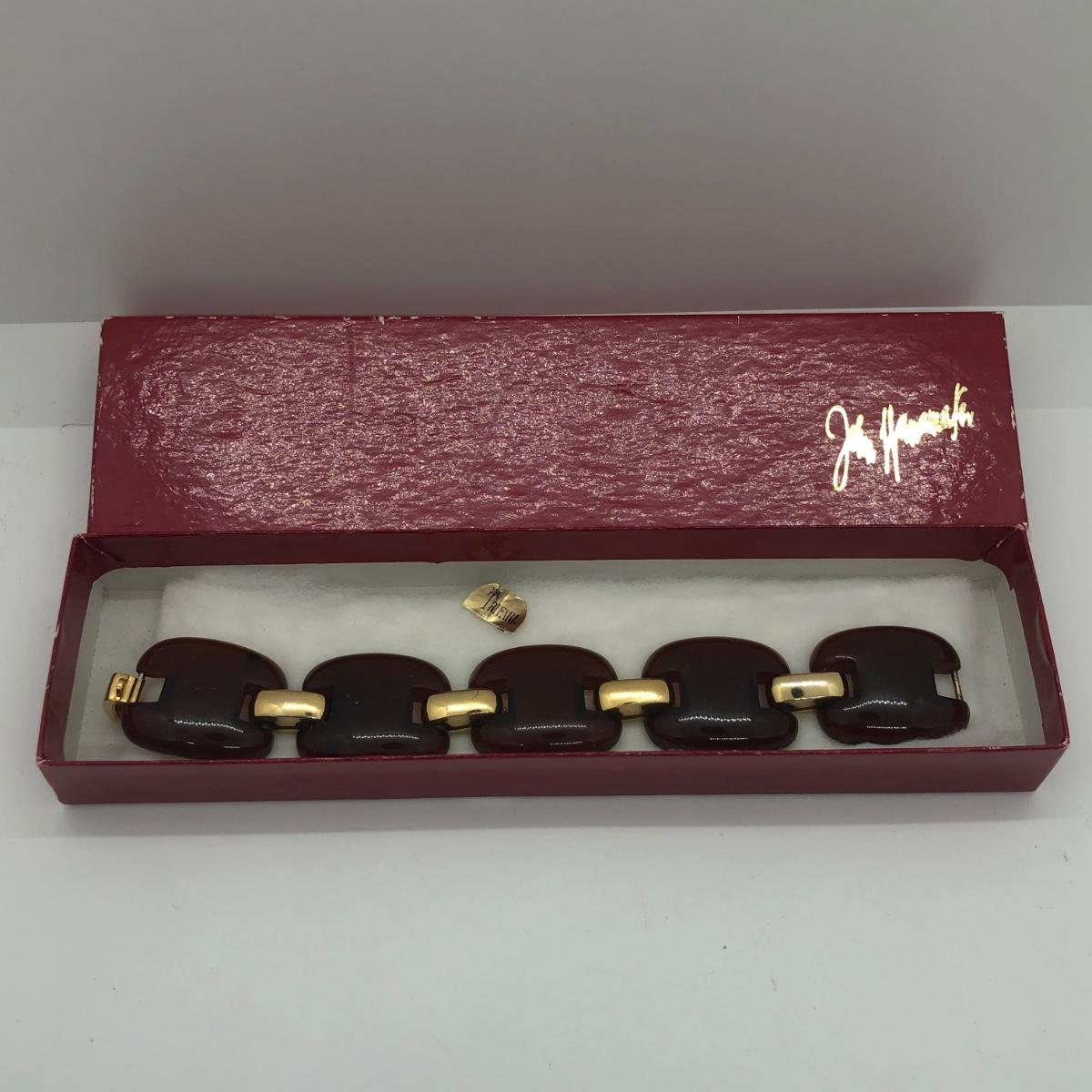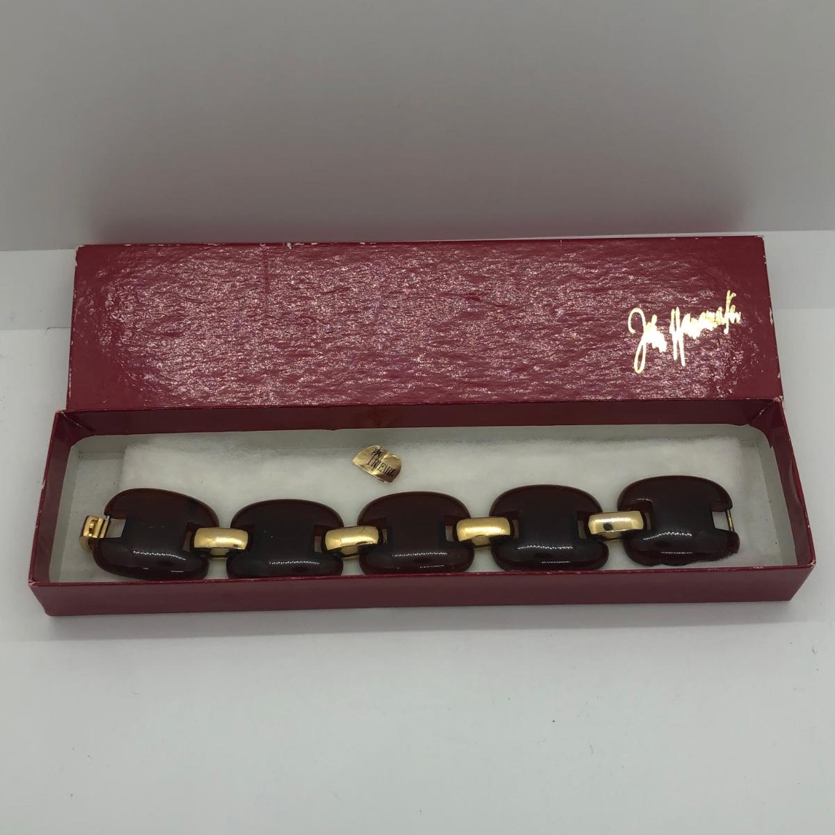 LOT 24J: Vintage Crown Trifari Brown Lucite Panel Bracelet (7")