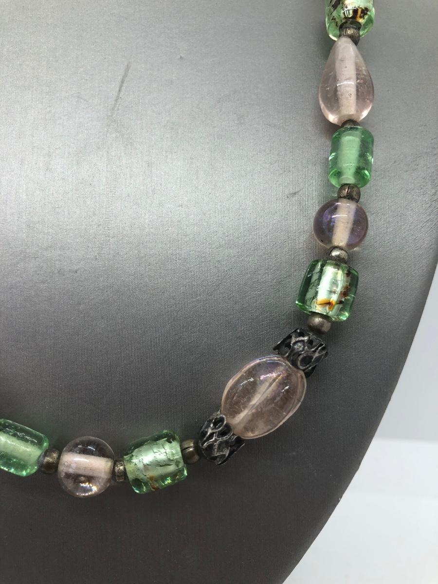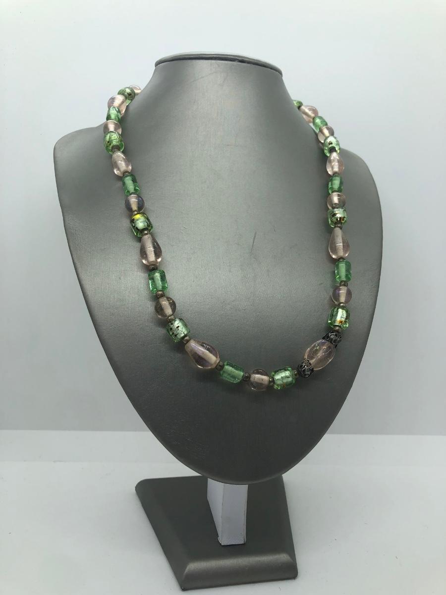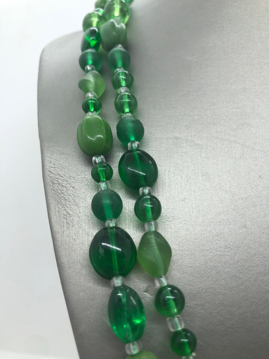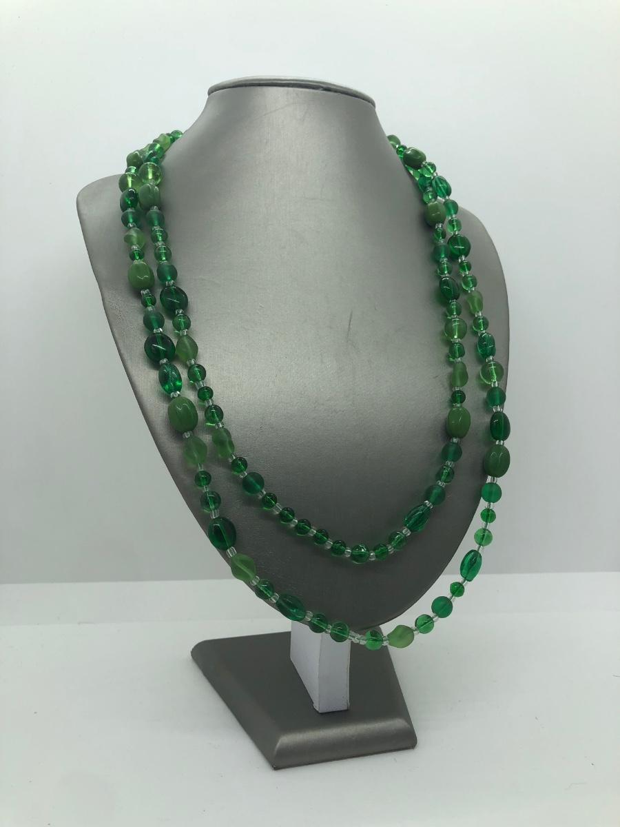 LOT 27J: Green Collection - Beaded Necklaces w/ Vintage Hawaii & Velvet Jewelry Pouches