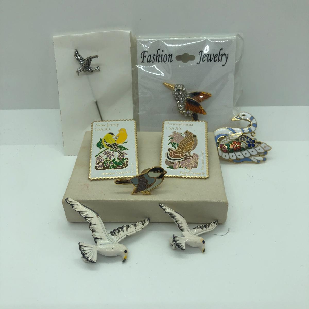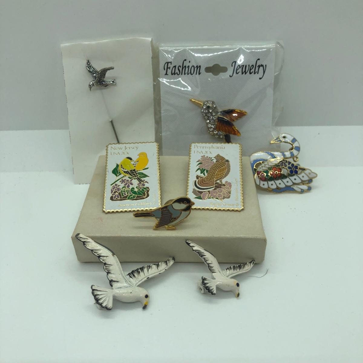LOT 35J: Vintage Bird Brooches & Pins - USPS Stamps for NJ & PA, Gerry's & More